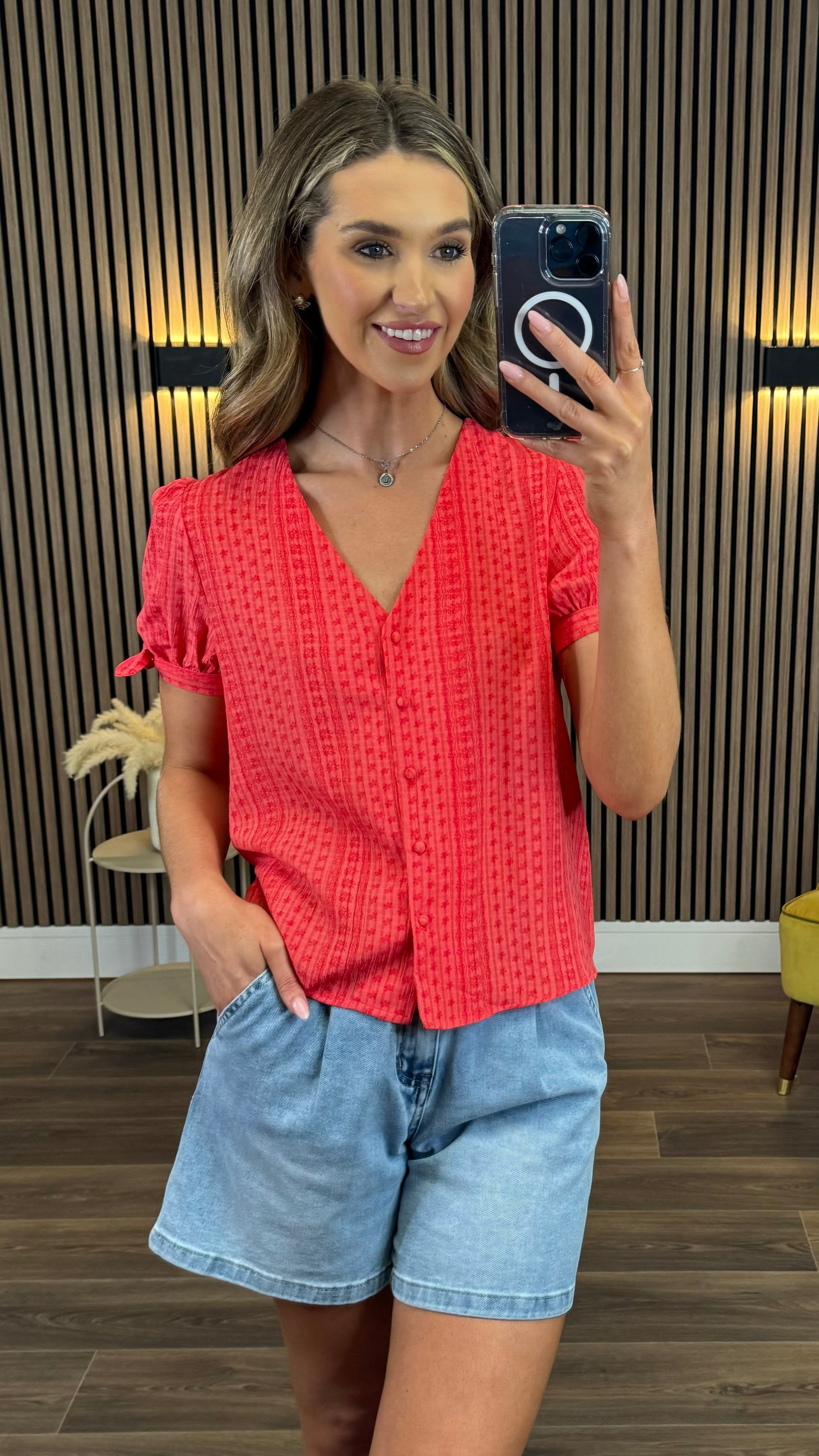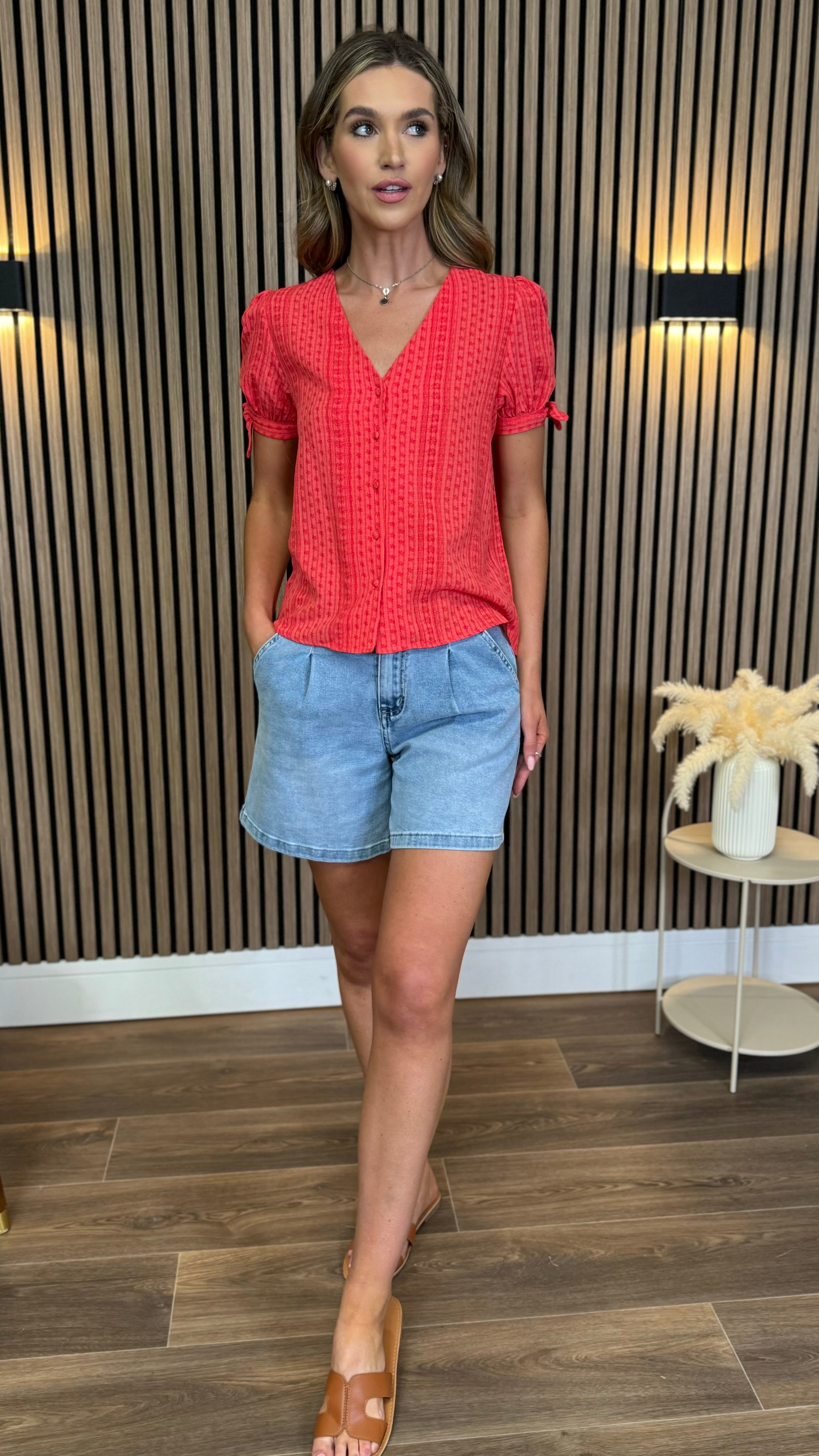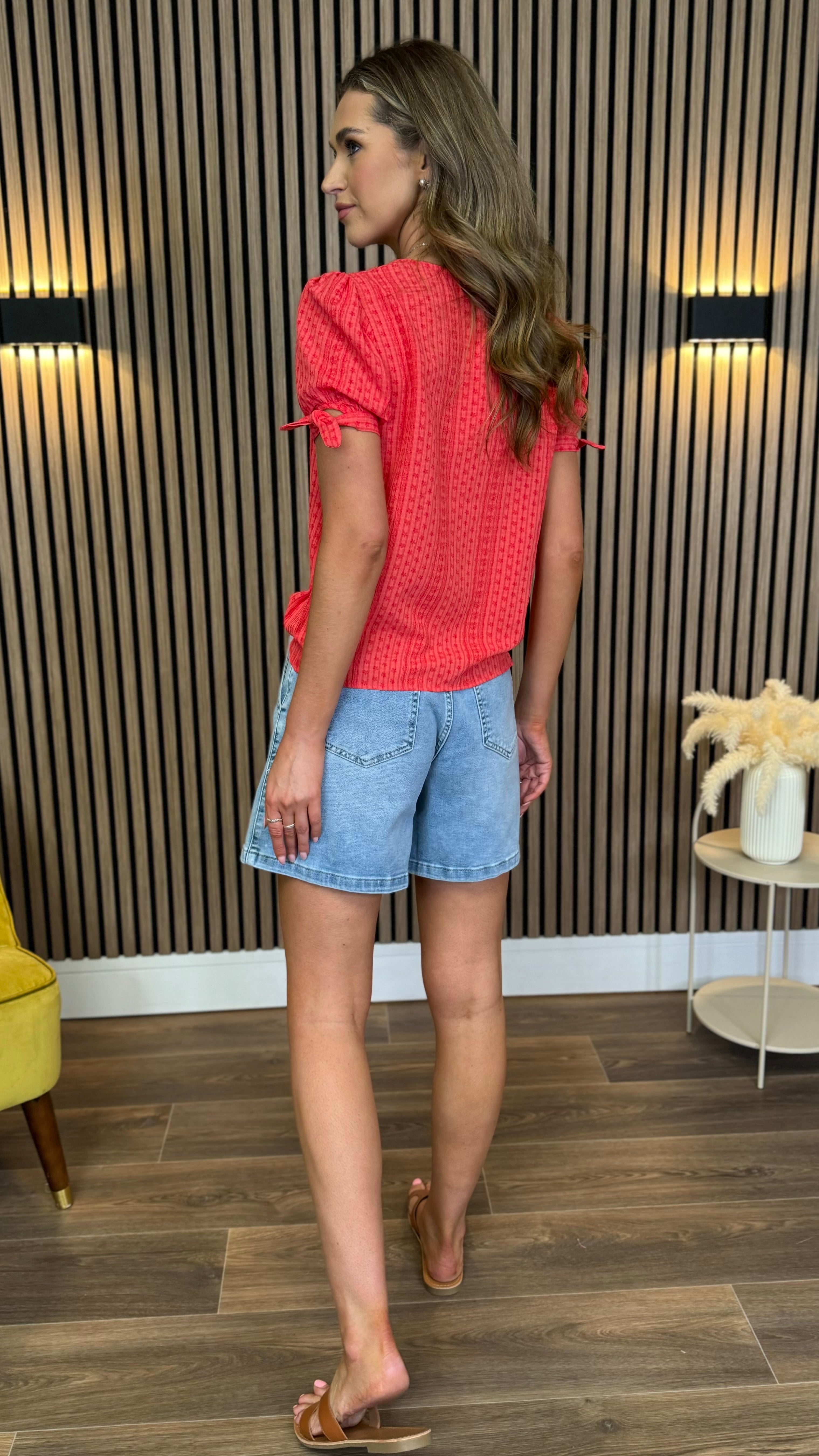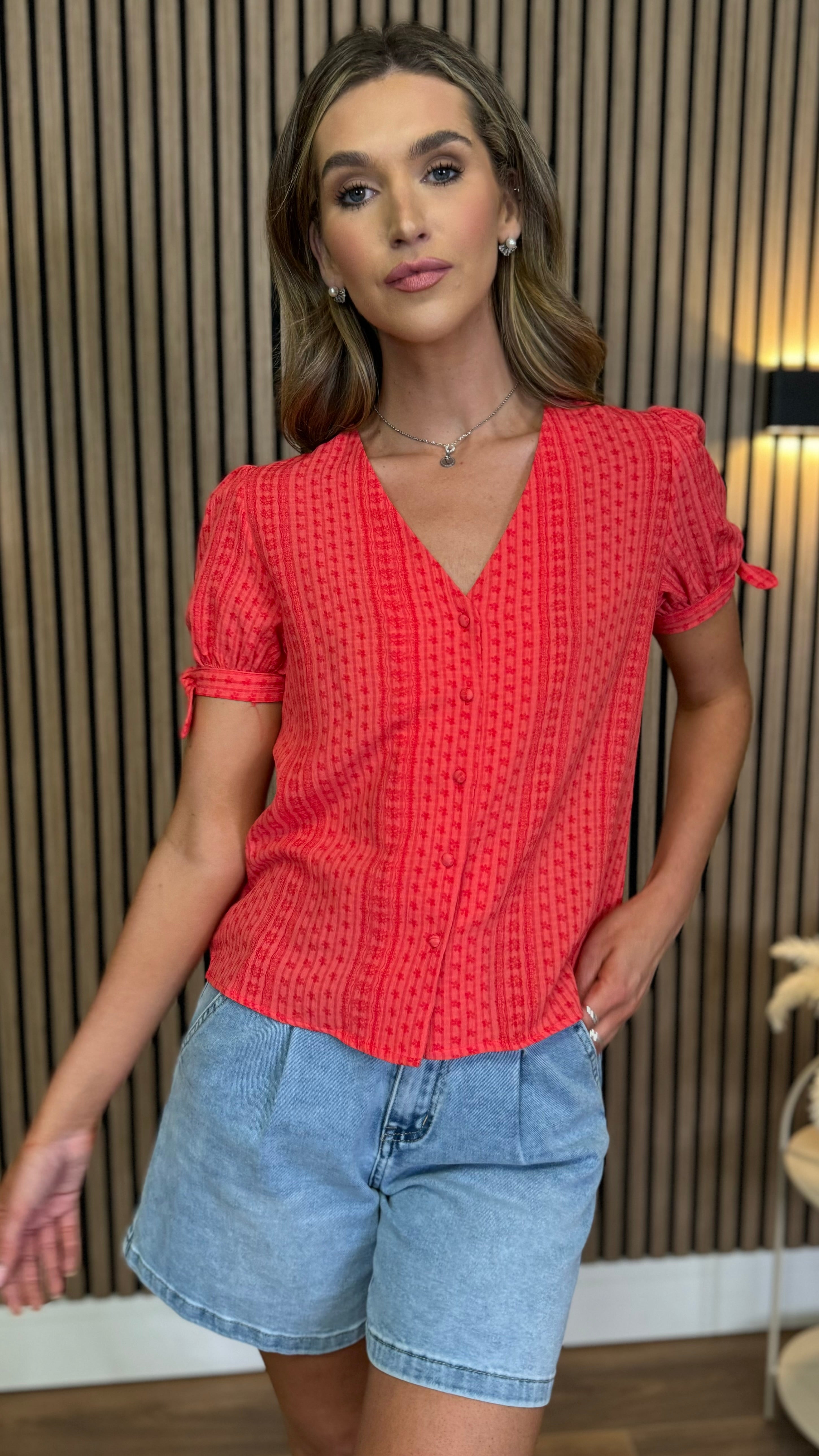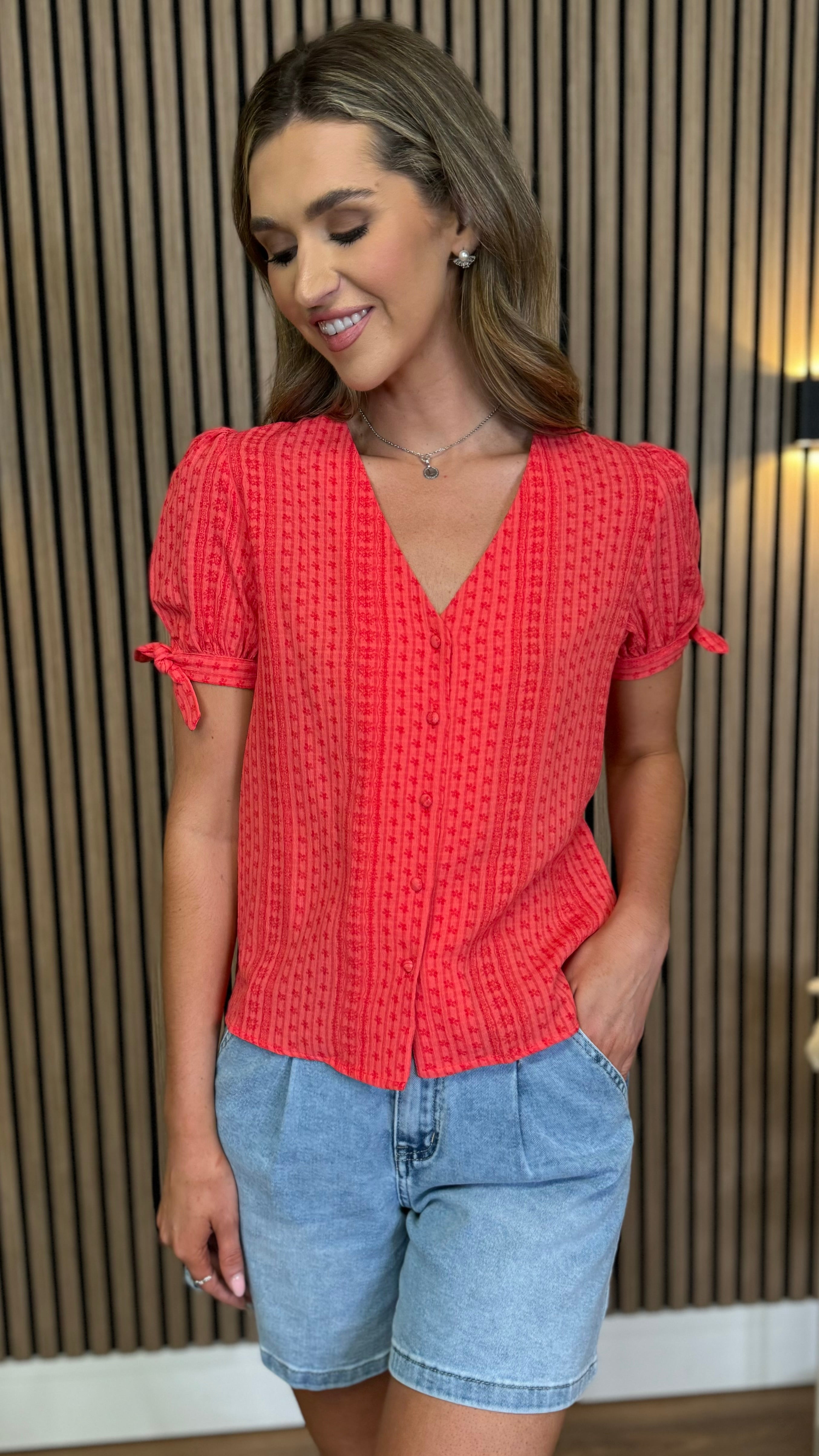 Brighten your wardrobe with the Meadow Coral Floral Printed Knot Sleeve Detail Top. Featuring a lively coral floral print and charming knotted sleeves, this top adds a fun, flirty touch to any outfit. Perfect for sunny days or casual outings, it brings a playful vibe while keeping you comfortable and stylish.