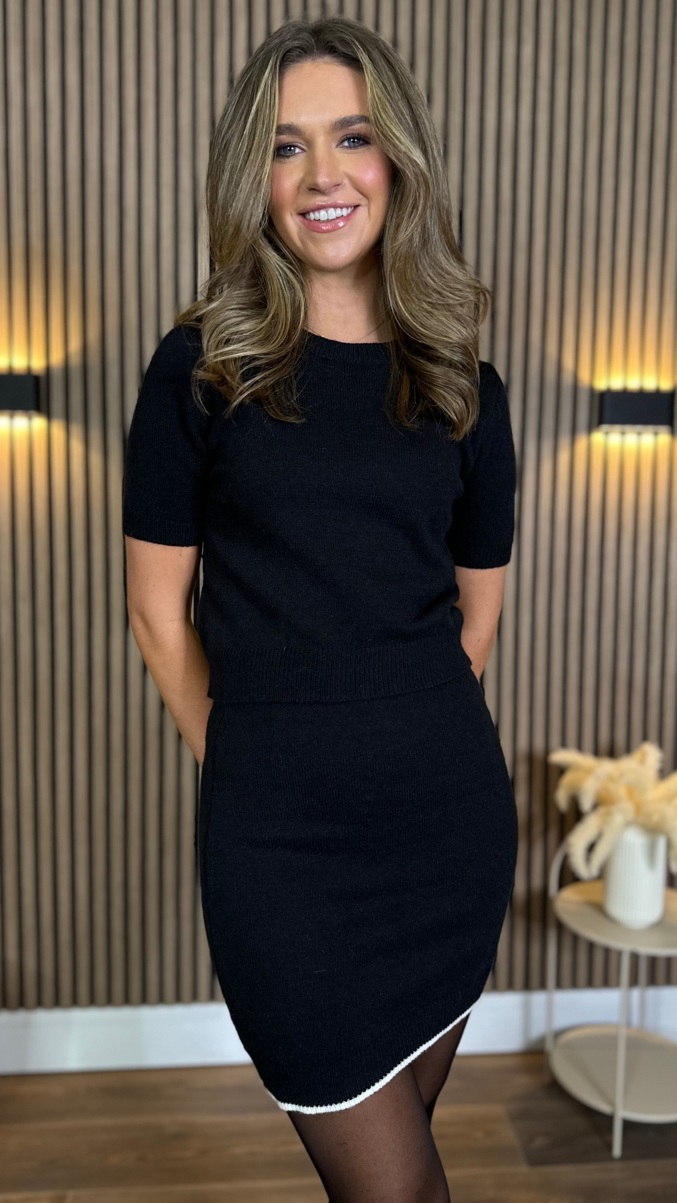 Mollie Black Knit Detail Top & Mini Skirt Co Ord