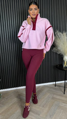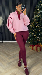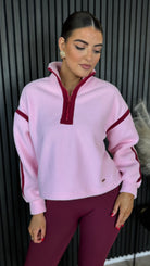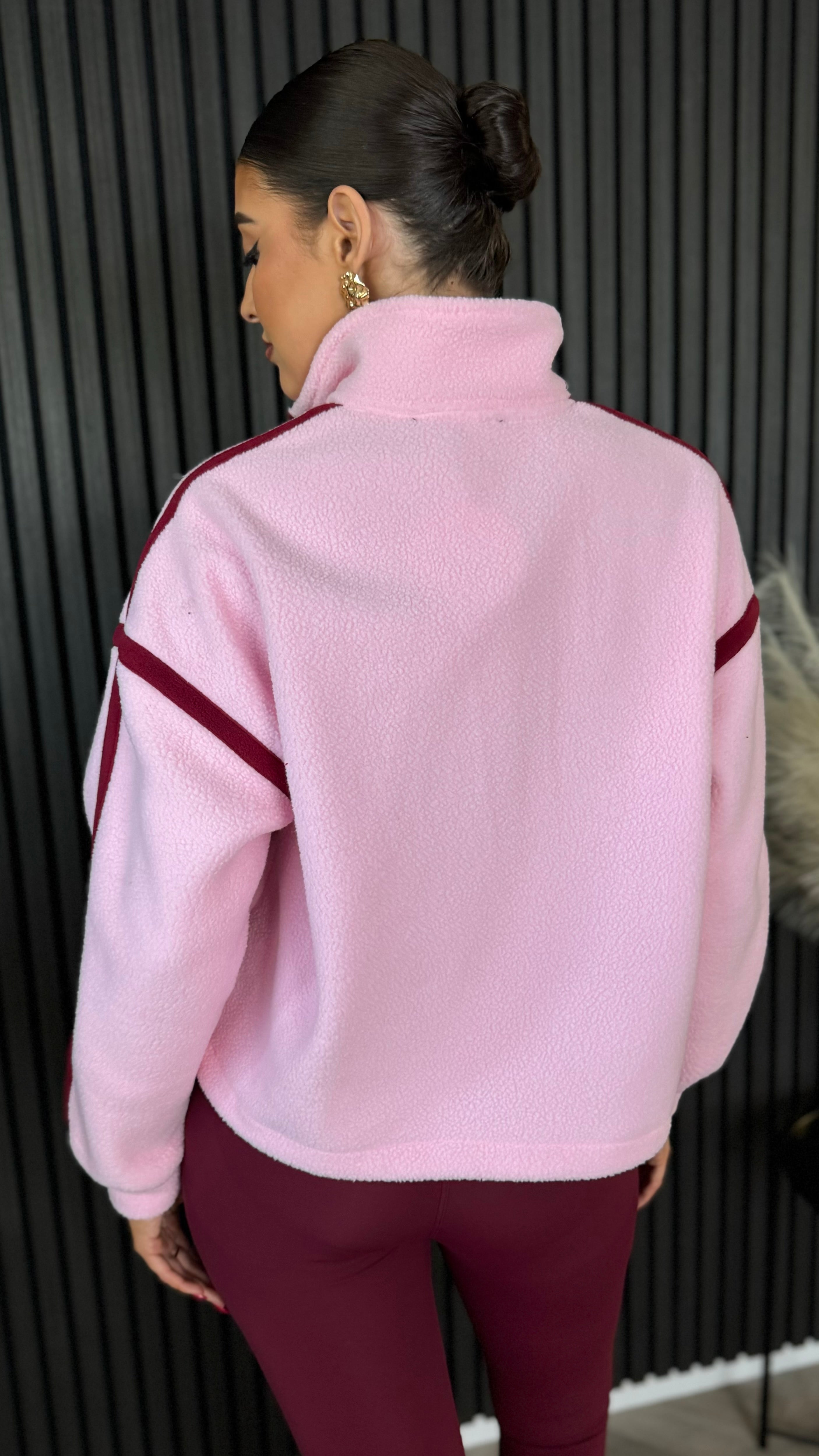 Mollie Pink & Burgundy Contrast Zip Fleece