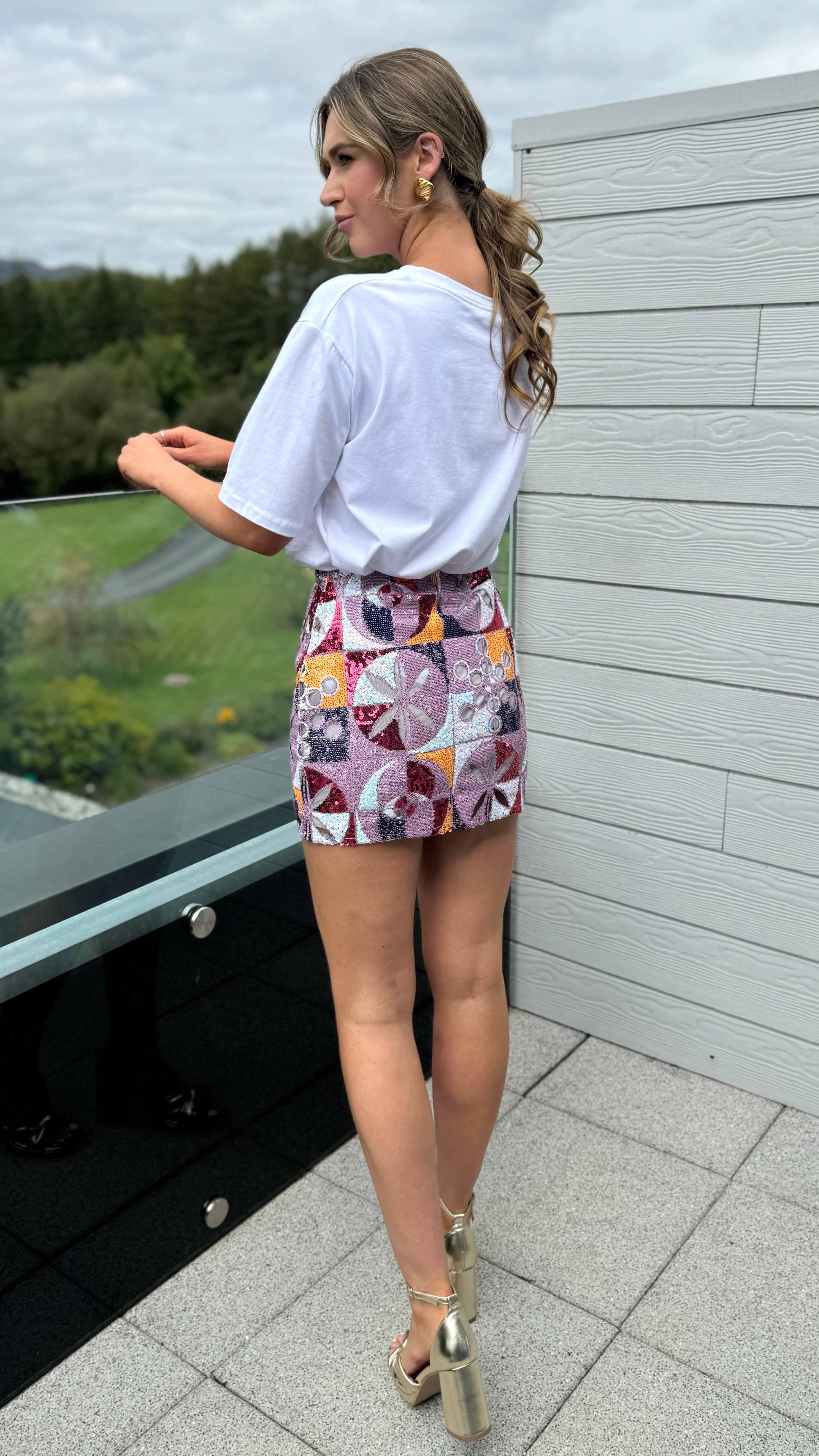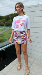 Add a splash of sparkle and colour with the Monica Purple & Orange Sequin Mesh Mini Skirt! 🌟 This playful design shines with vibrant sequins layered over a breathable mesh, perfect for turning heads at parties or festivals. Flaunt your fun side while staying cool and comfy all night long! 💃✨