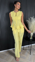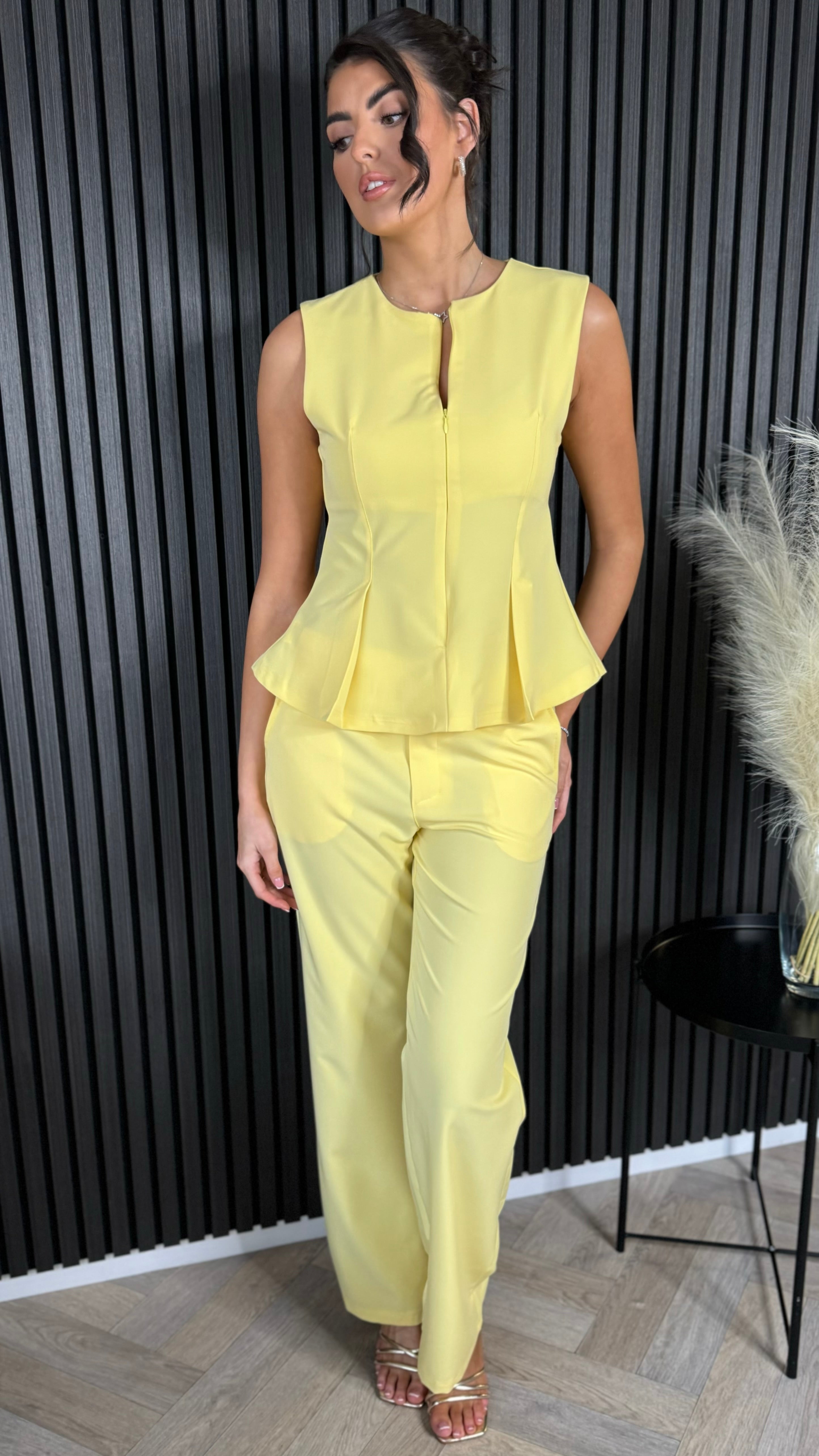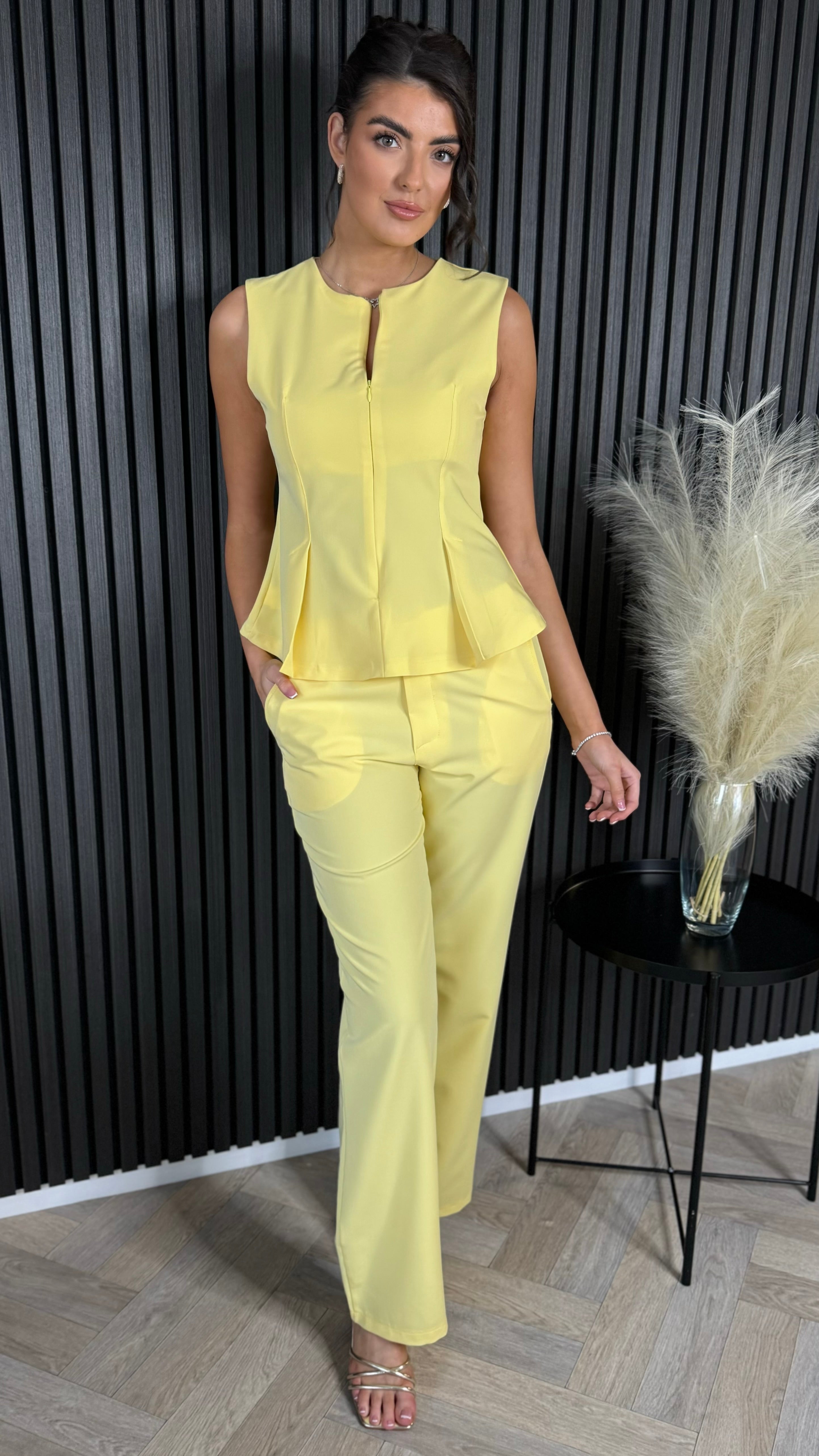 Nanette Yellow Zip Detail Sleeveless Top & Straight Leg Trousers Co Ord