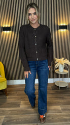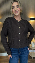 Cozy up in the Nasa Chocolate Brown Pocket Detail Cardigan, your new go-to for chilly days! This chunky knit beauty features handy front pockets perfect for stashing snacks or secret treasures. With cute buttons down the front and snug ribbed cuffs and neck, it’s designed to keep you comfy and looking effortlessly cool. Wrap yourself in warmth and style with this playful, pocket-filled essential!