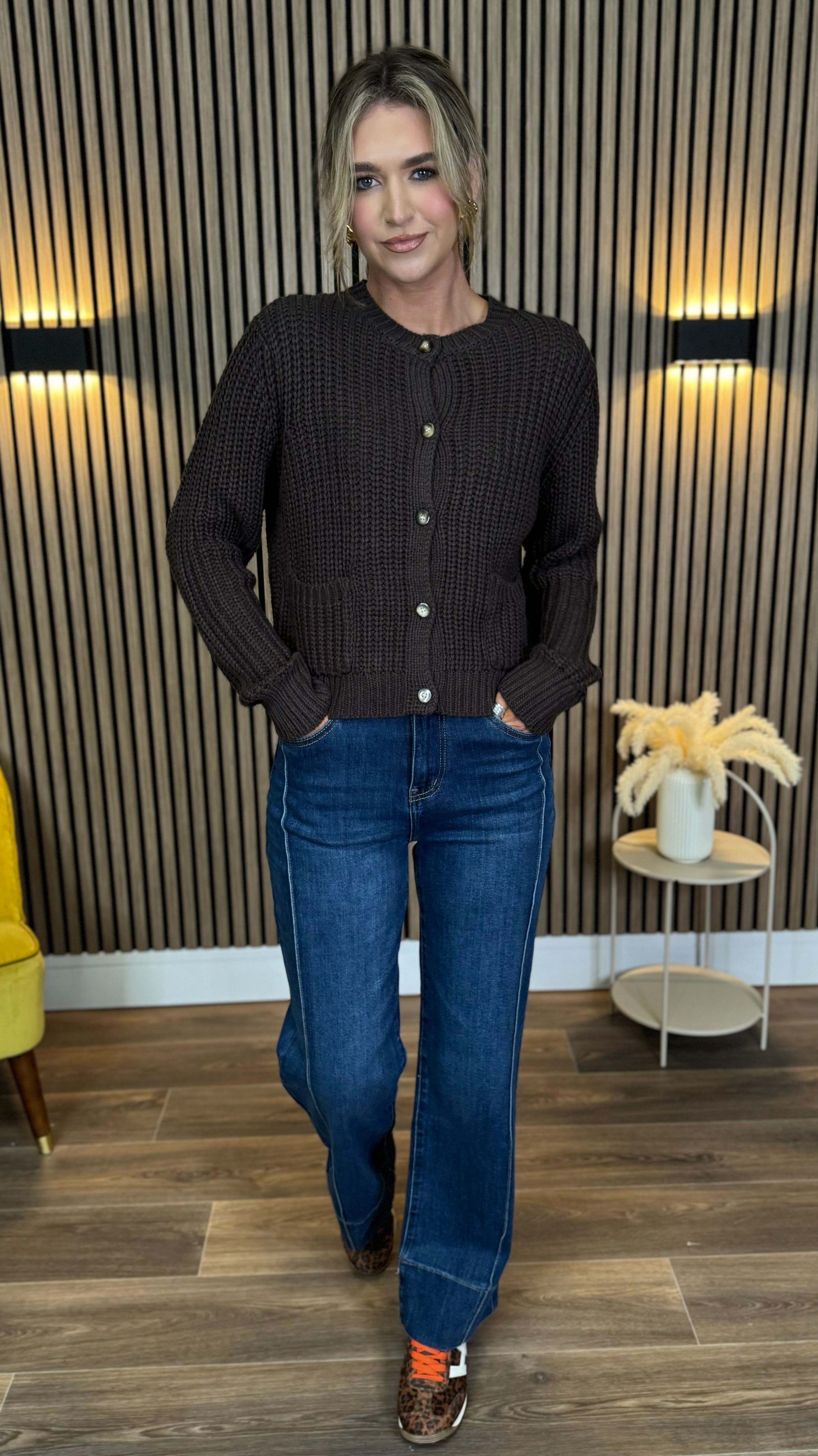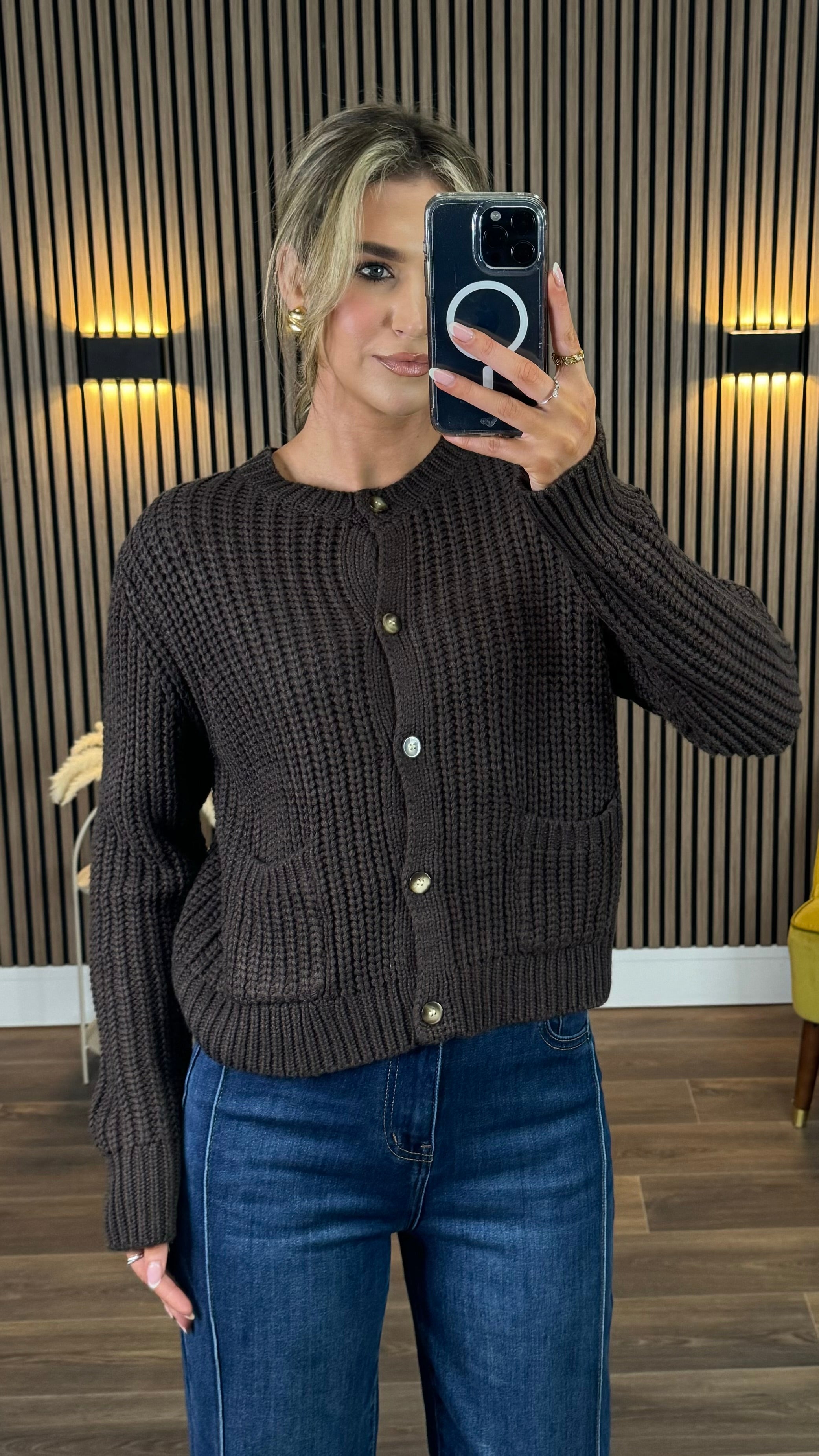 Nasa Chocolate Brown Pocket Detail Cardigan