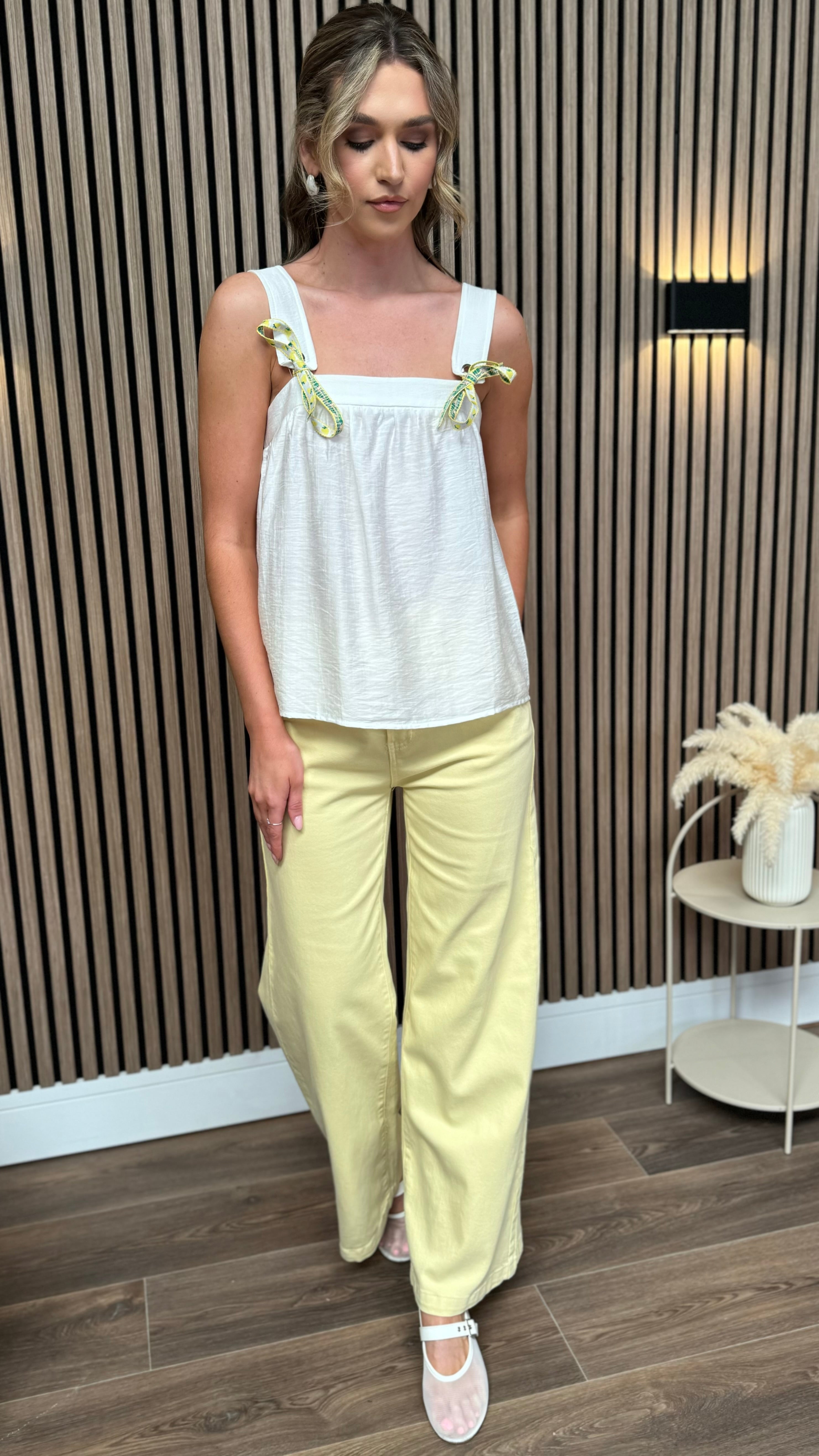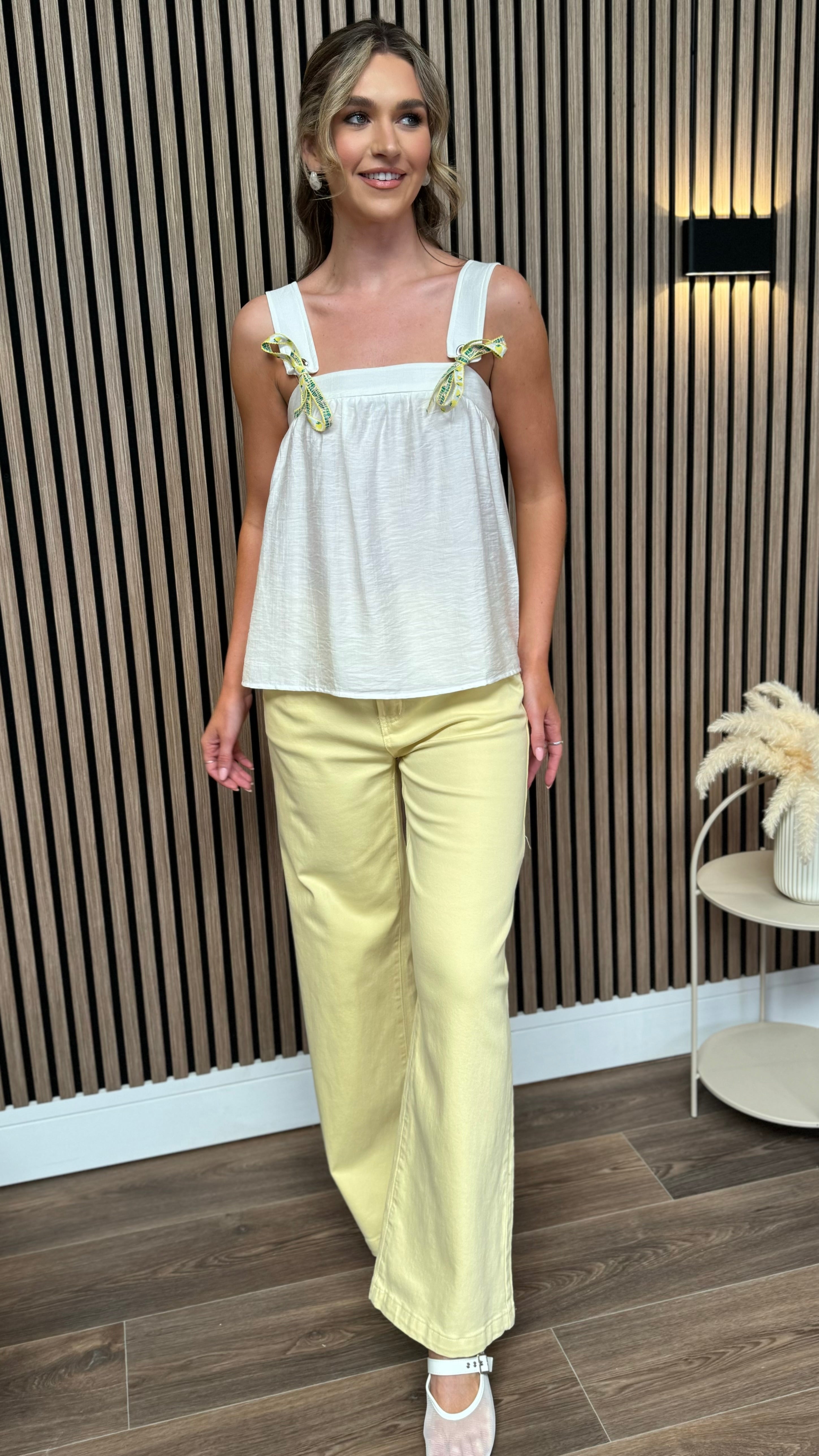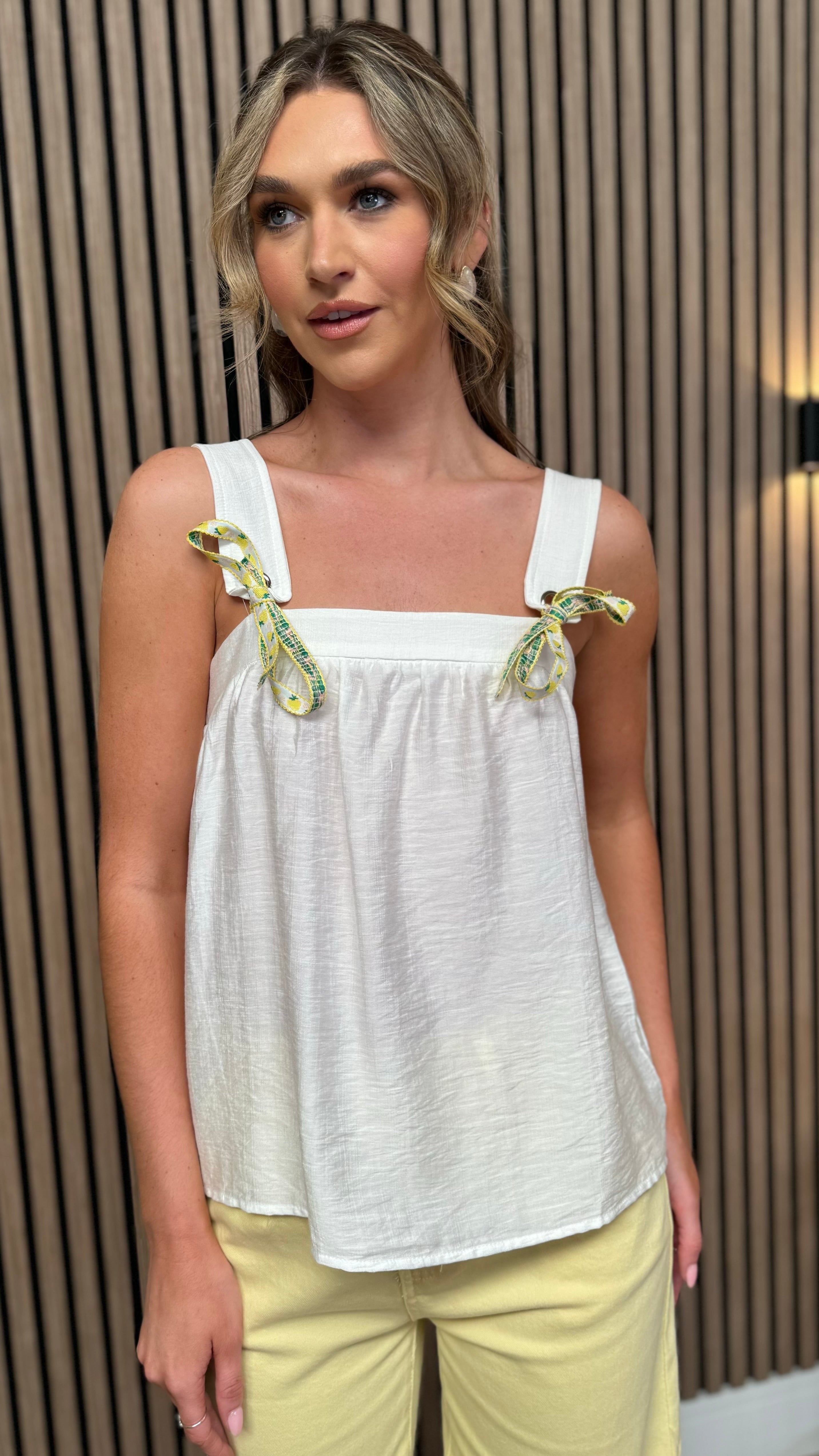 Amara White Lemons Detail Tie Strap Top