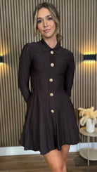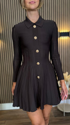 Nessa Brown Button Down Collared Knit Mini Dress