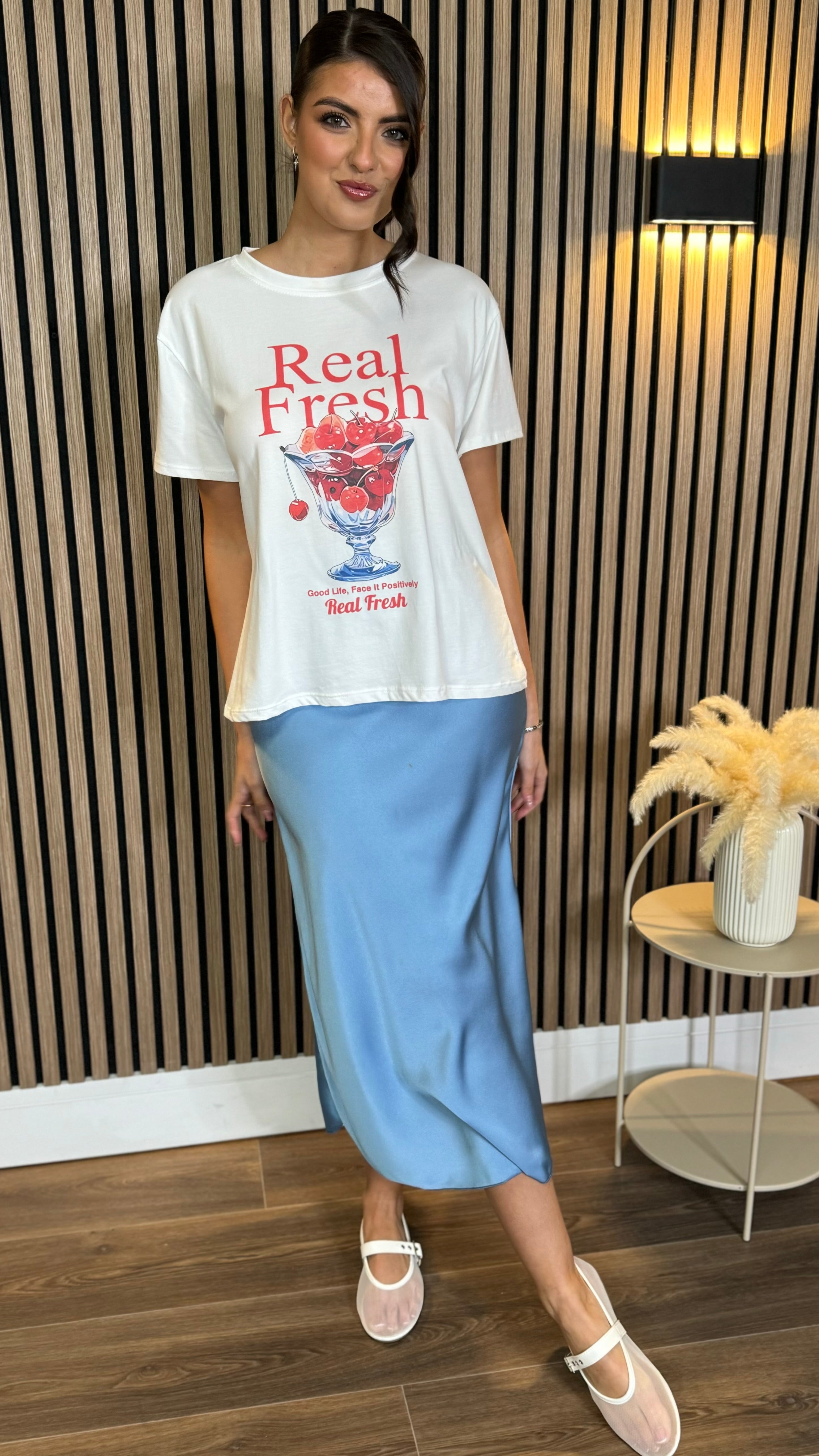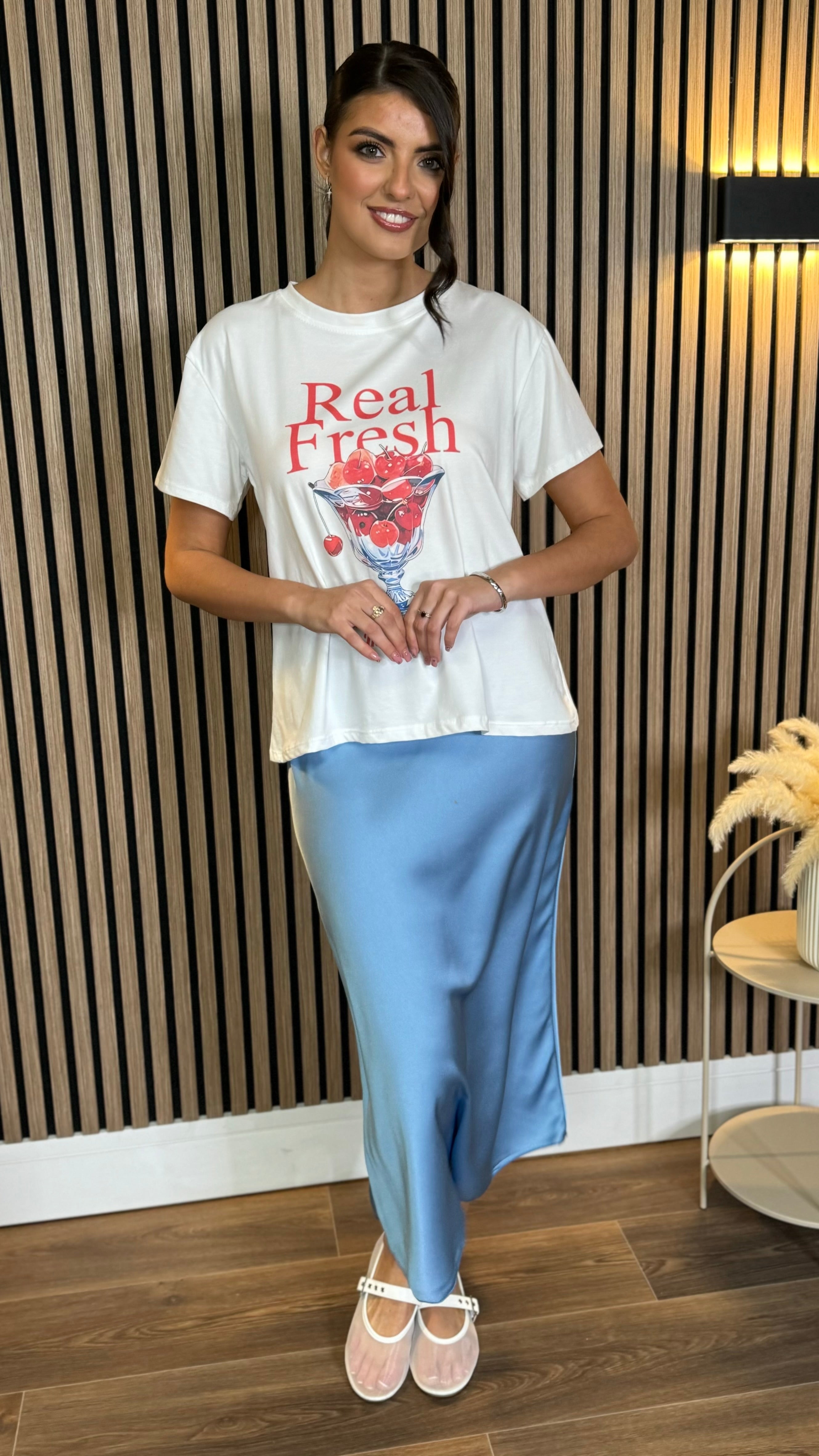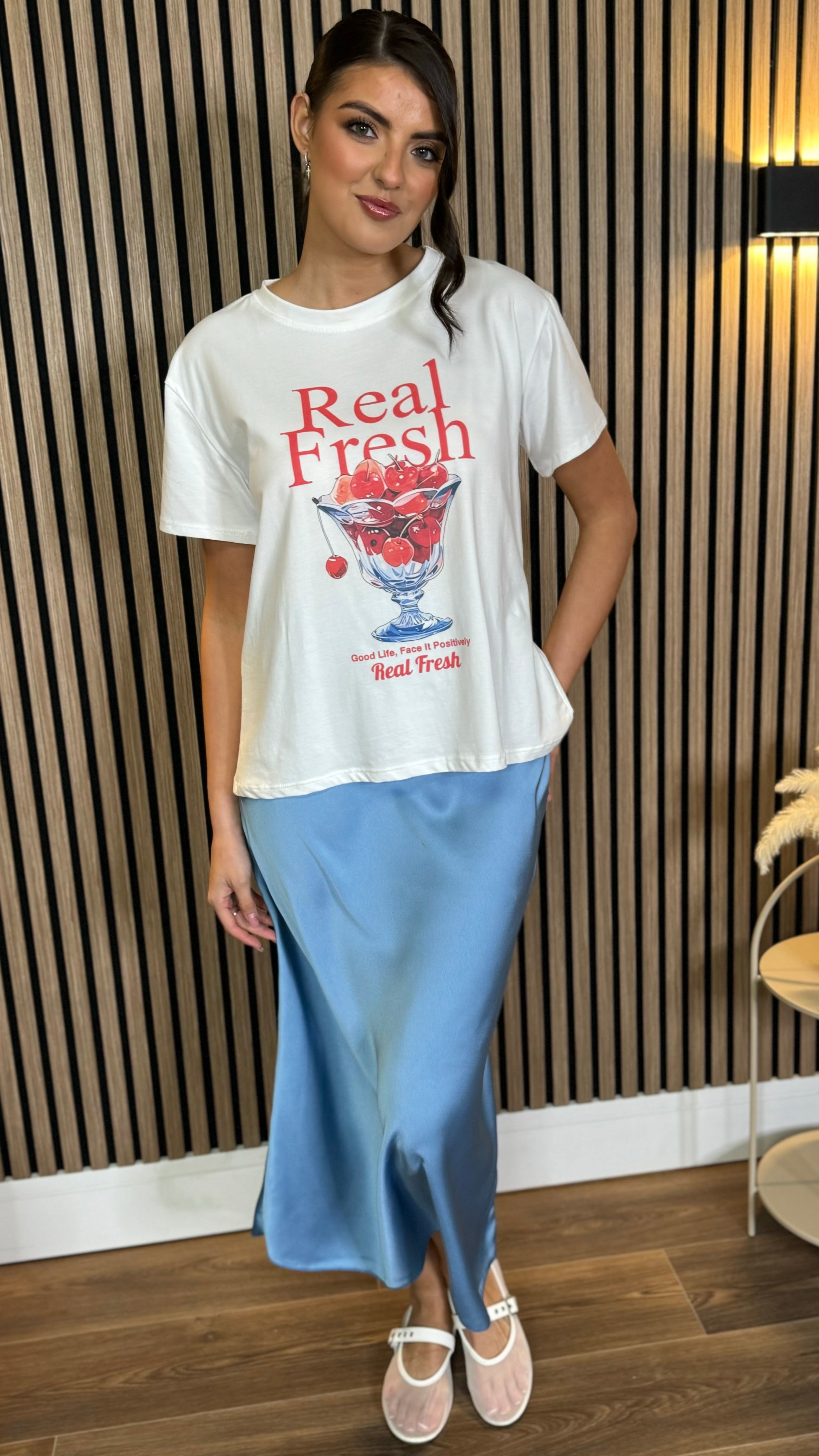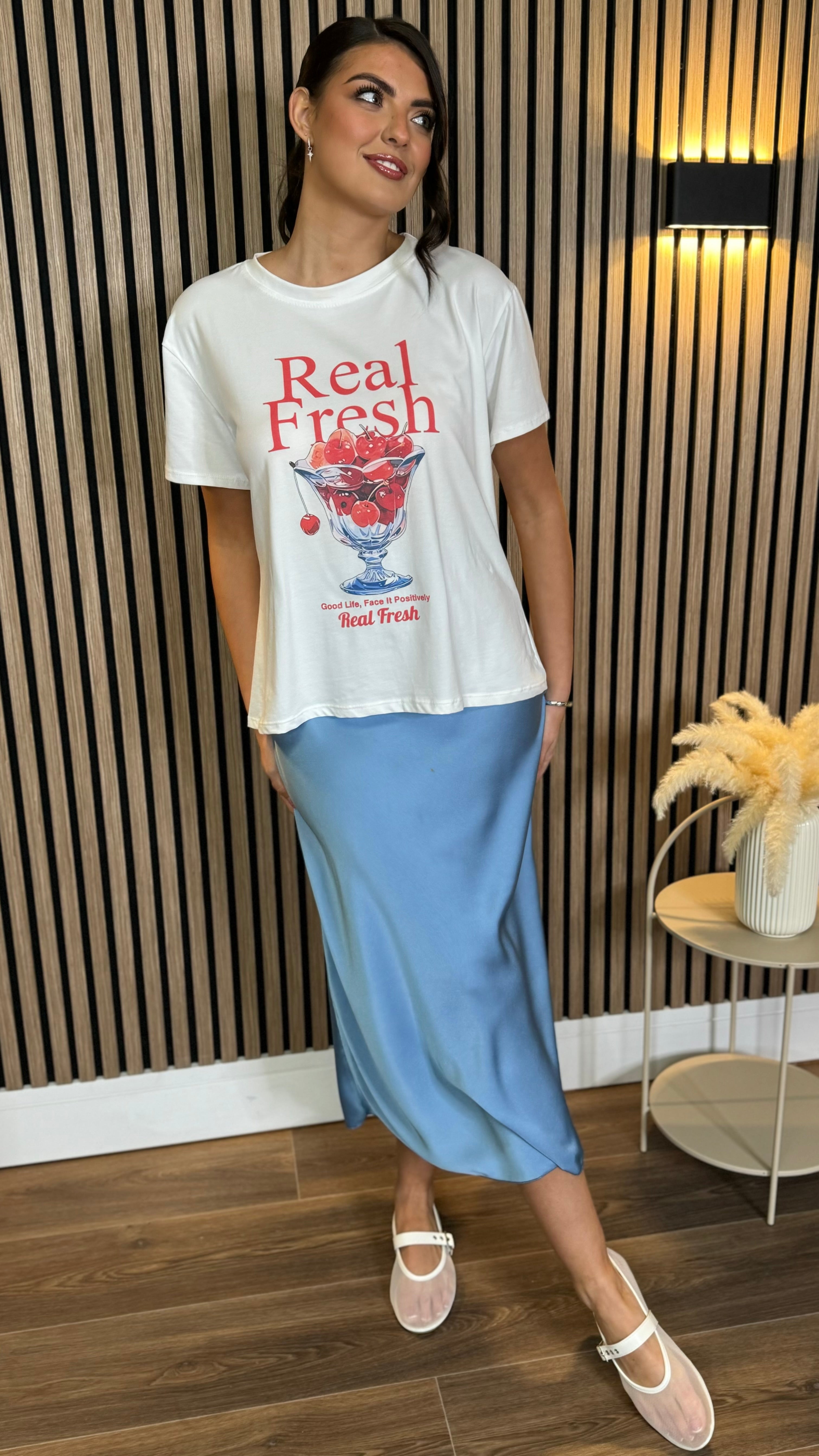 Nola White Graphic 'Real Fresh' Printed T Shirt