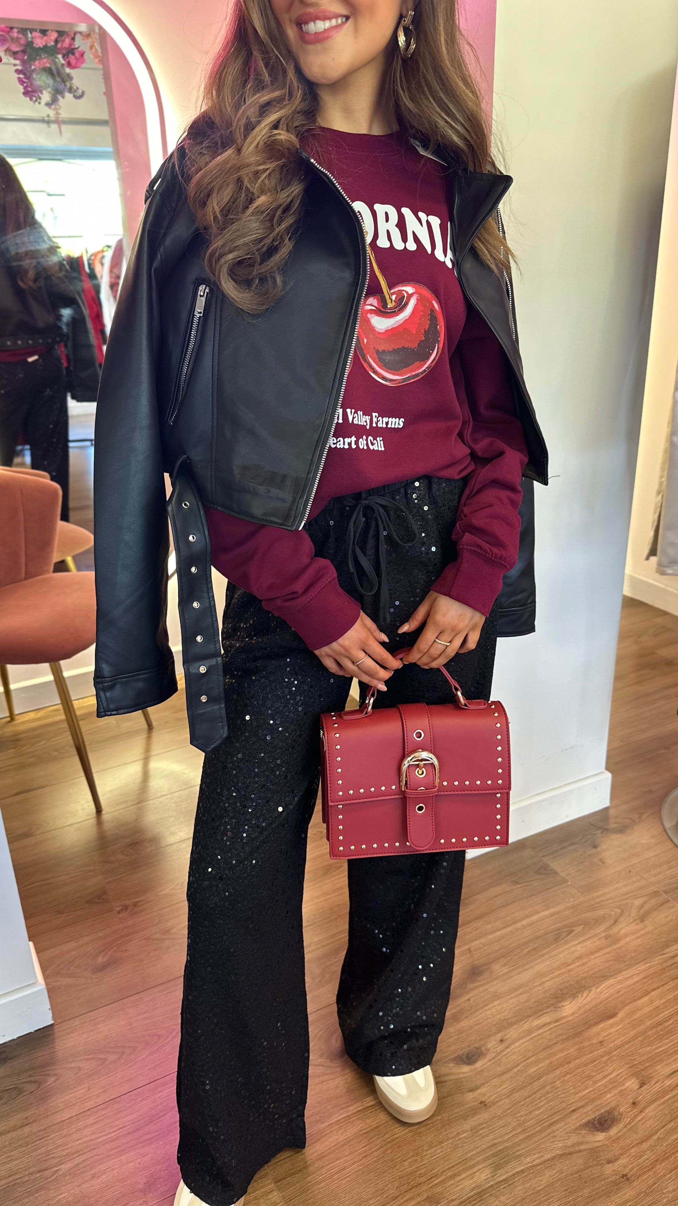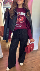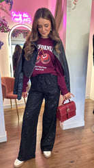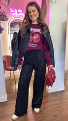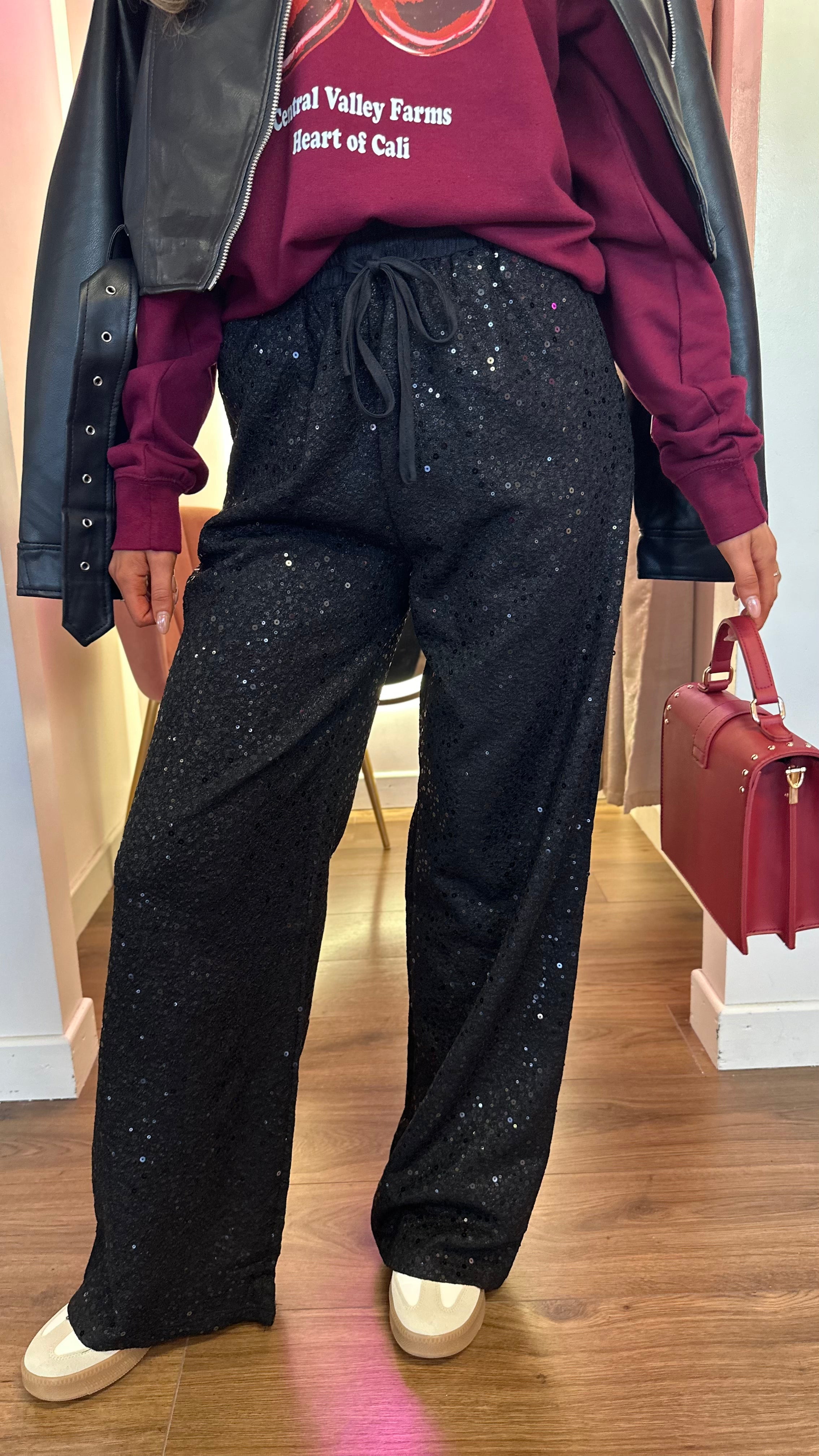 Get ready to sparkle and shine with Nolani Black Sequin Trousers! 🌟 Designed with an elasticated waist for a comfortable fit, these trousers bring a touch of glamour to any outfit. Perfect for a night out or a special occasion, these trousers are a must-have for every fashionista.