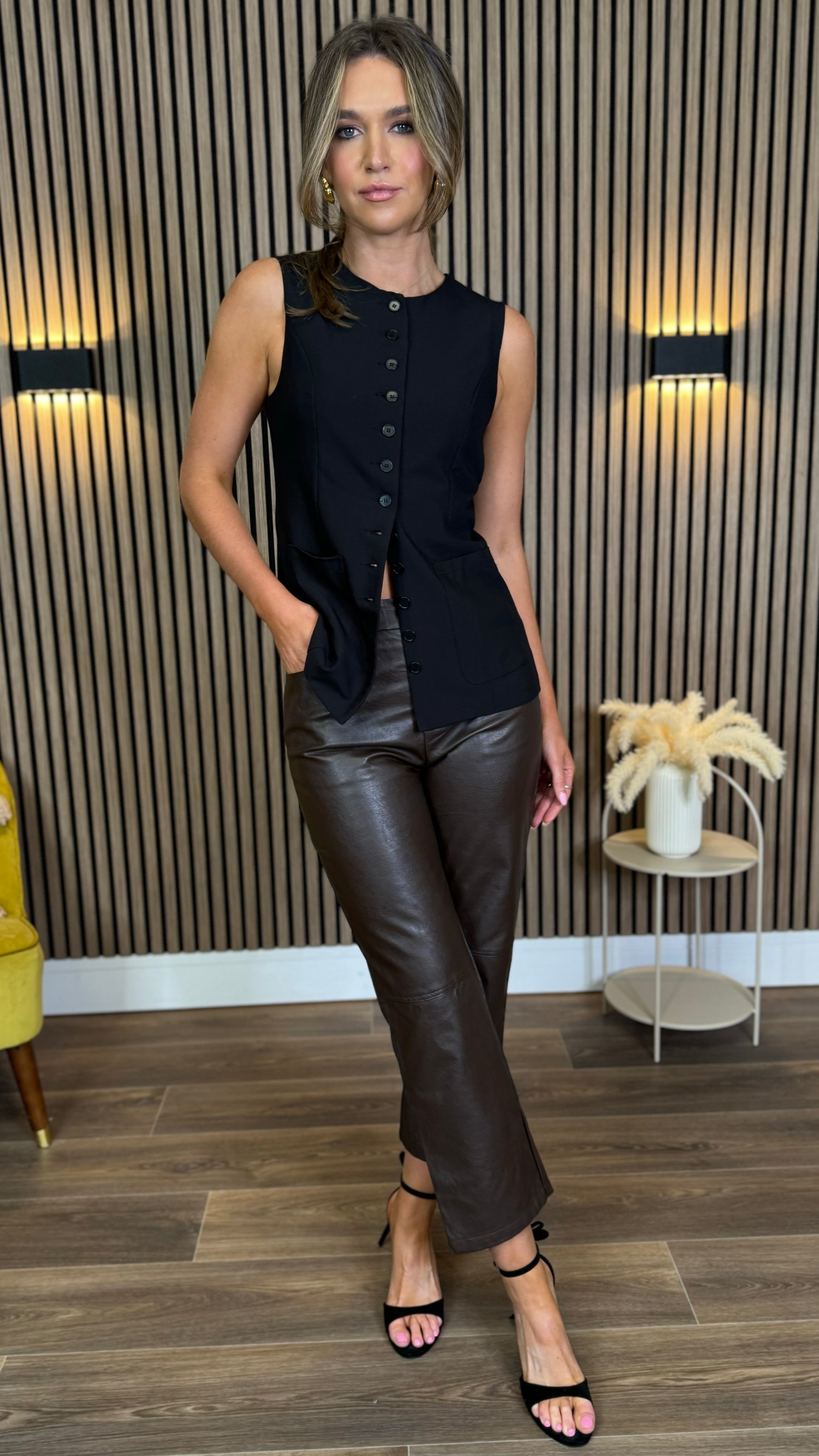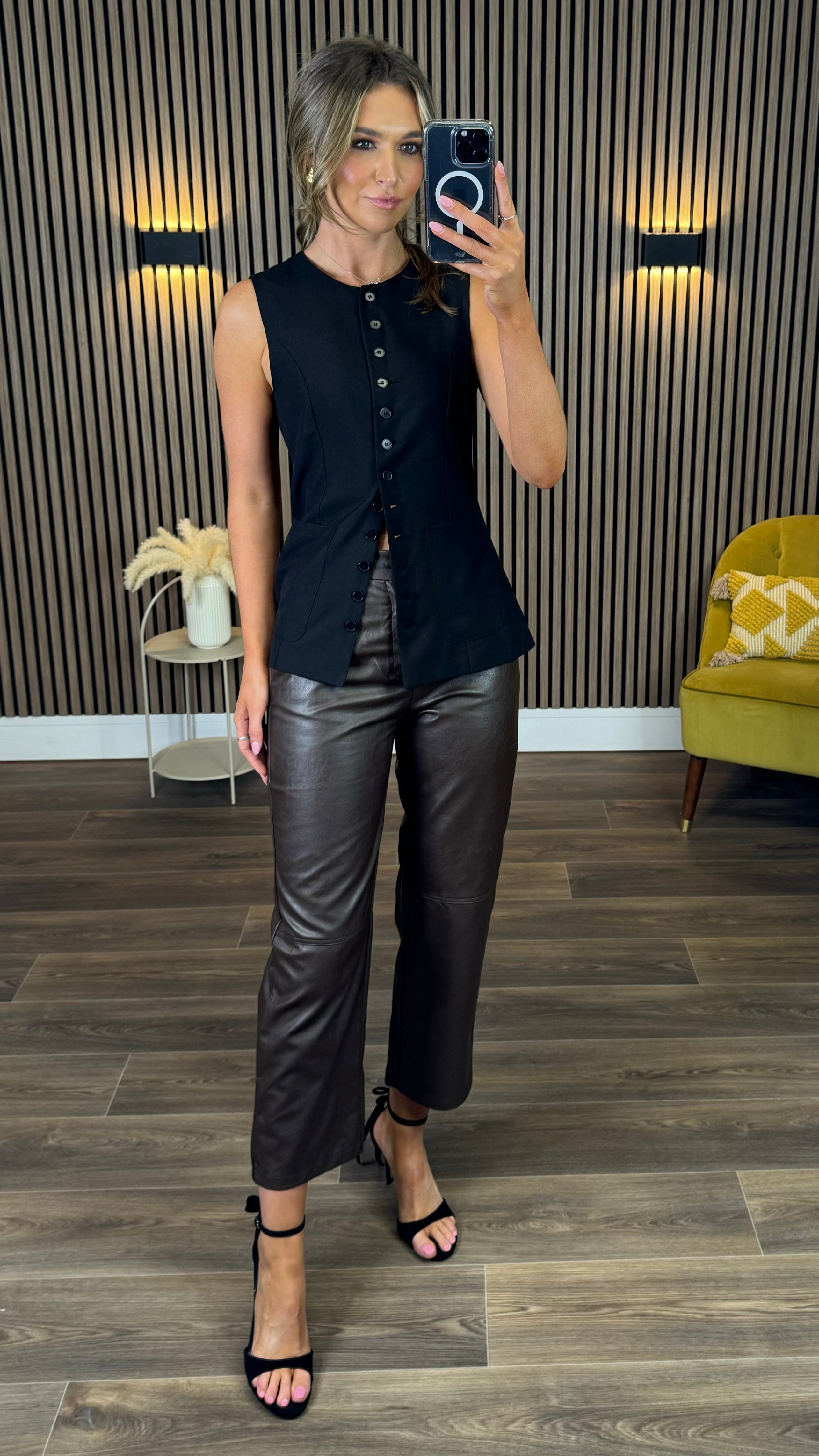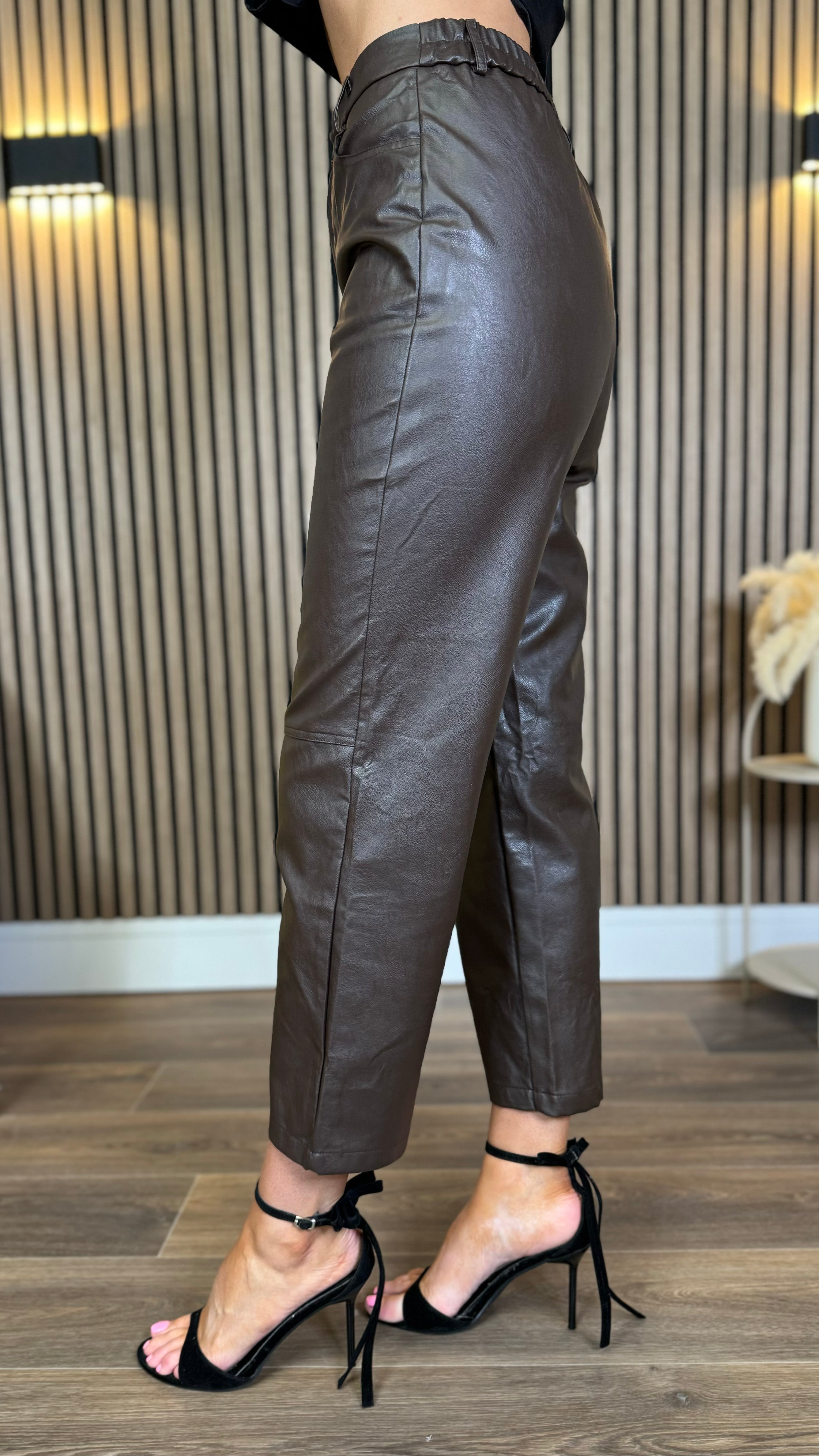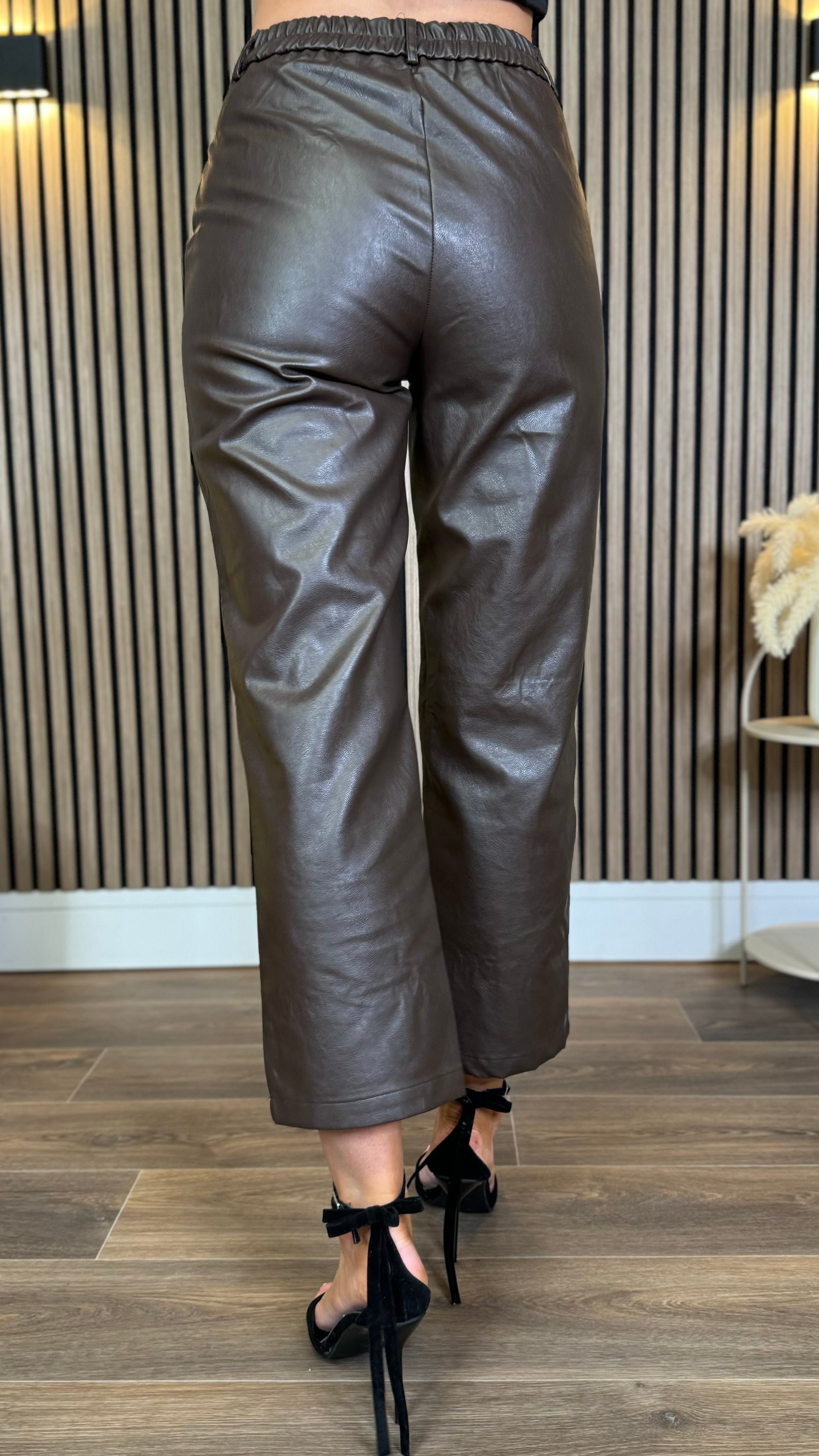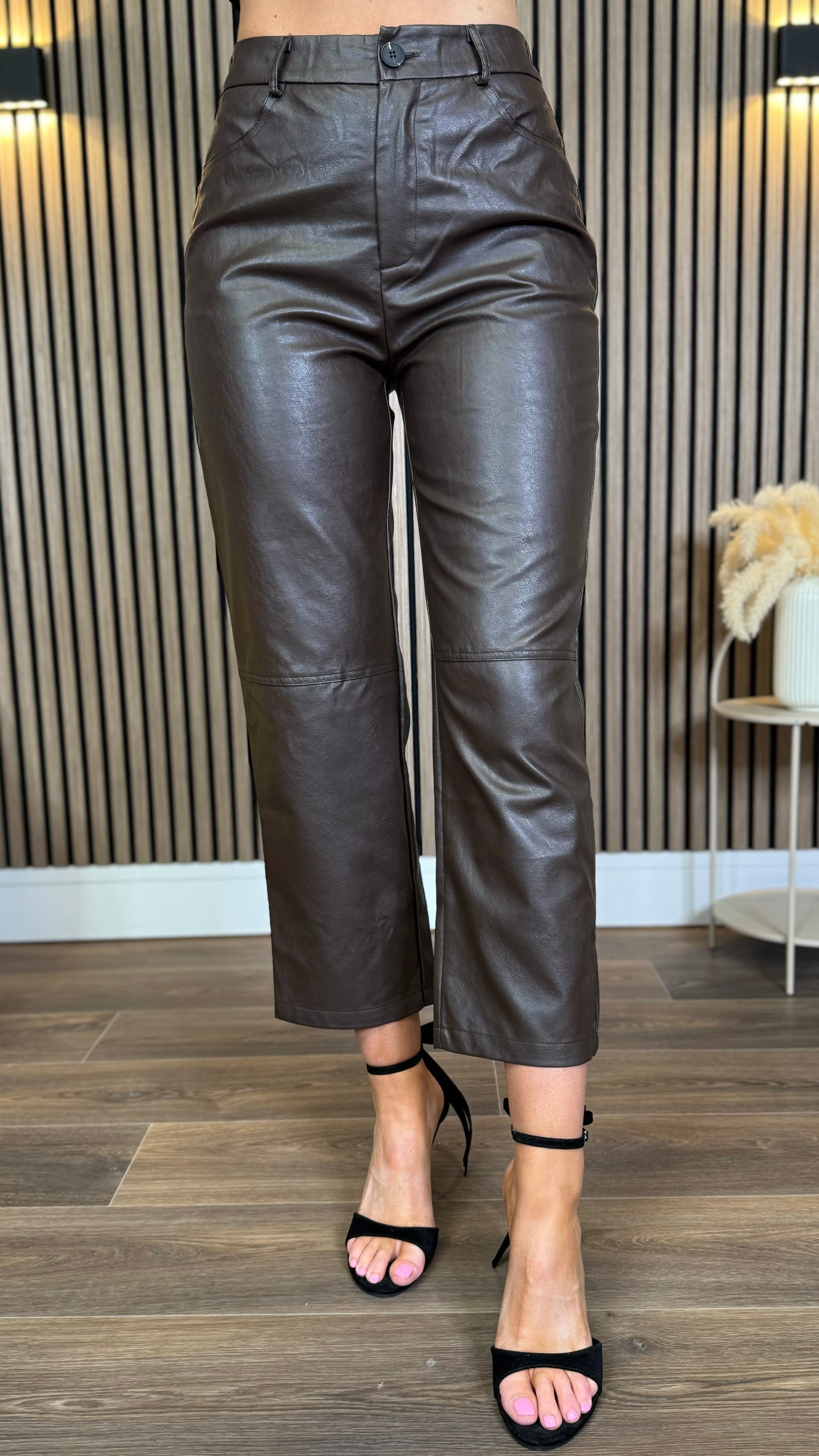Oaklee Dark Brown Faux Leather Cropped Trousers