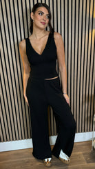 Pixie Black Vest and Wide Leg Trouser Co-Ord