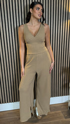 Pixie Camel Vest and Wide Leg Trouser Co-Ord
