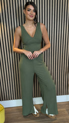 Pixie Khaki Vest and Wide Leg Trouser Co-Ord