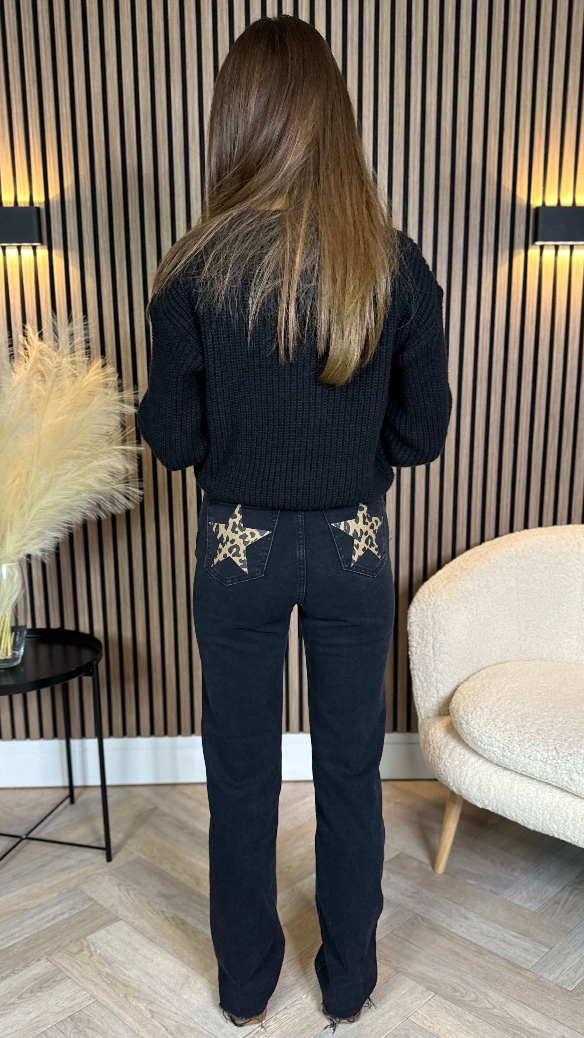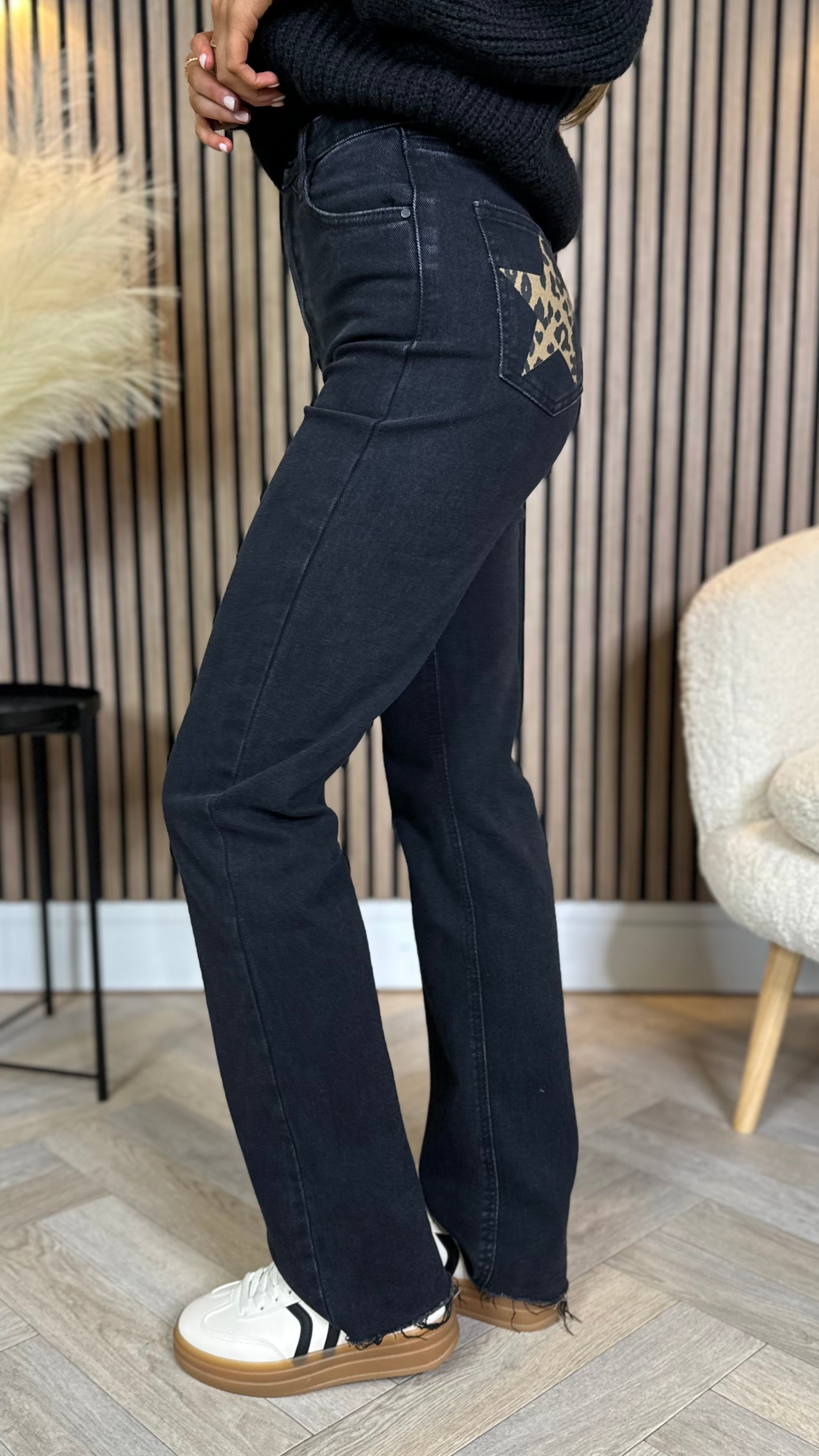 Upgrade your denim game with Quest Black Straight Leg Frayed Hem Pocket Detail Jeans! 🦁 Perfect for any occasion, these black jeans feature a playful frayed hem and trendy leopard pocket detail. Don't miss out on adding these to your wardrobe! 🌟