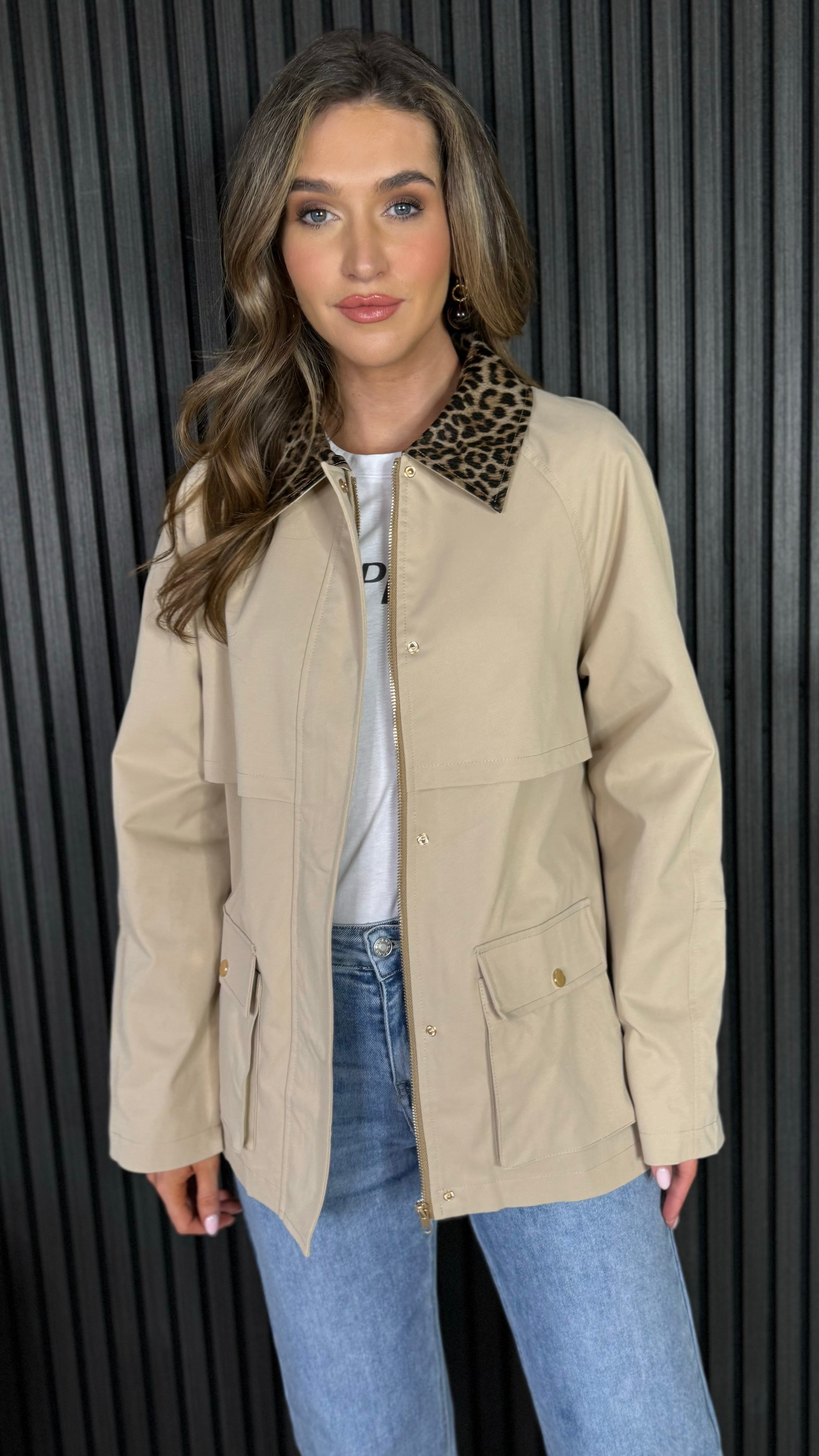 Reya Beige Leopard Collar Oversized Jacket