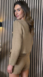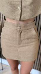 Get ready to slay your look with the Rhona Camel Jacket & Skort Co Ord! This stylish set features a versatile camel color and is adorned with gold buttons for a touch of sophistication. With convenient double pockets, you'll have all your essentials at hand. Perfect for any occasion! 🙌