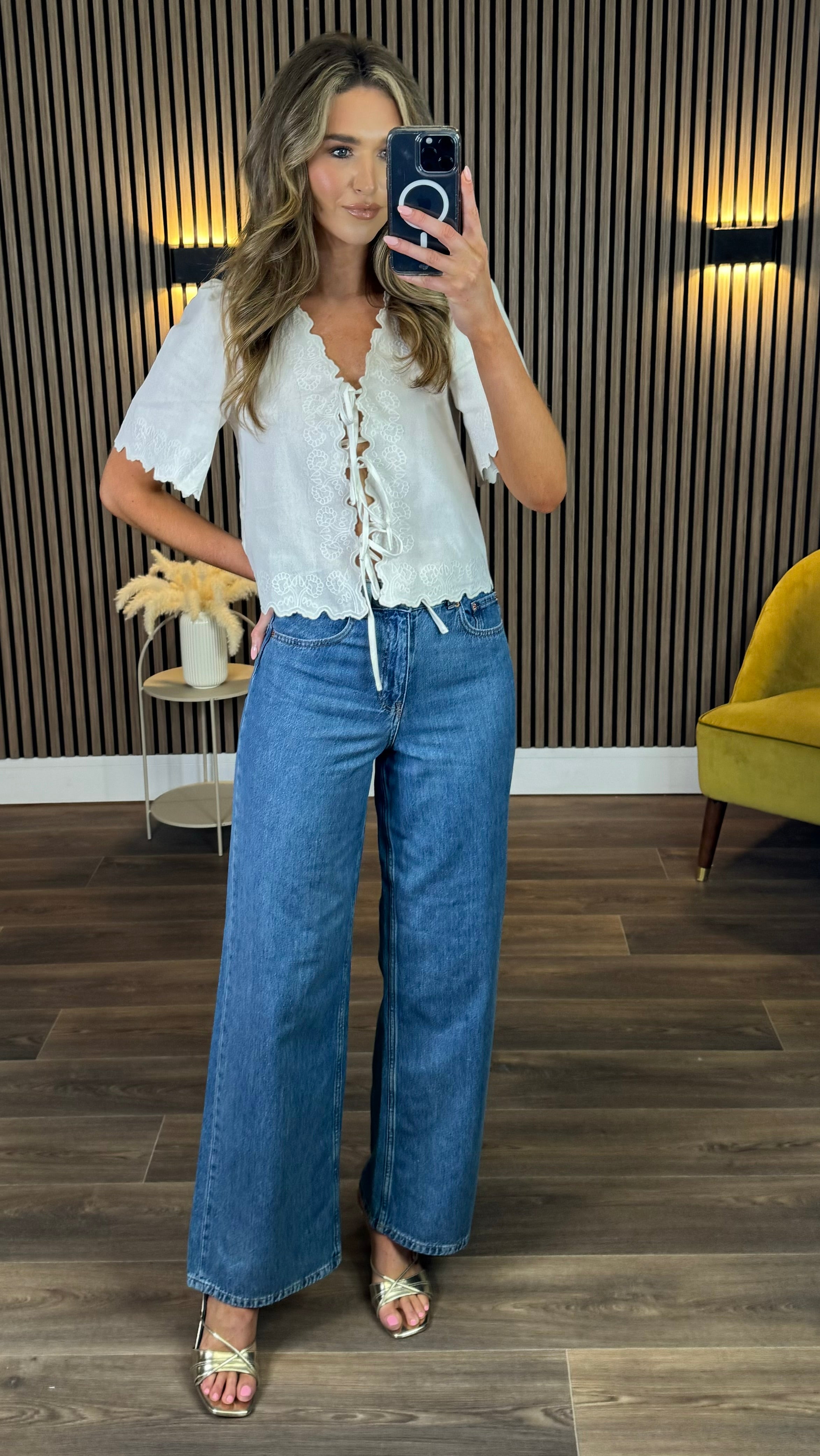 Rosalind White Embroidered Detail Tie Top