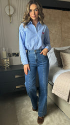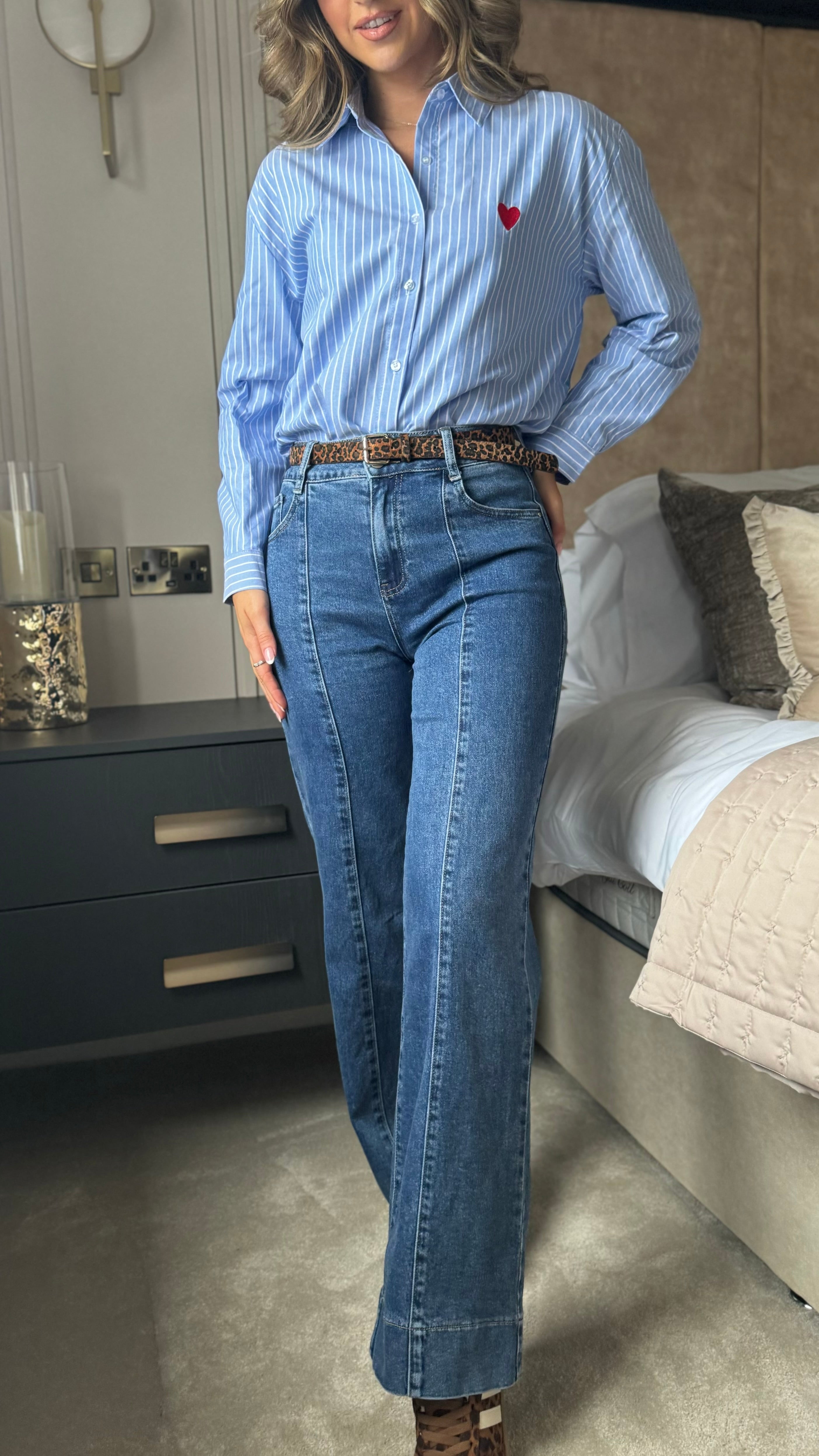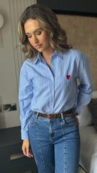 Ryan Blue Stripe Shirt With Red Embroidered Heart
