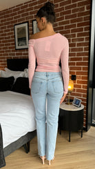 Sandra Pink Ribbed Off Shoulder Detail Top
