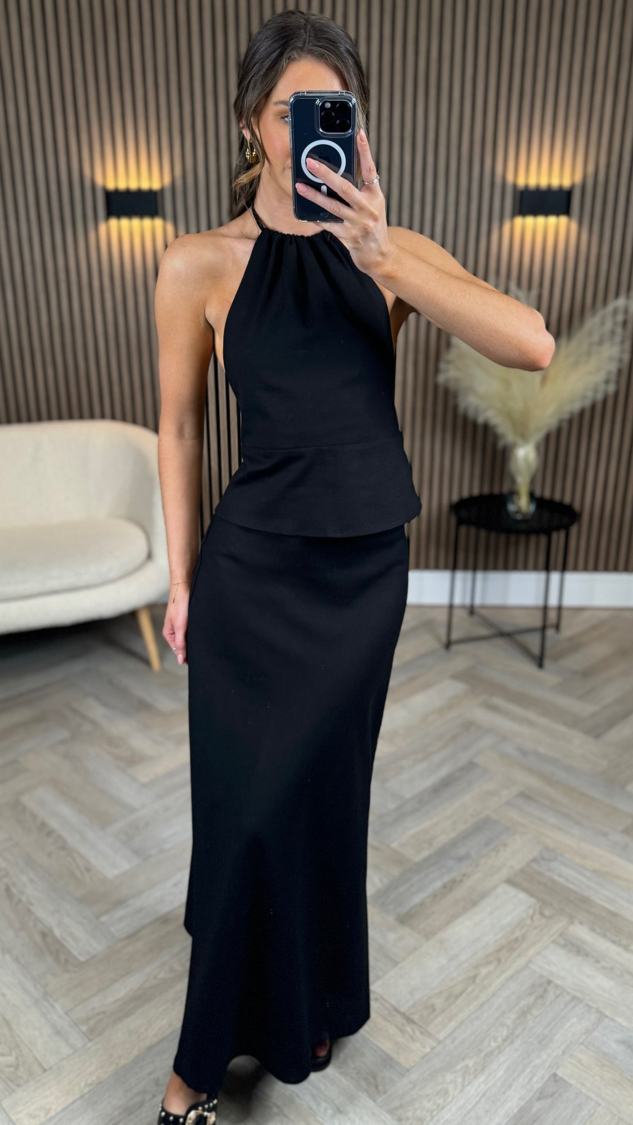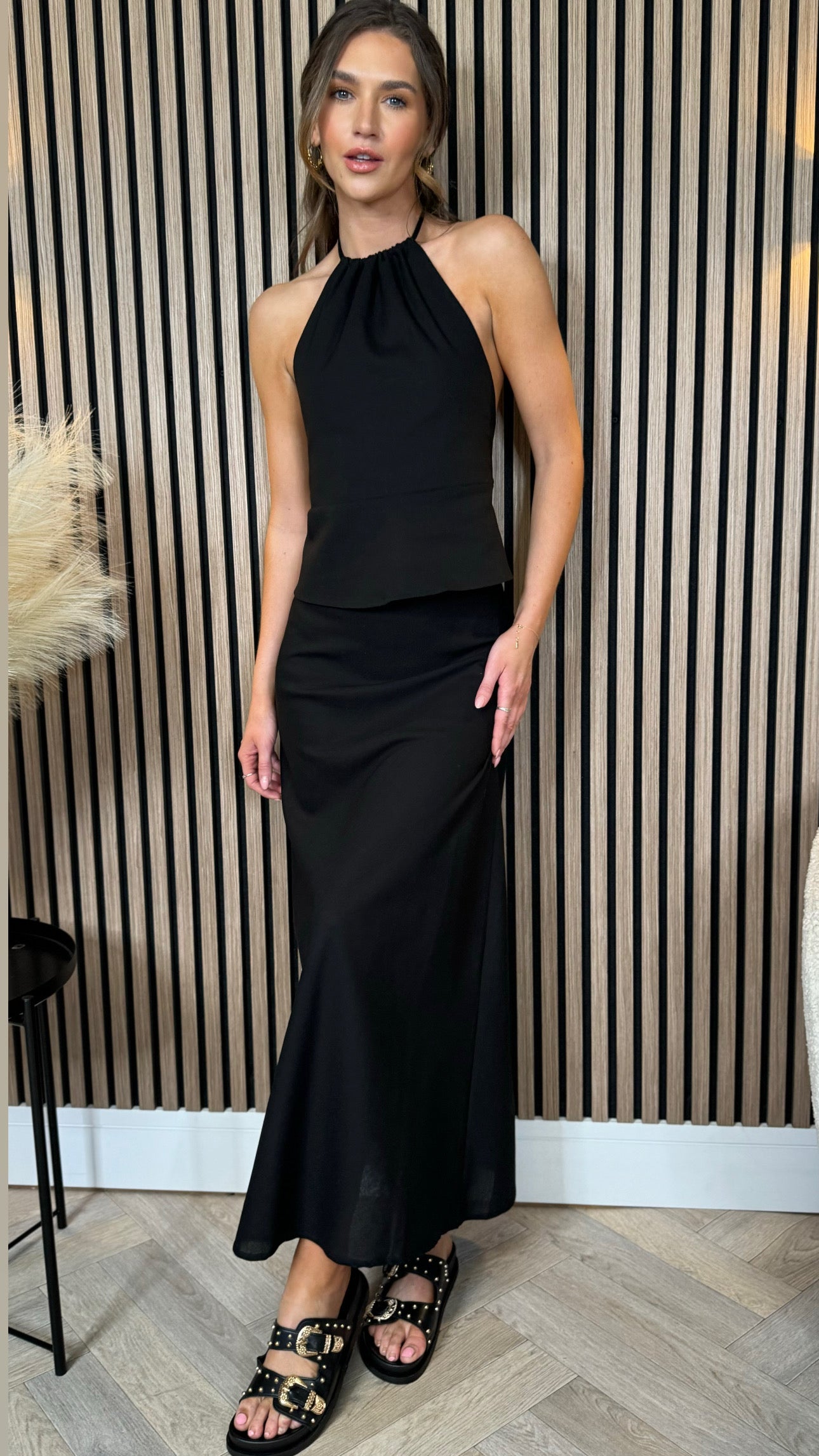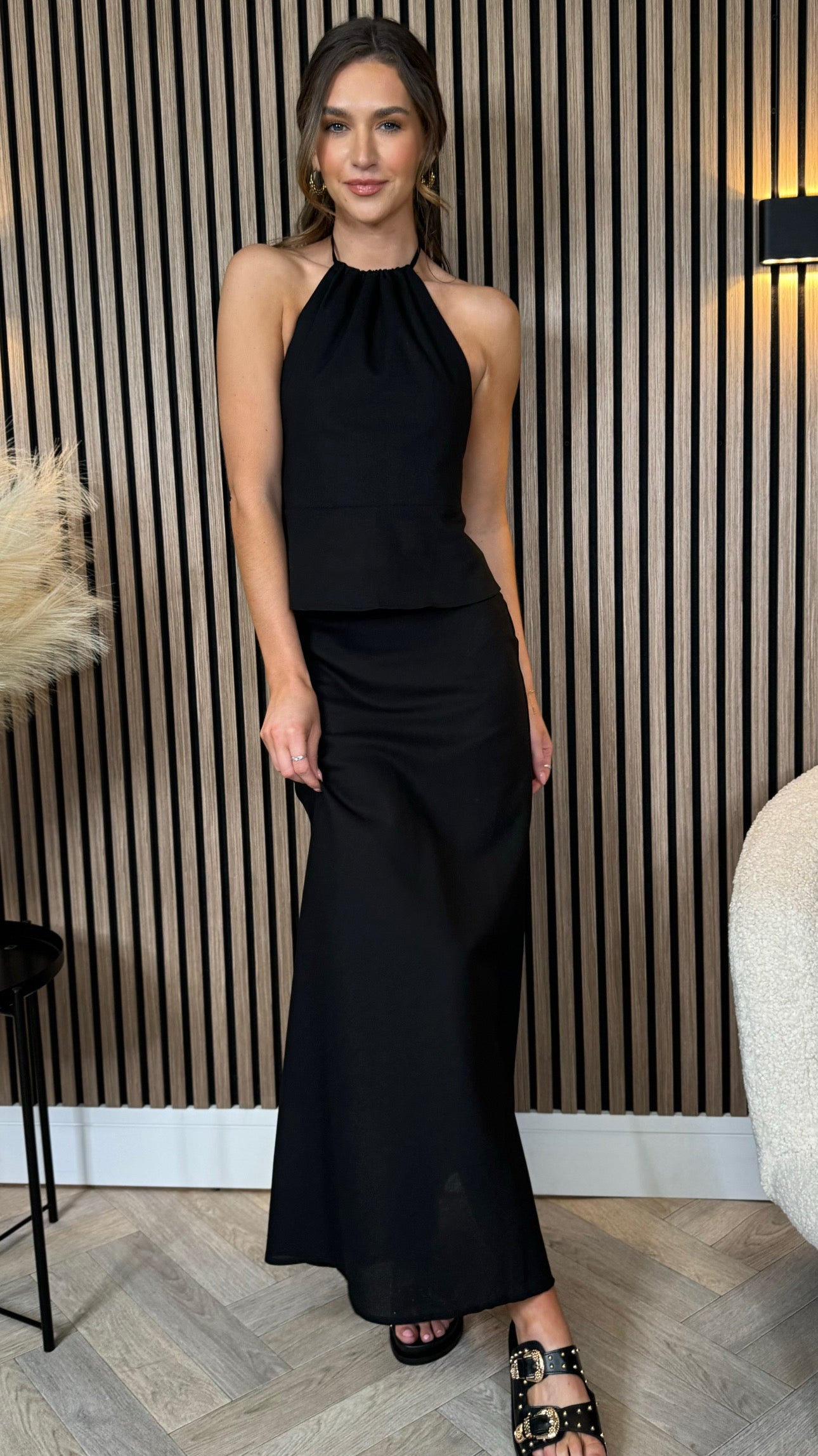 Seraphina Black Midi Skirt & Halterneck Top Co Ord
