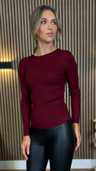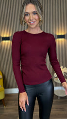 The Shay Burgundy Ribbed Ruched Detail Top is a playful twist on your everyday favorite. Featuring a cozy round neckline and long sleeves, it’s crafted from soft, stretchy ribbed fabric that feels as good as it looks. The flattering ruched detail adds a flirty touch, while the curved hem gives a fun finish that moves with you all day long.