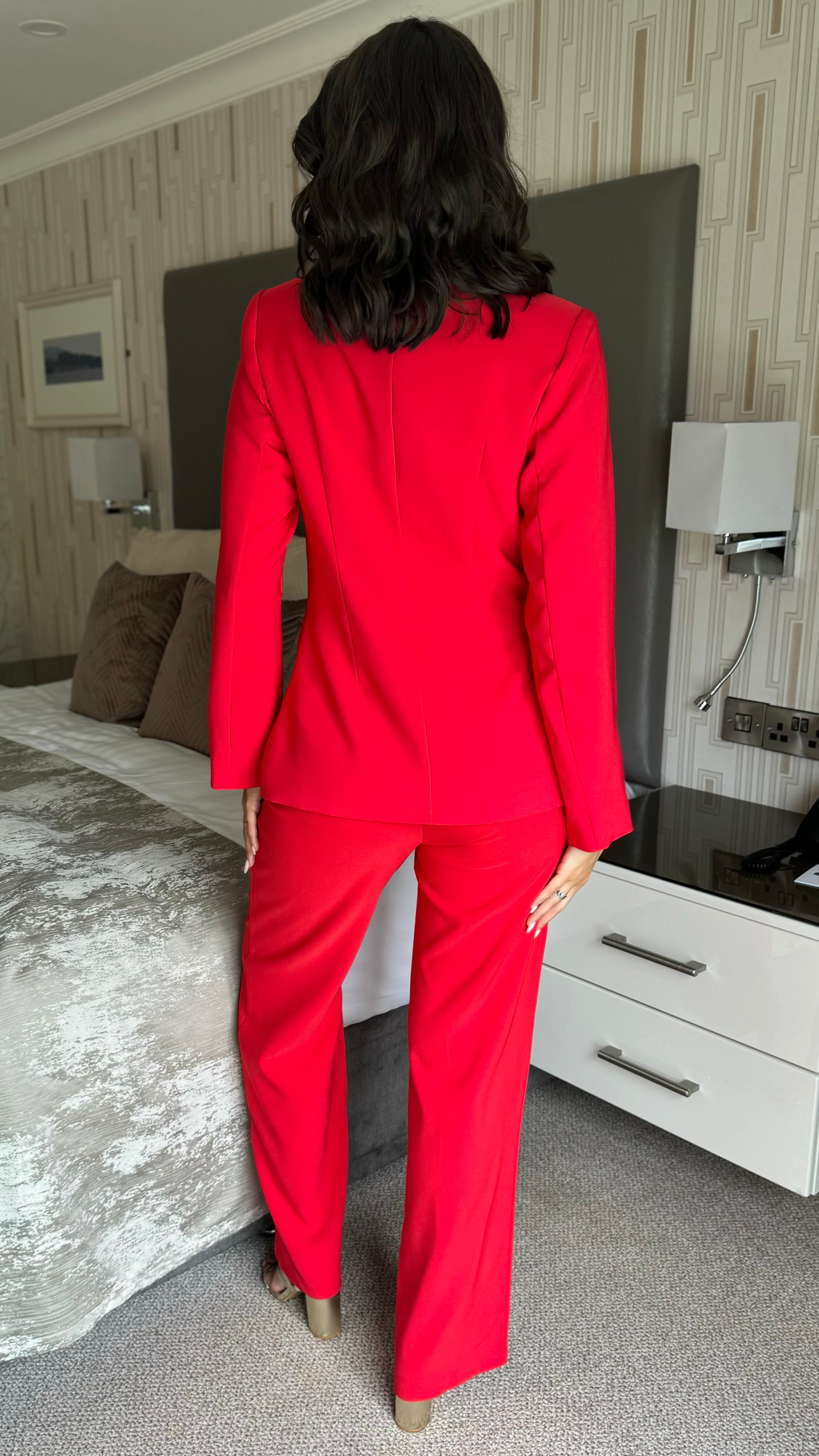 Elevate your wardrobe with the Sheena Red Straight Leg Tailored Trousers. Expertly crafted for a sleek, flattering fit, these trousers offer a bold pop of colour while maintaining a refined silhouette. Perfect for both professional settings and stylish evenings, their tailored design ensures comfort and confidence throughout your day.
