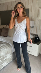 Elevate your look with the Solange White Lace Detail Cami Top! 🌼 Featuring delicate lace accents, this playful cami adds a touch of romance to any outfit. Its soft, breathable fabric ensures comfort while keeping your style effortlessly chic. Perfect for sunny days or layering under your favourite jacket! ☀️💖