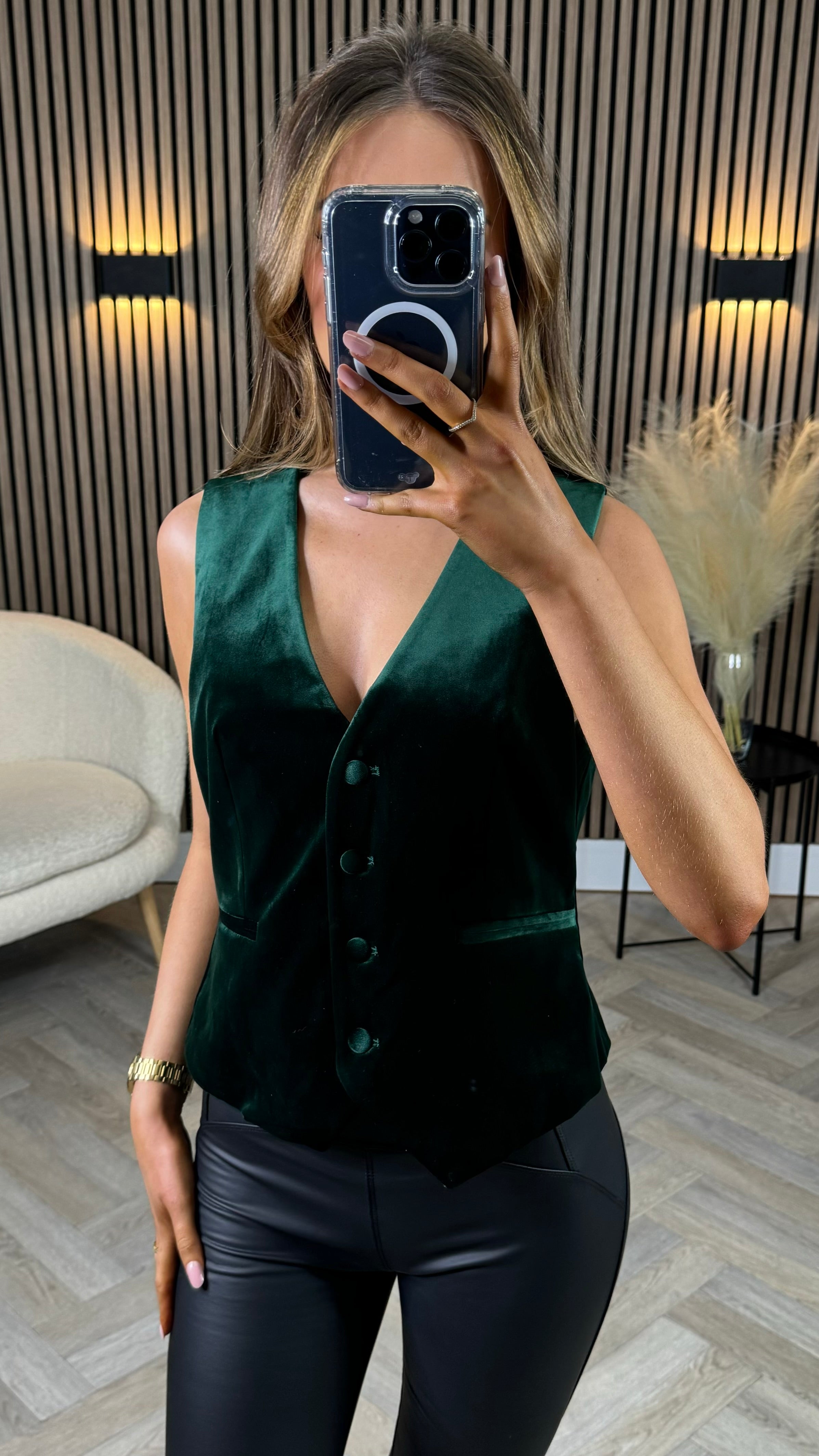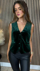 Get ready to make a statement with the Stormi Forest Green Velvet Waistcoat! This tailored piece adds a pop of colour and a touch of sophistication to any outfit. 🌟