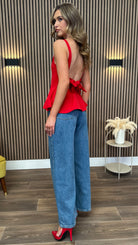 Elevate your wardrobe with the Sutton Red Backless Tie Detail Peplum Top 🔥. Featuring a chic backless design and elegant tie detail, this top flatters your silhouette with a stylish peplum flare. Perfect for sophisticated evenings or standout daytime looks, it combines boldness with refined charm. Add a touch of confidence and grace to your outfit effortlessly.