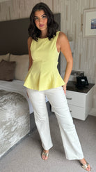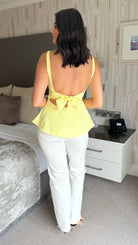 Sutton Yellow Backless Tie Detail Peplum Top