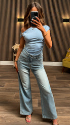 Stay cool and stylish this summer with Tana Mid Blue Straight Leg Jeans! Made from lightweight denim, these jeans are perfect for warm weather. 💙☀️ Upgrade your wardrobe with this must-have piece.