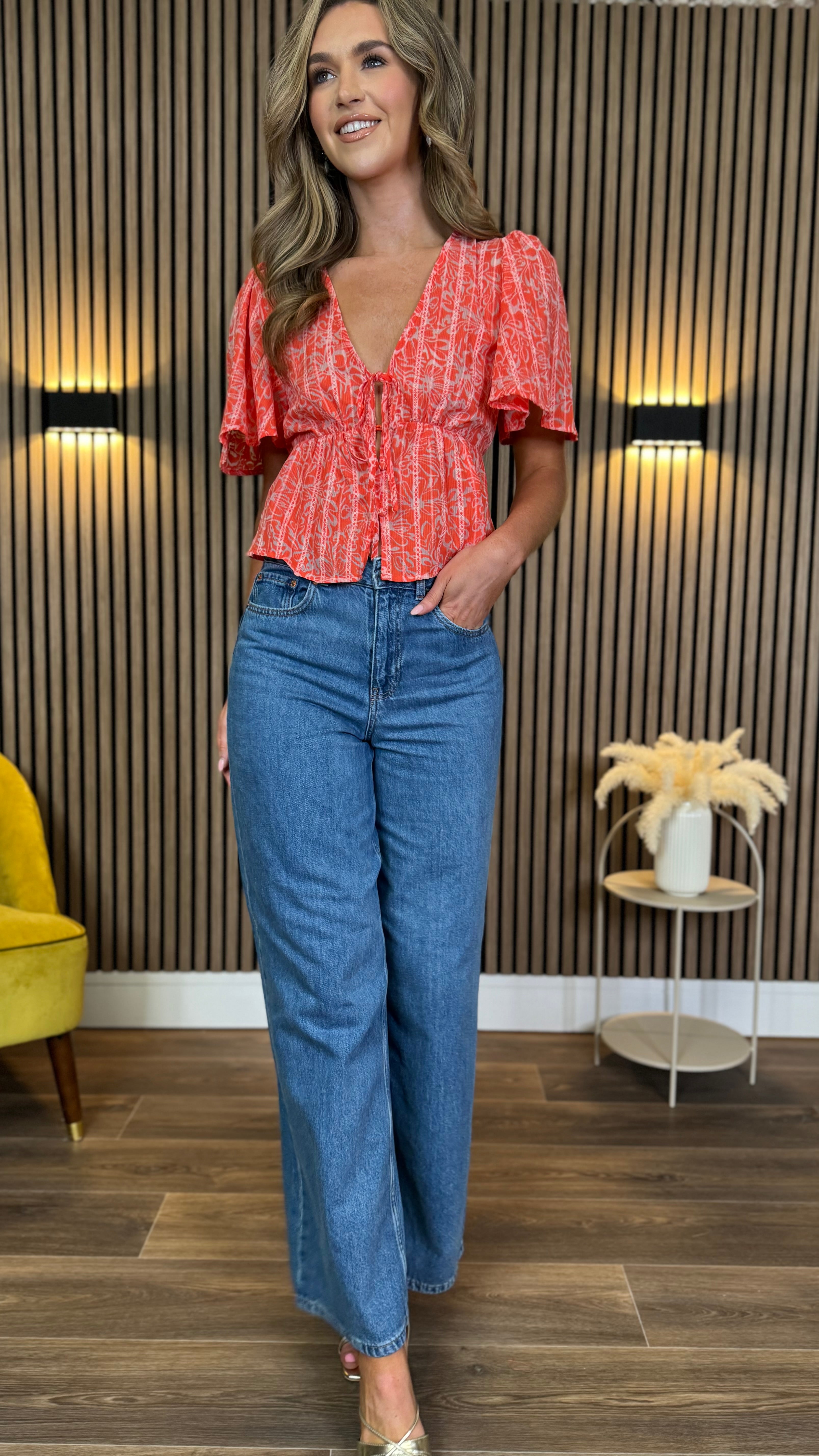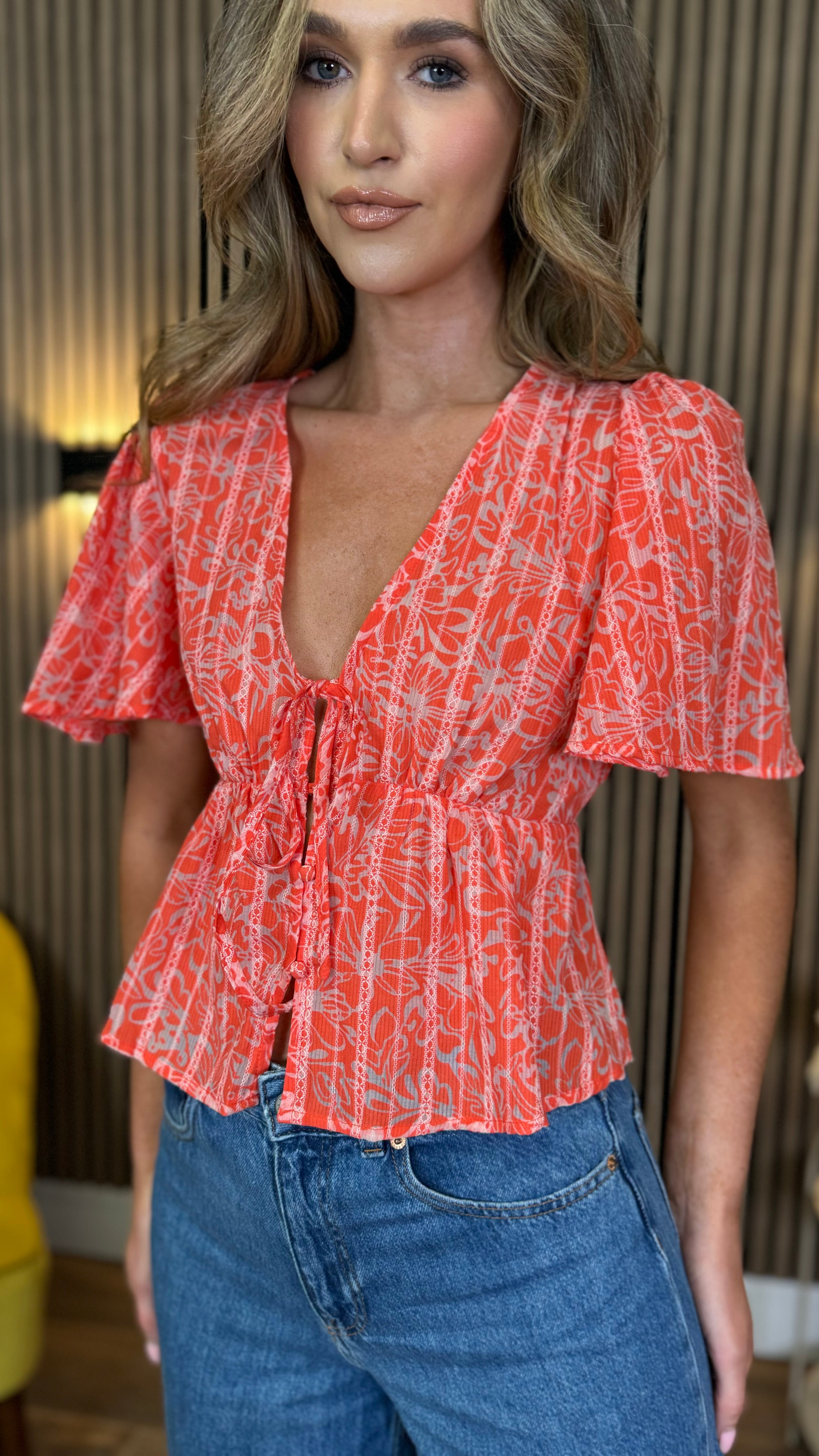 Brighten up your wardrobe with our Tessa Orange Floral Peplum Top! 🌸 This eye-catching piece features a flattering peplum silhouette that accentuates your waist while adding a flirty flare. 🧡 Perfect for sunny days or adding a pop of colour to your outfit! The vibrant orange floral pattern will have you turning heads wherever you go. ✨ Pair with jeans for a casual look or dress it up for special occasions! 💃