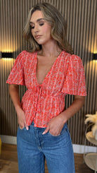 Tessa Orange Floral Peplum Top