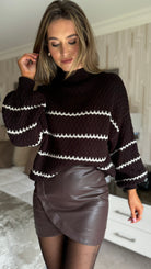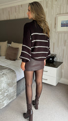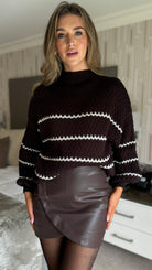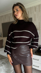 Bring cozy charm to your wardrobe with the Travis Brown & White Printed Jumper. Featuring ribbed cuffs and neckline for a snug fit, long sleeves to keep you warm, and a fun stripe pattern that adds a playful touch to any outfit. Perfect for layering or wearing solo, this jumper combines comfort and style effortlessly.