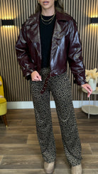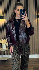 Ursula Burgundy Faux Leather Oversized Biker Jacket