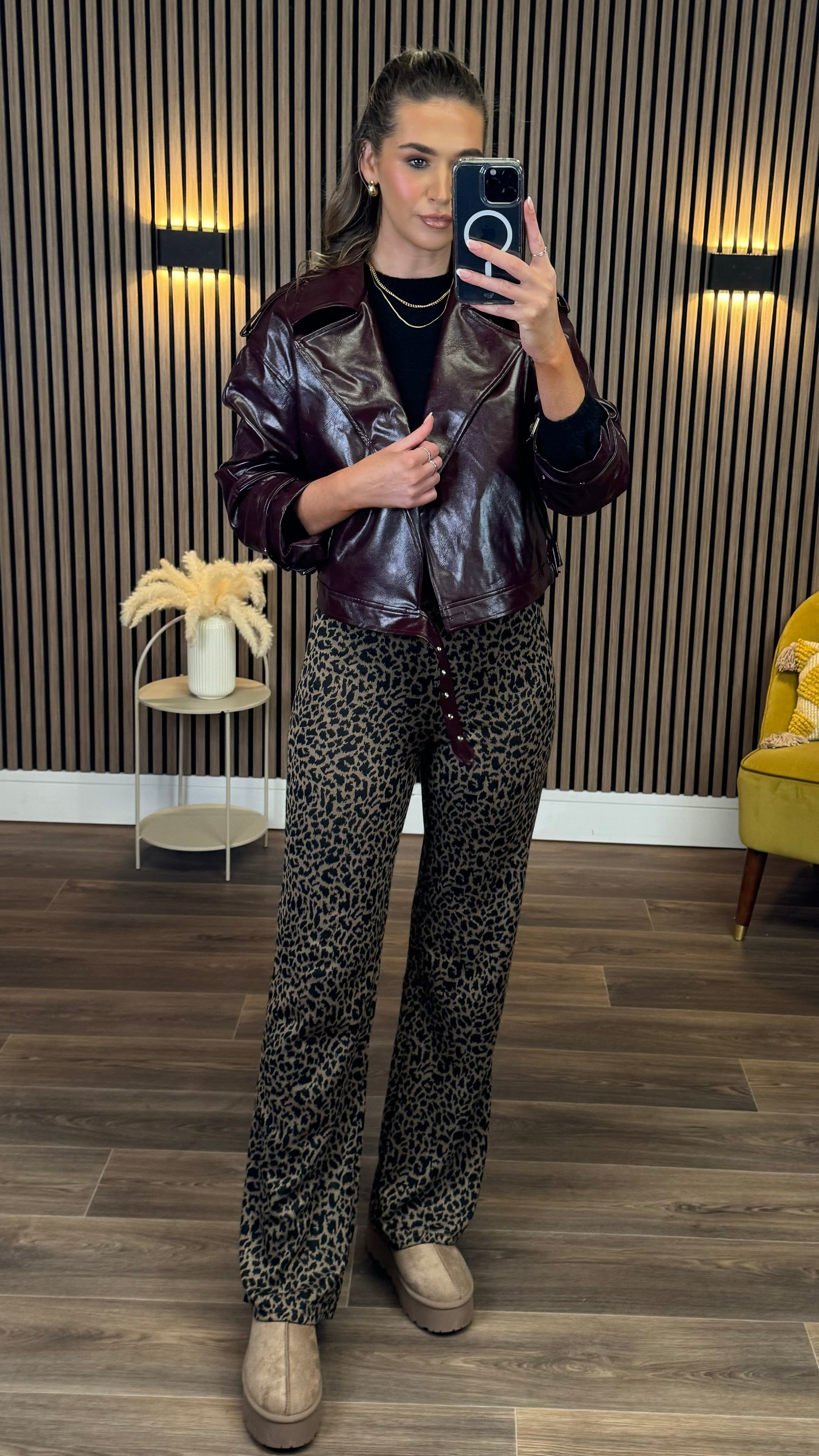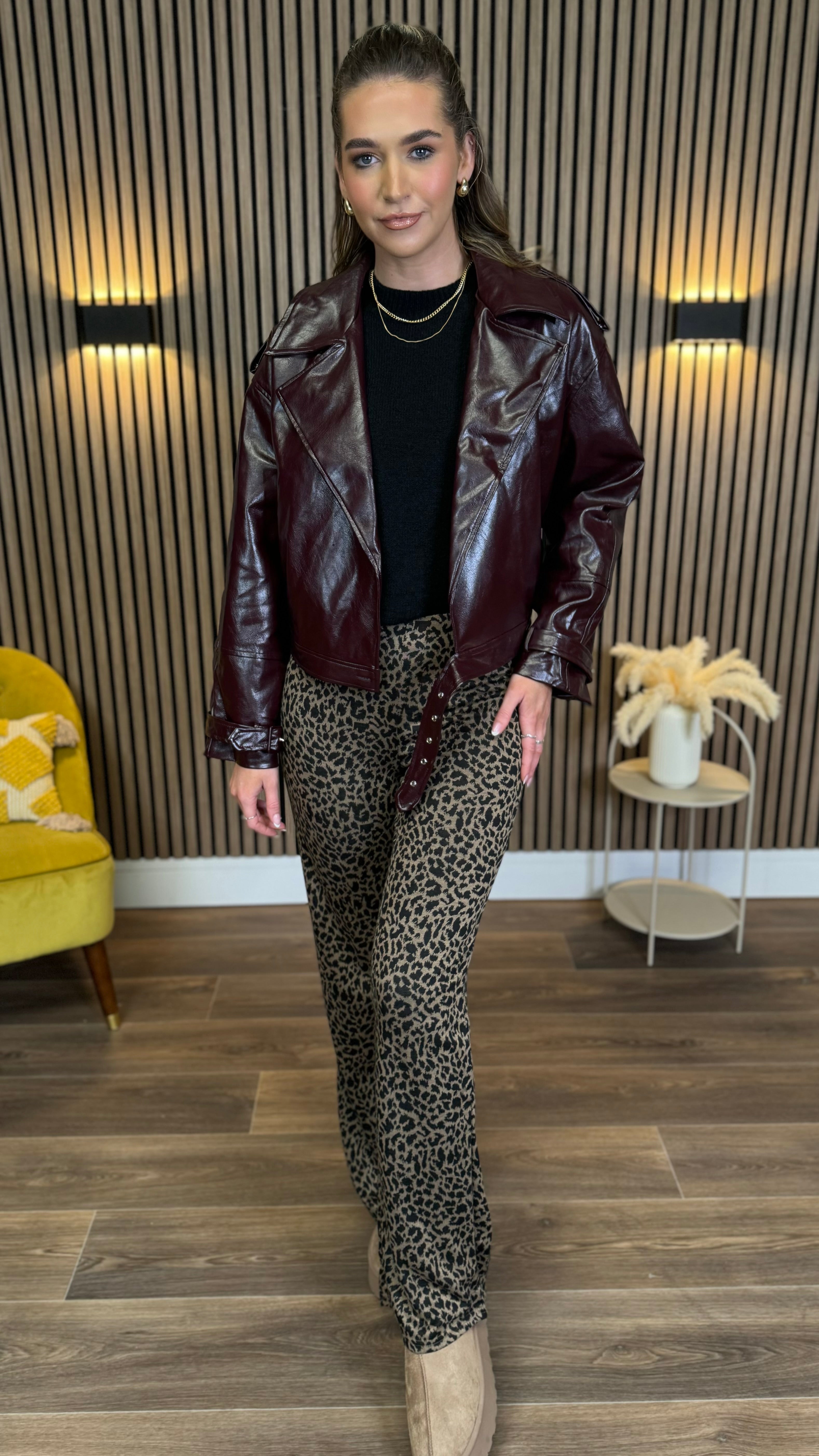 Make a bold statement with the Ursula Burgundy Faux Leather Oversized Biker Jacket. Featuring shiny silver hardware and a cool collar detail, this jacket combines edgy style with a comfy oversized fit. Crafted from smooth faux leather, it’s perfect for adding a touch of rebellious flair to any outfit while keeping you cozy.