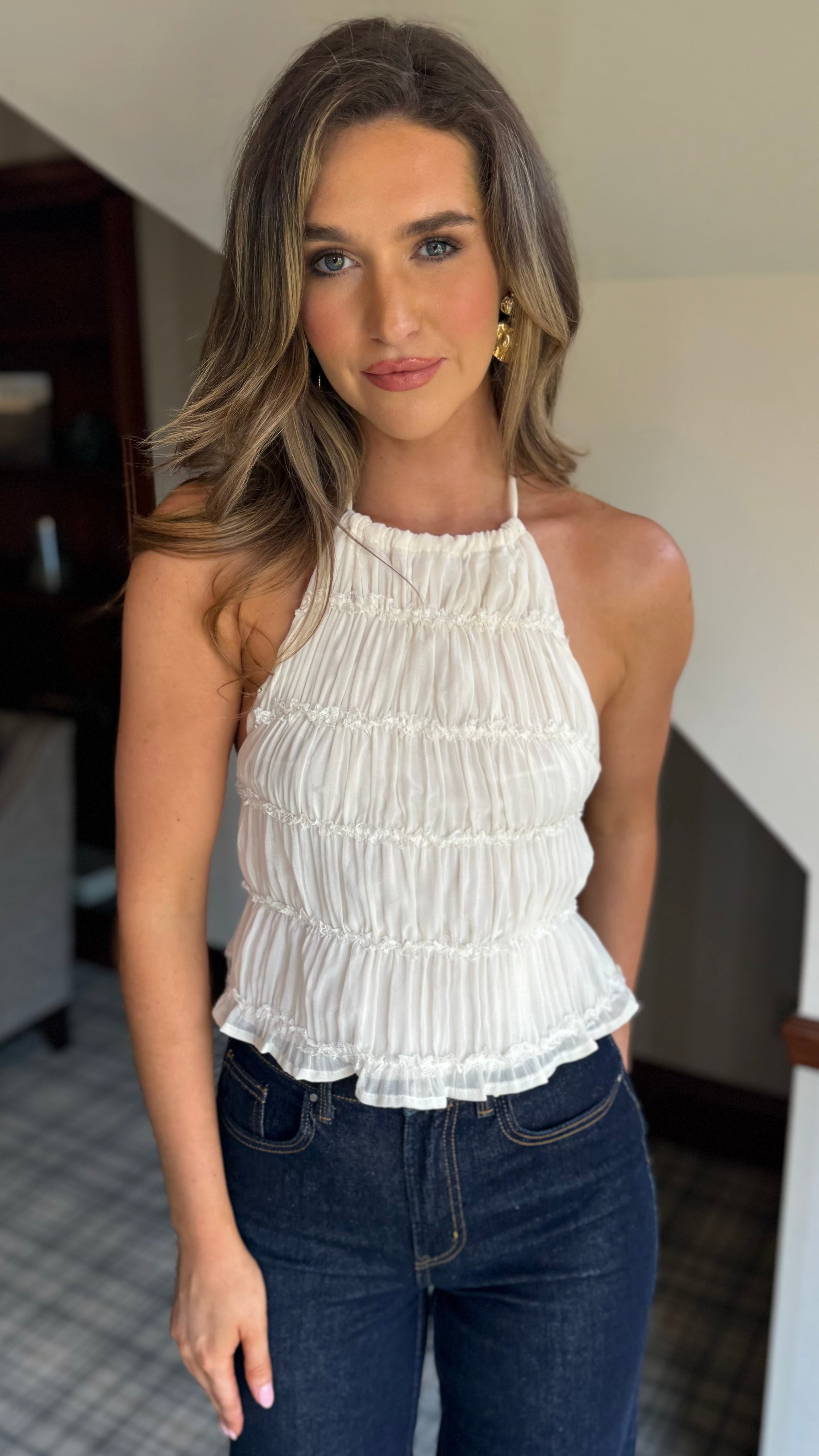 Vera Off-White Ruched Backless Cami Tie Detail Top