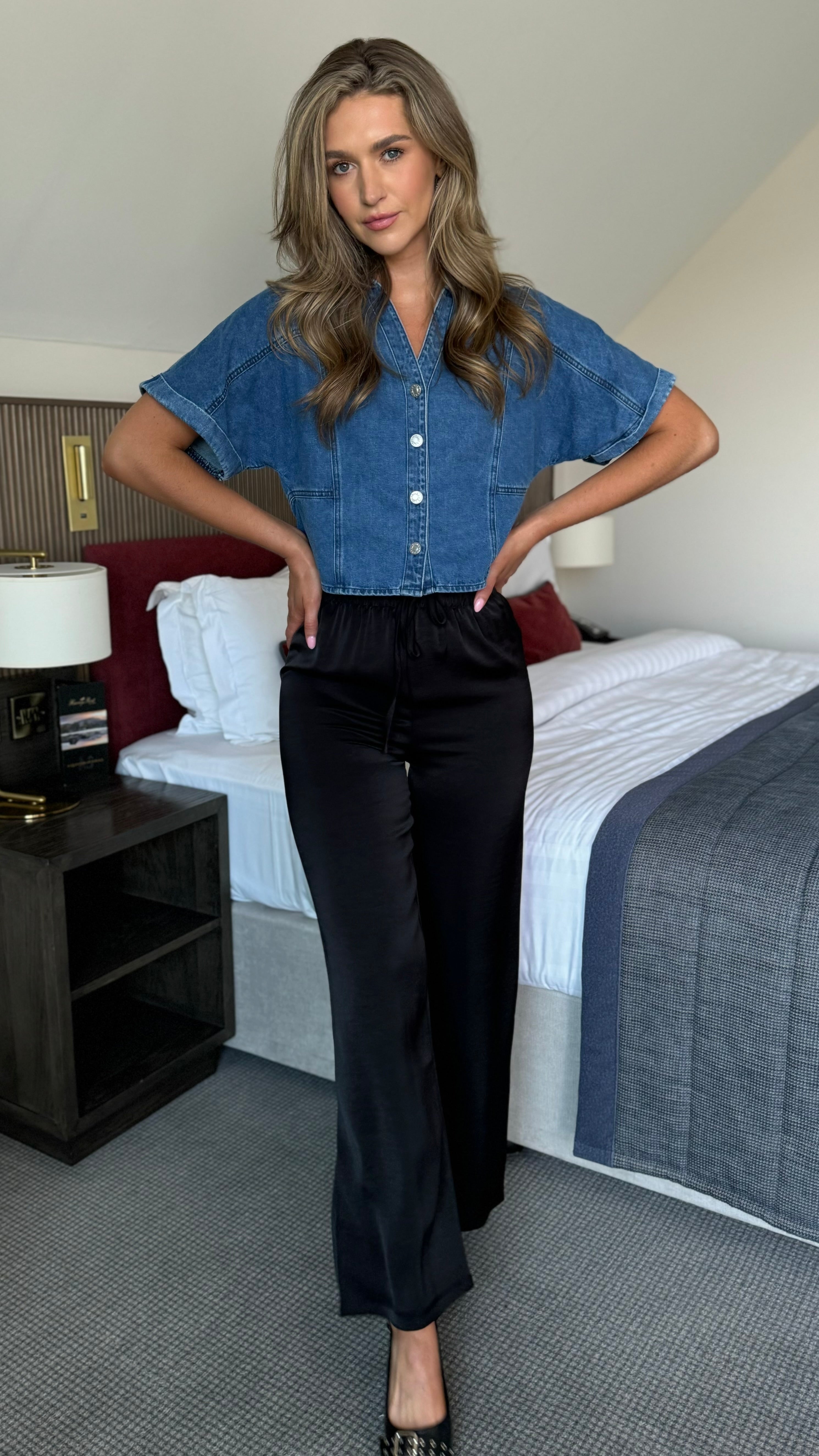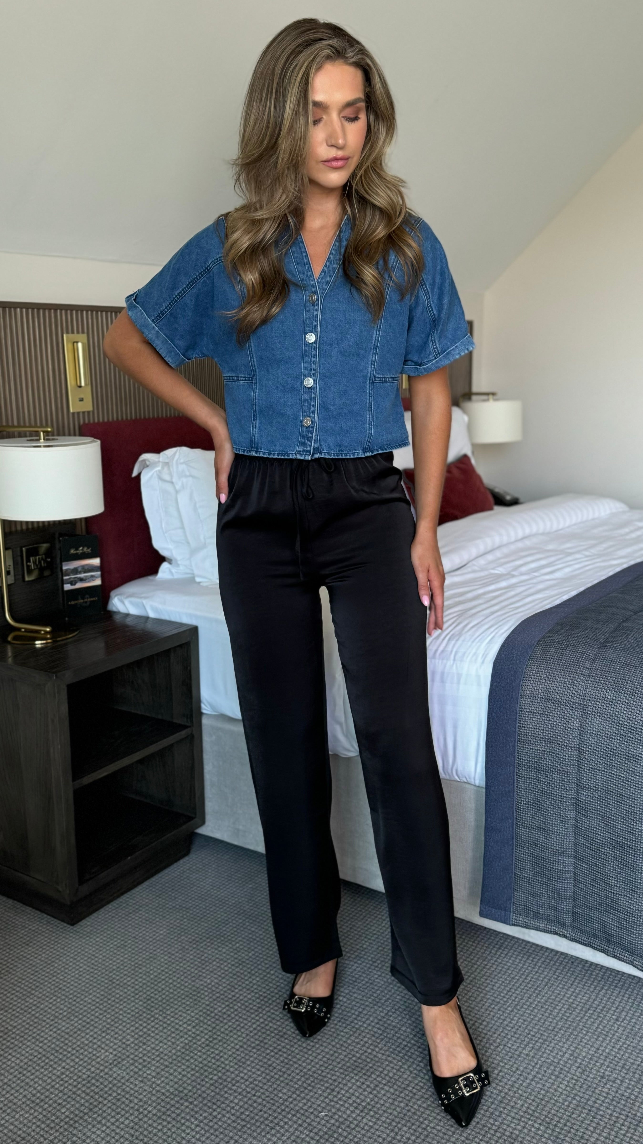 Get ready to strut in style with the Walker Black Wide Leg Trousers! These trendy trousers feature a drawstring and elasticated waist for a comfortable fit. Perfect for any casual or dressy occasion, these pants will be your new go-to! 💃🏼🔥