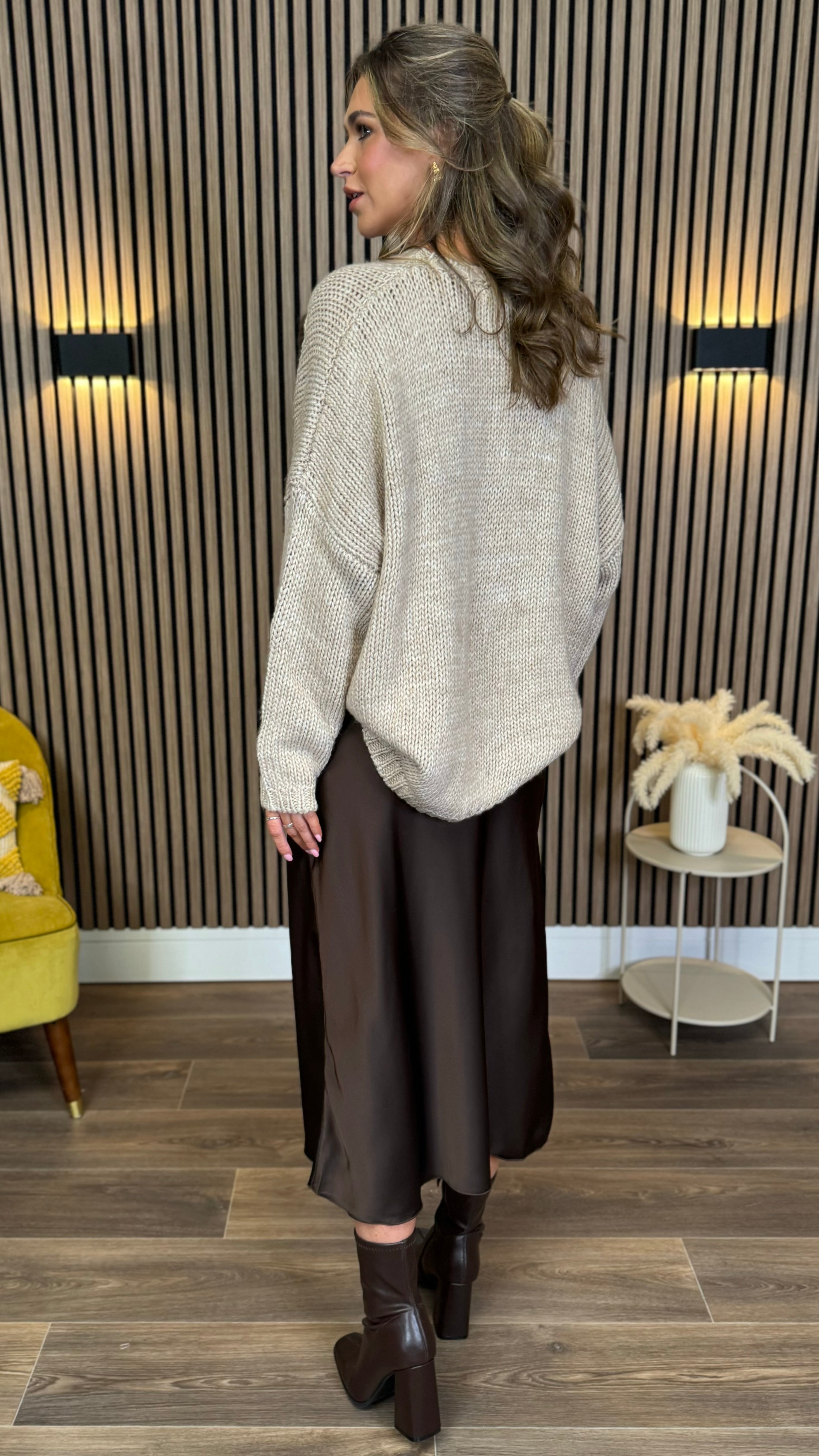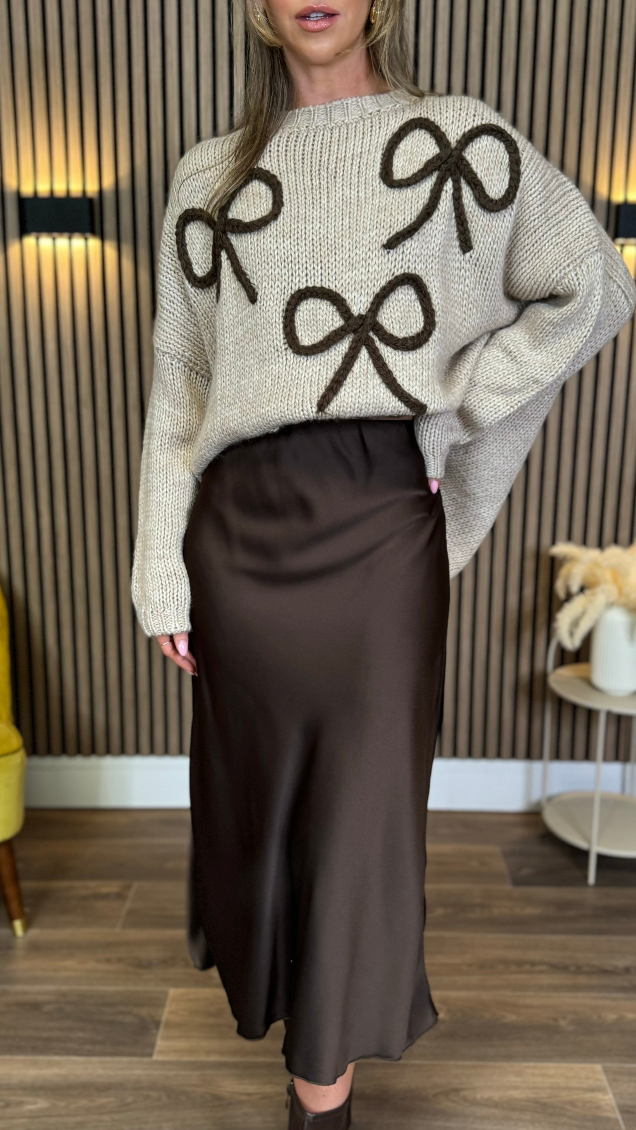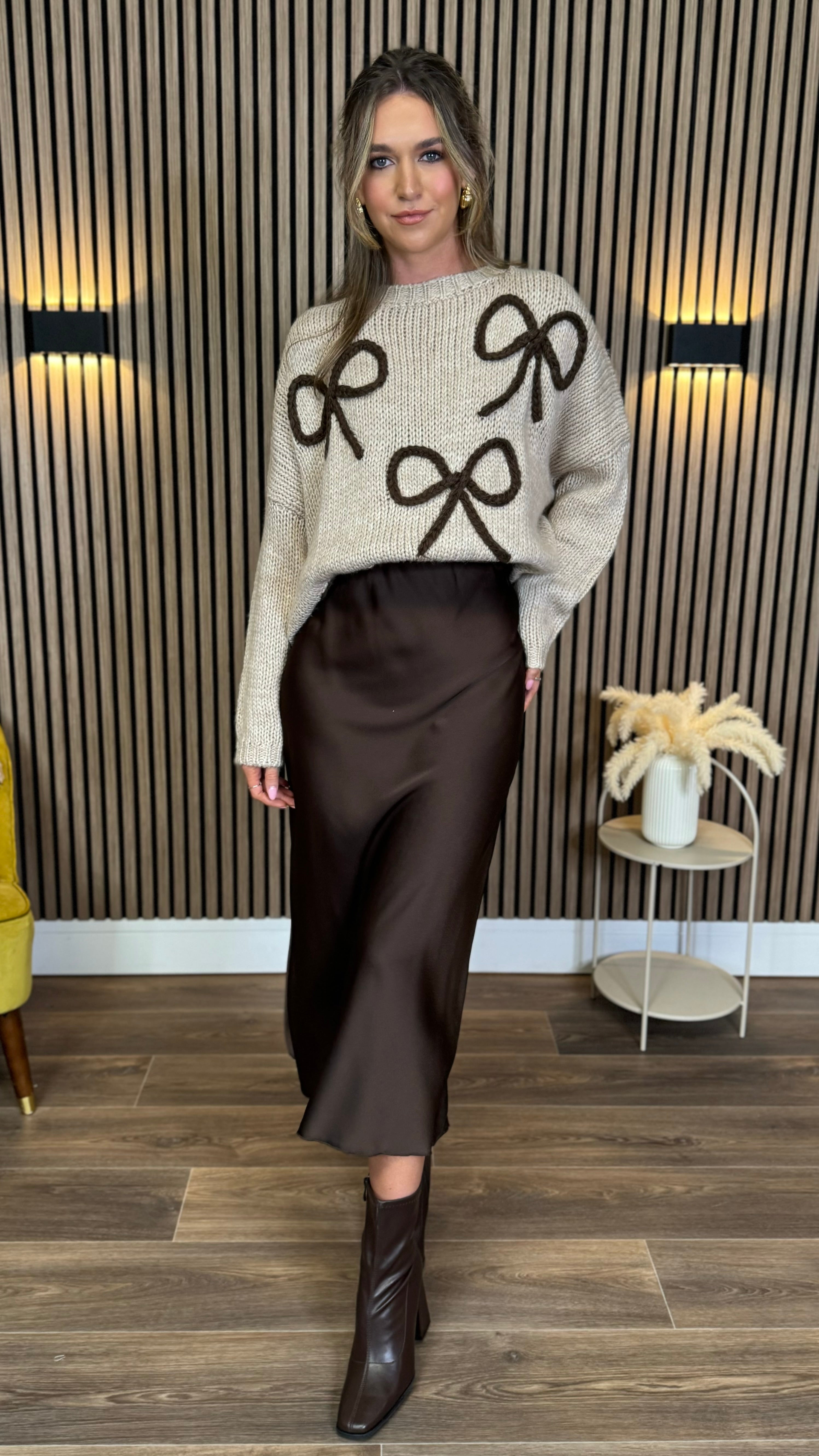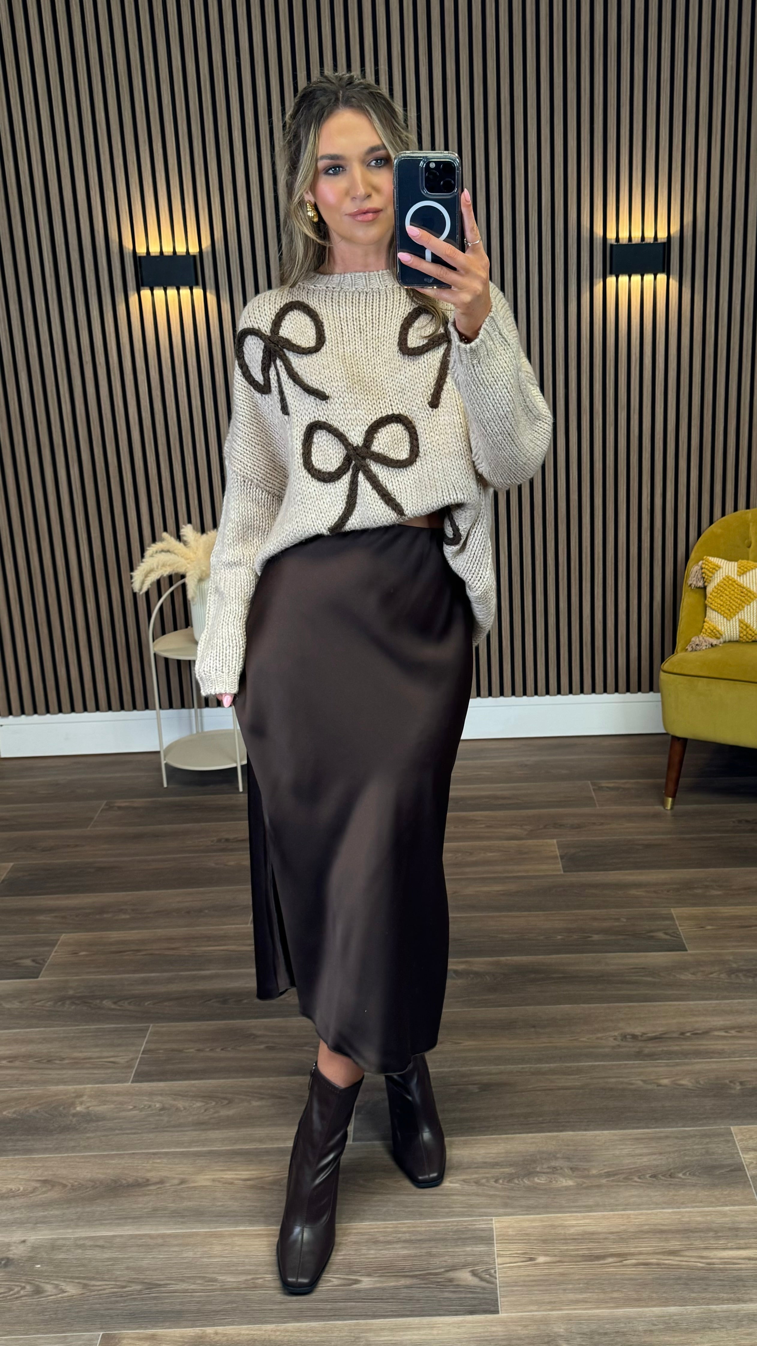 Blake Dark Chocolate Brown Satin Slip Skirt