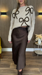 Slip into effortless elegance with the Blake Dark Chocolate Brown Satin Slip Skirt. Made from lightweight satin, it glides smoothly over your skin, while the elasticated waistband offers a comfy, flattering fit. Perfect for adding a classic touch to any outfit with a hint of playful charm.