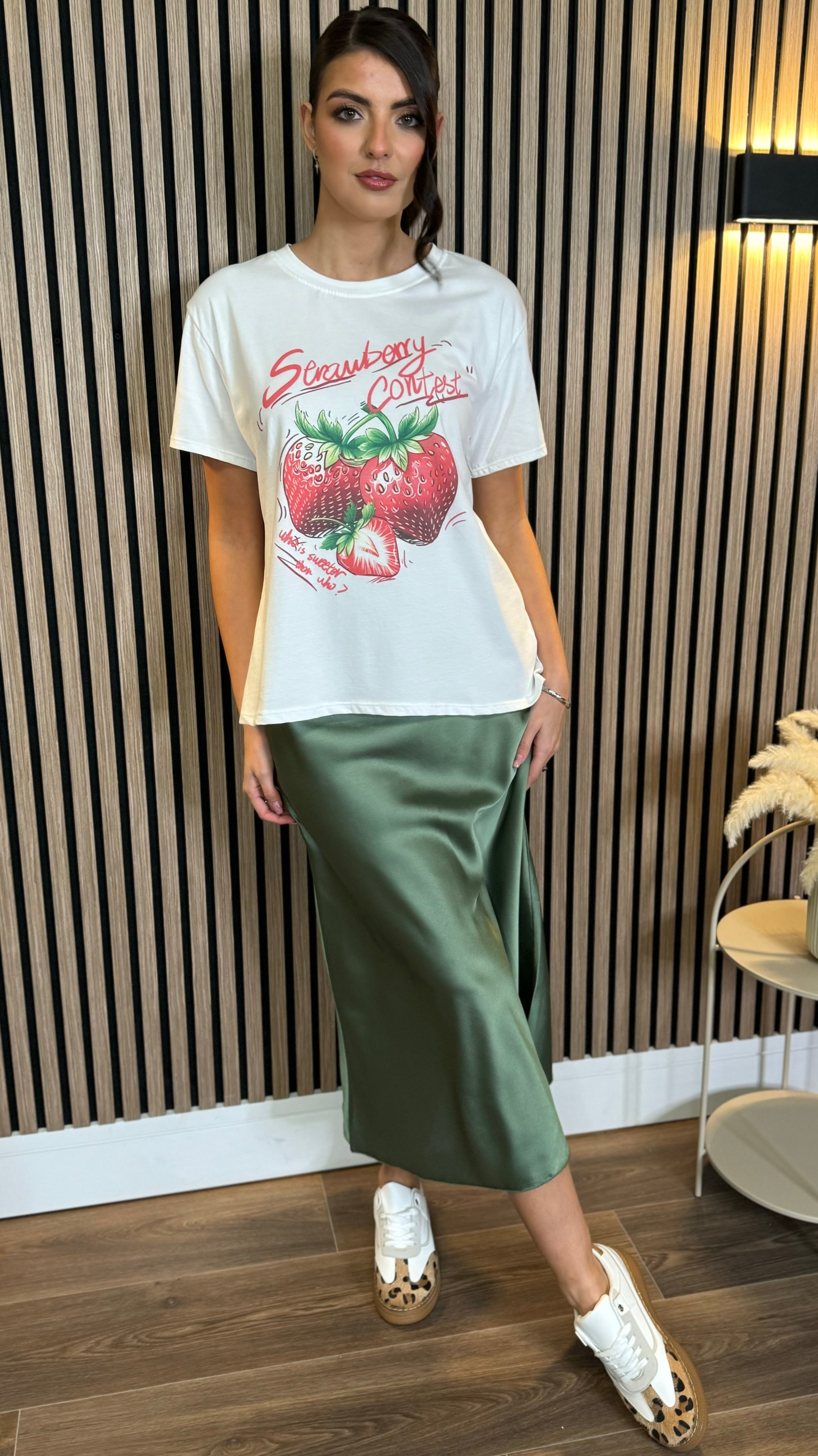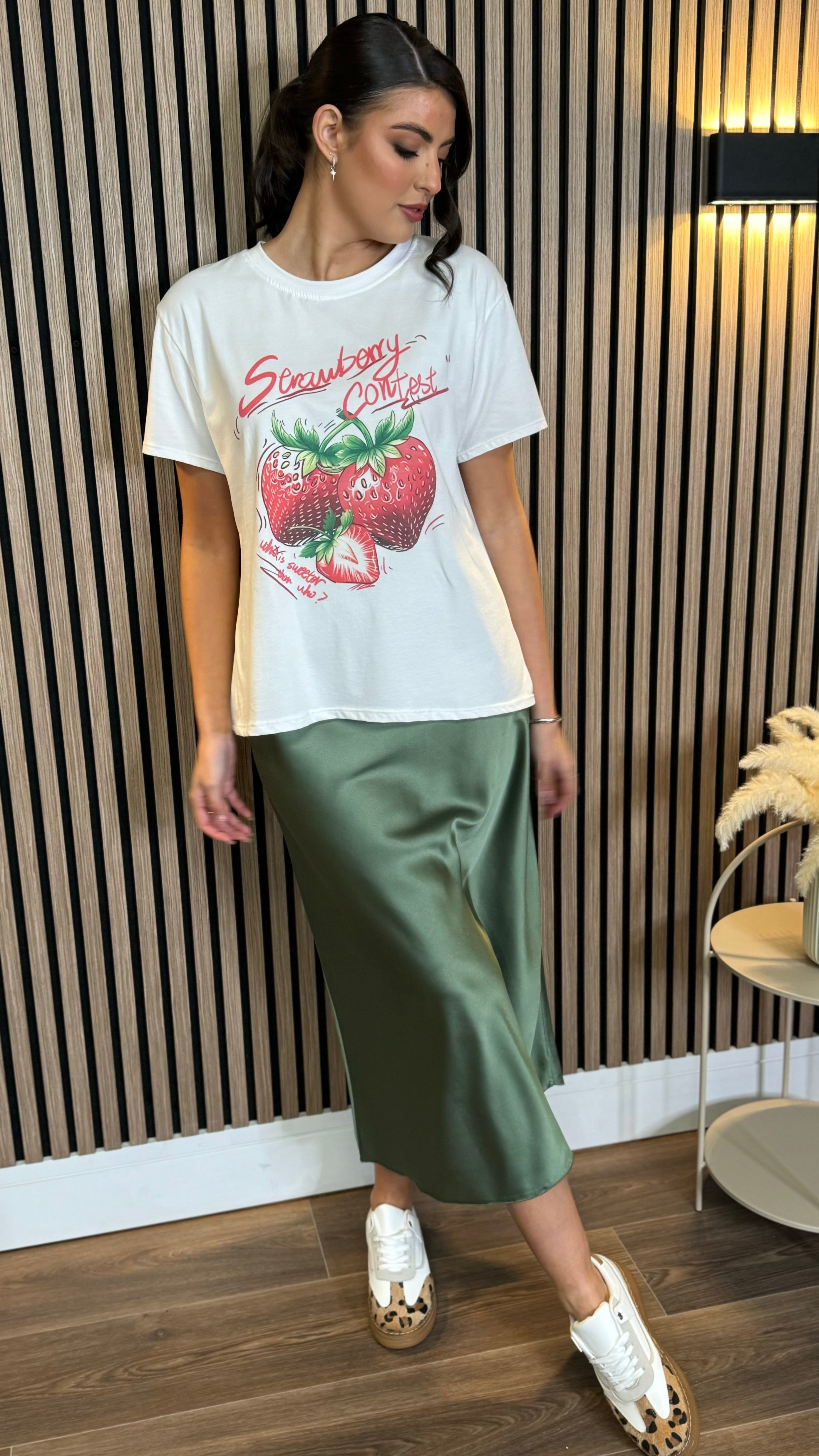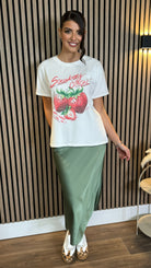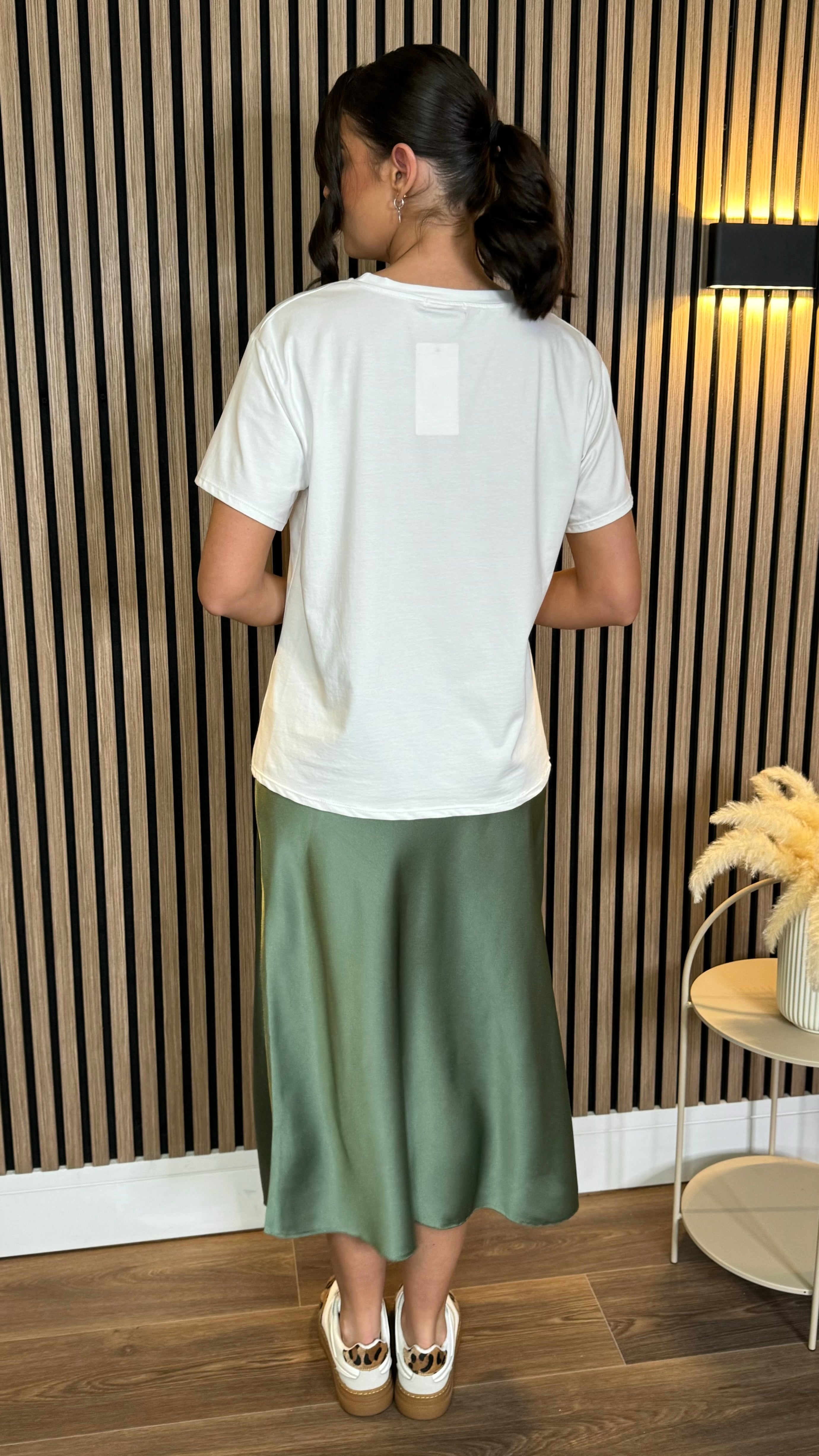 Make an impact in this stunning Yaella Khaki Midi Skirt. Crafted with a sleek, khaki fabric, this midi skirt adds a sophisticated edge to any look. Show off your style and confidence with this eye-catching piece! 💃🏻