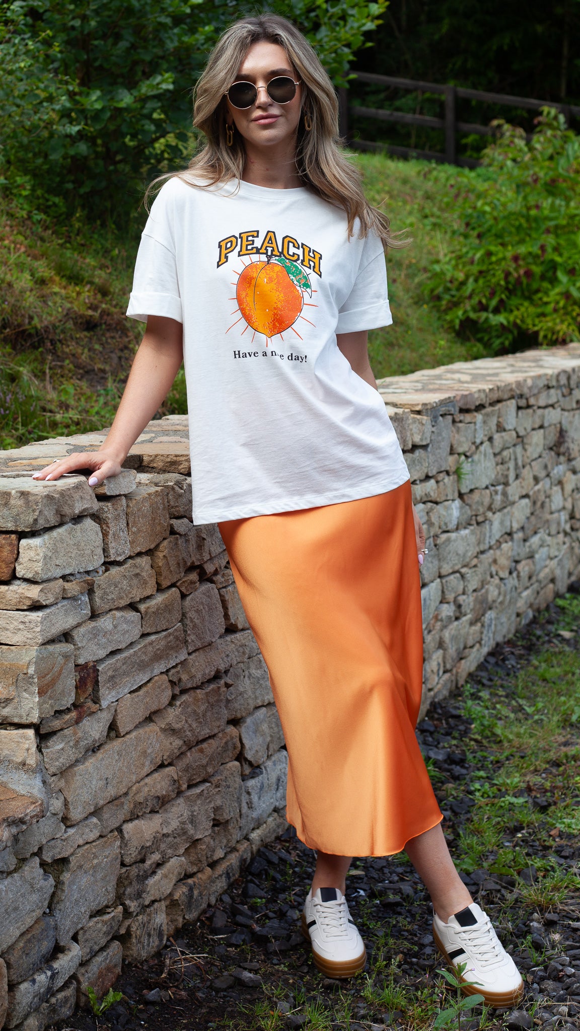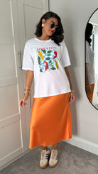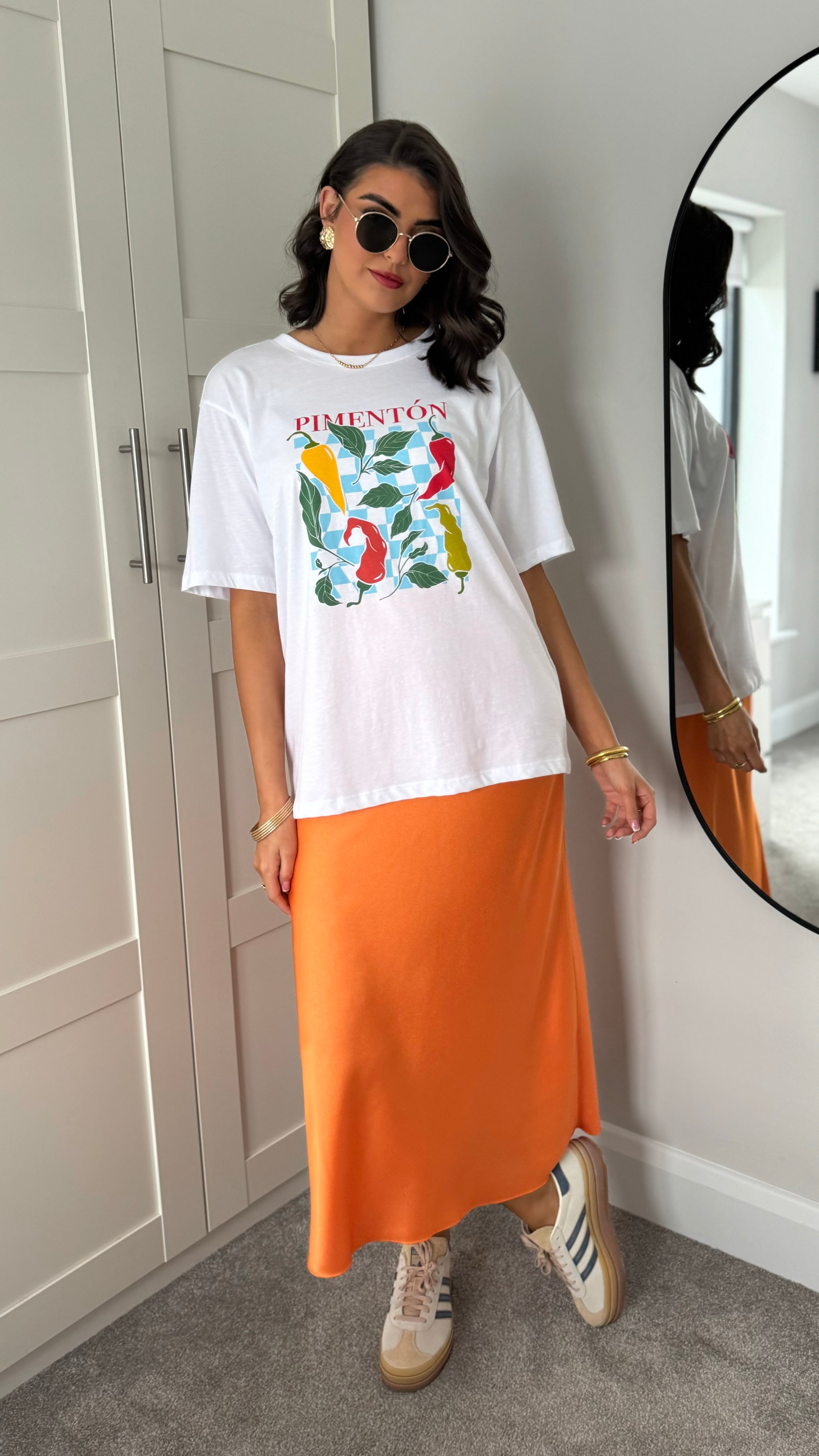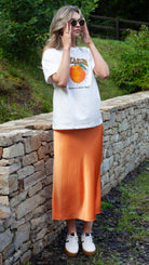 Make an impact in this stunning Yaella Orange Midi Skirt. Crafted with a sleek, orange fabric, this midi skirt adds a sophisticated edge to any look. Show off your style and confidence with this eye-catching piece! 💃🏻
