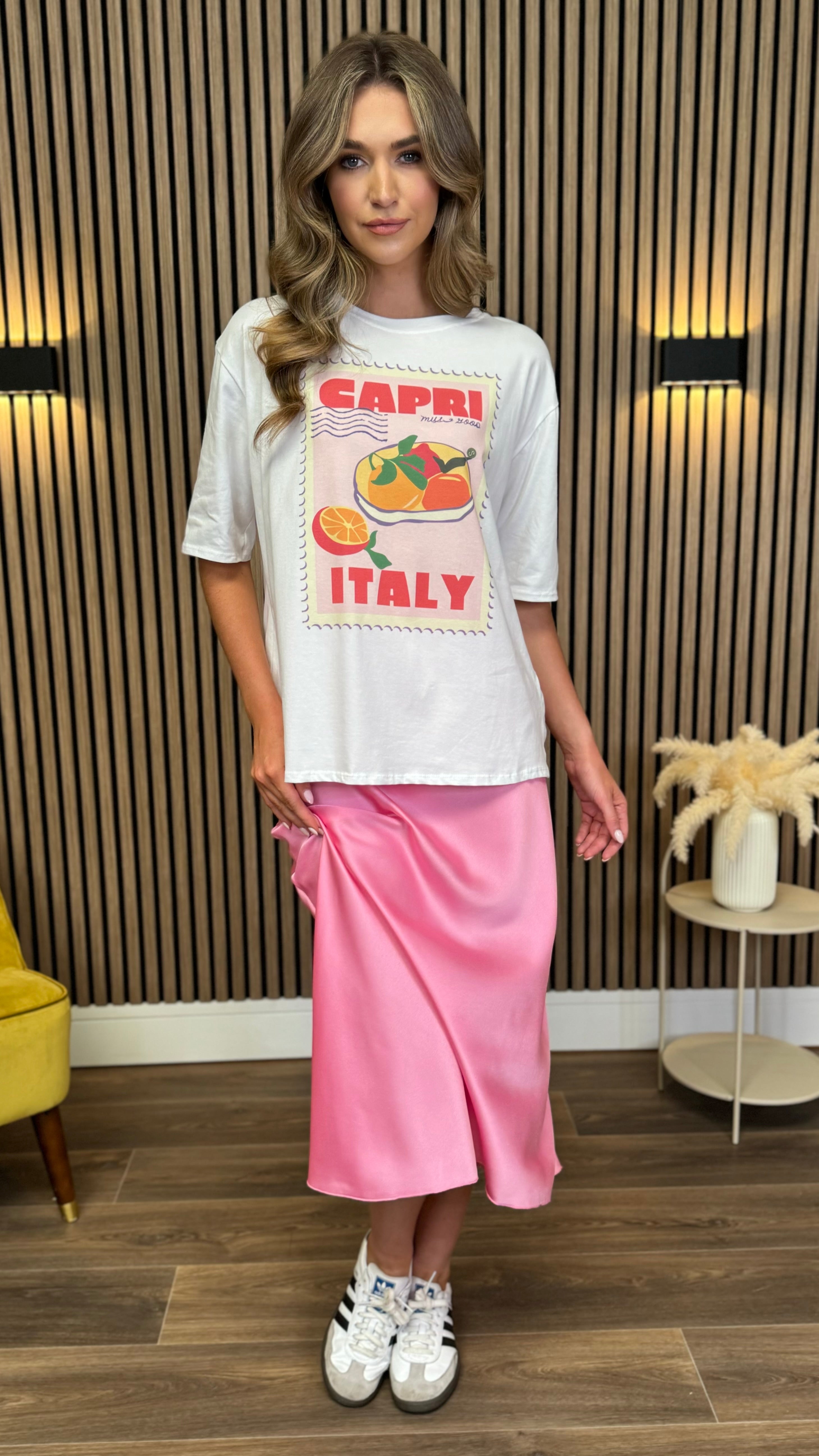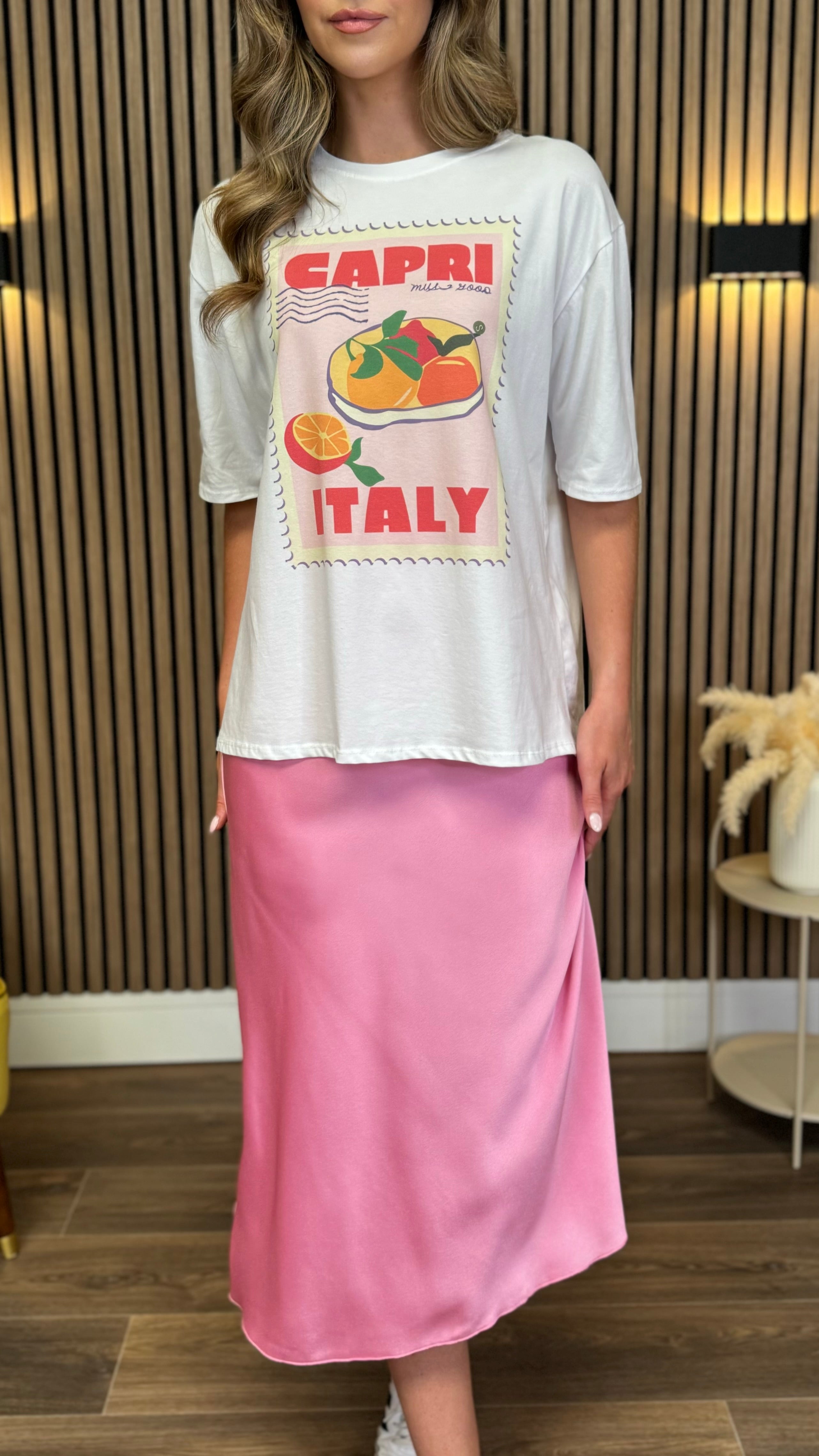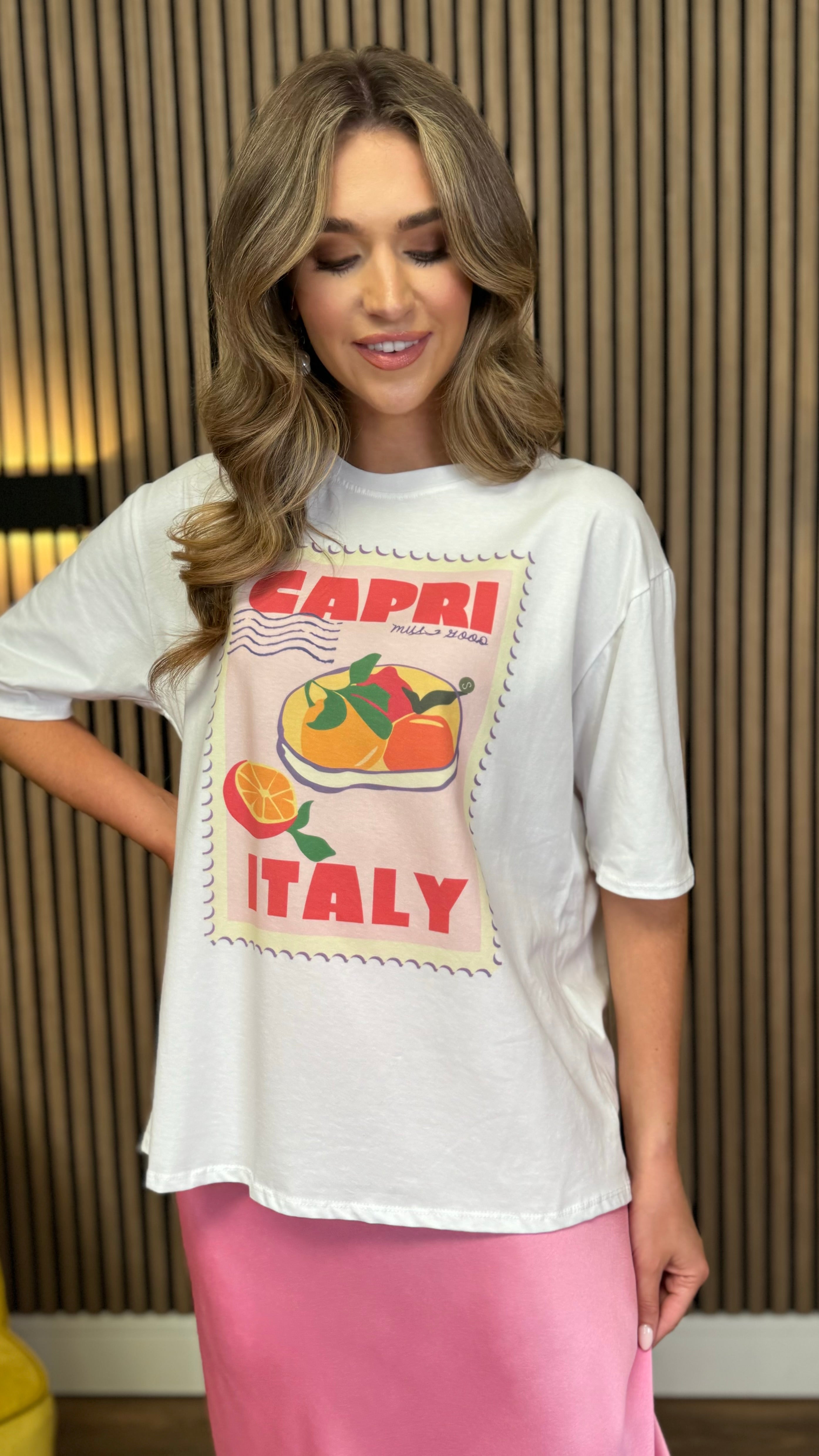 Zaya White Graphic 'Capri Italy' Printed T-Shirt