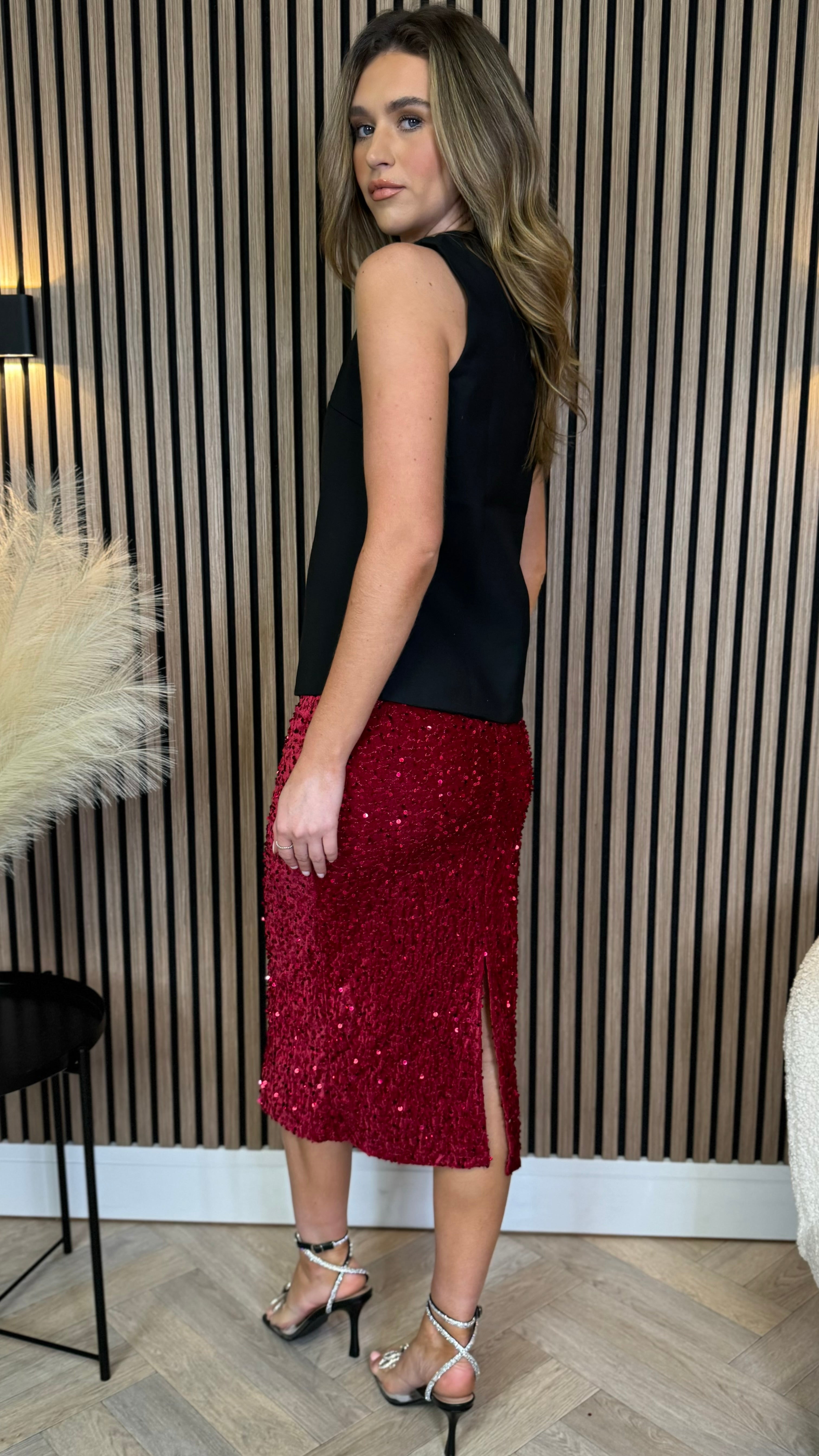 Expand your wardrobe with the Sarena Black Split Detail Waistcoat. This stylish piece features a unique split detail design, adding a touch of playfulness to your outfit. Perfect for layering over any top, this waistcoat is versatile and trendy. You'll never want to take it off! 😉