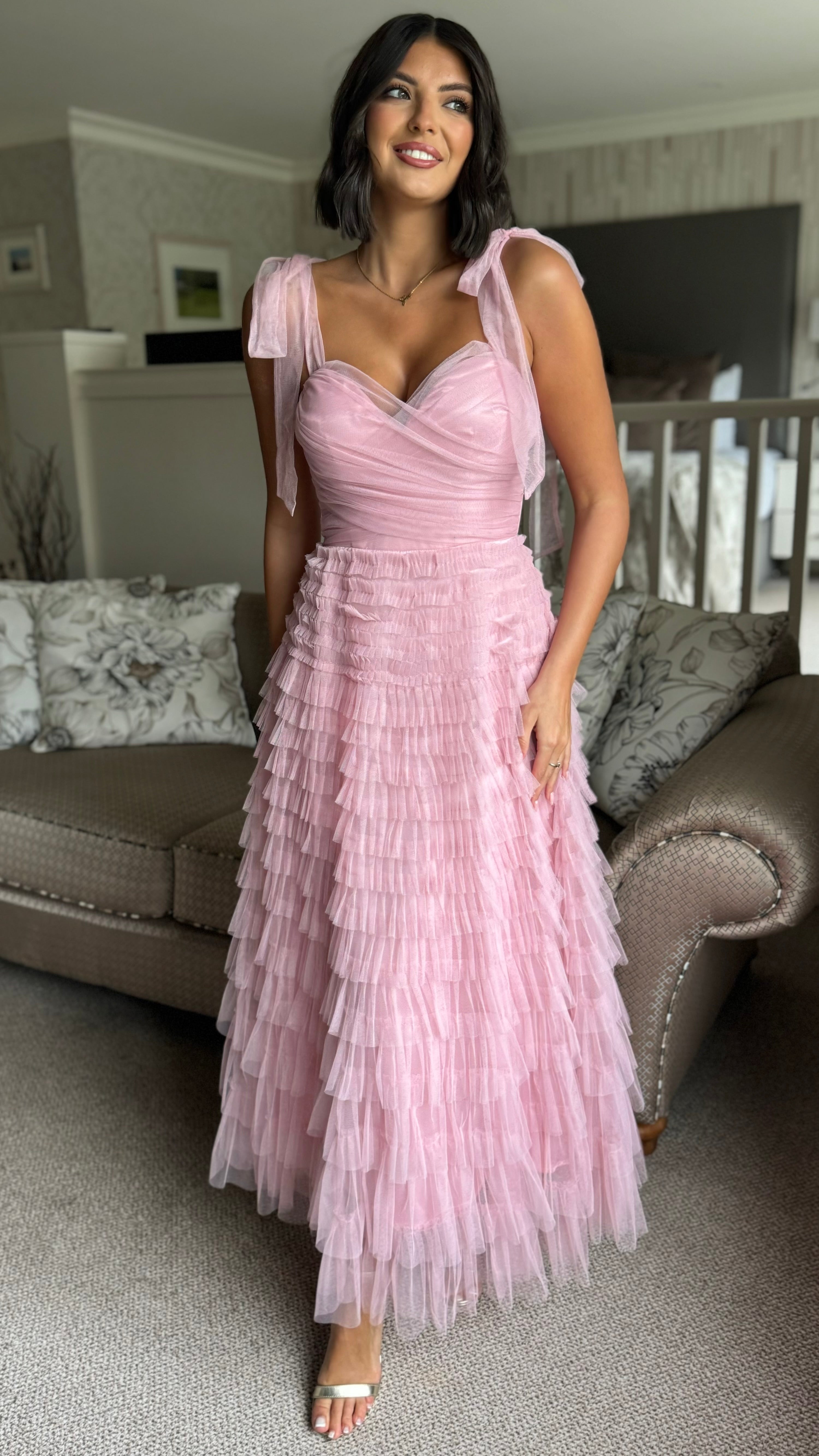 Layla Rose Pink Tulle Sweetheart Neckline Midi Dress