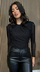 Amelie Black Diamante Long Sleeve Mesh Bodysuit