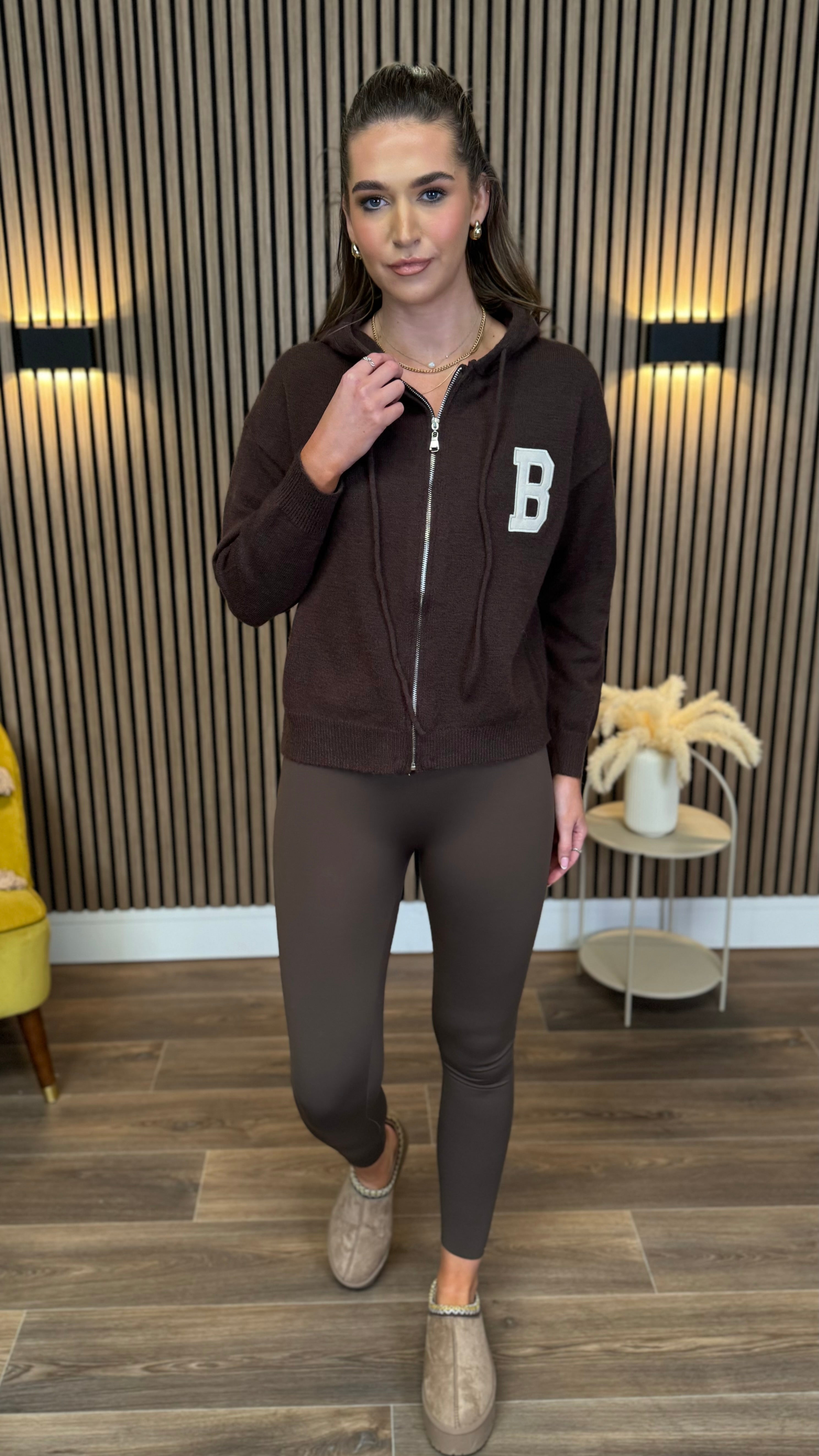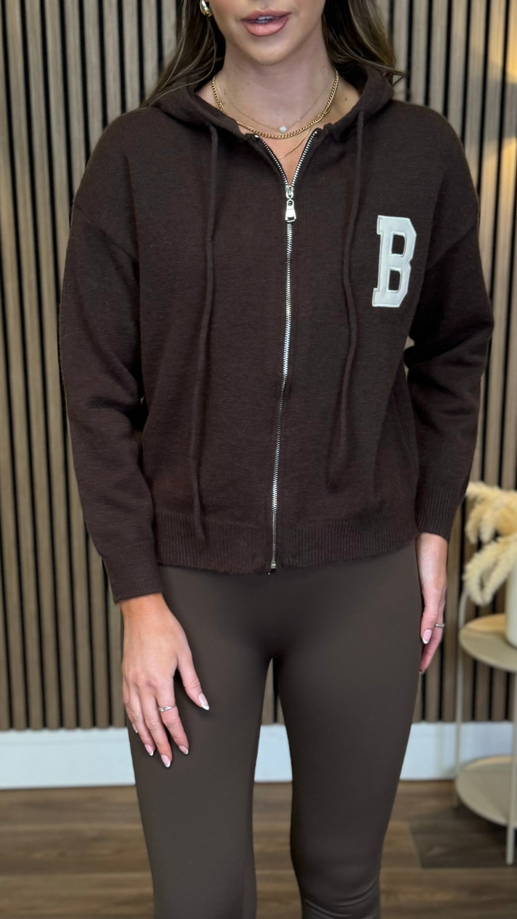 Meet the Ash Dark Brown 'Brooklyn' Knitted Hoodie, your new go-to for cozy days. This zip-up hoodie features snug knitted fabric and adjustable drawstrings, perfect for wrapping up warm with a playful twist. Easy to layer and effortlessly stylish, it’s ready to zip into your everyday adventures.