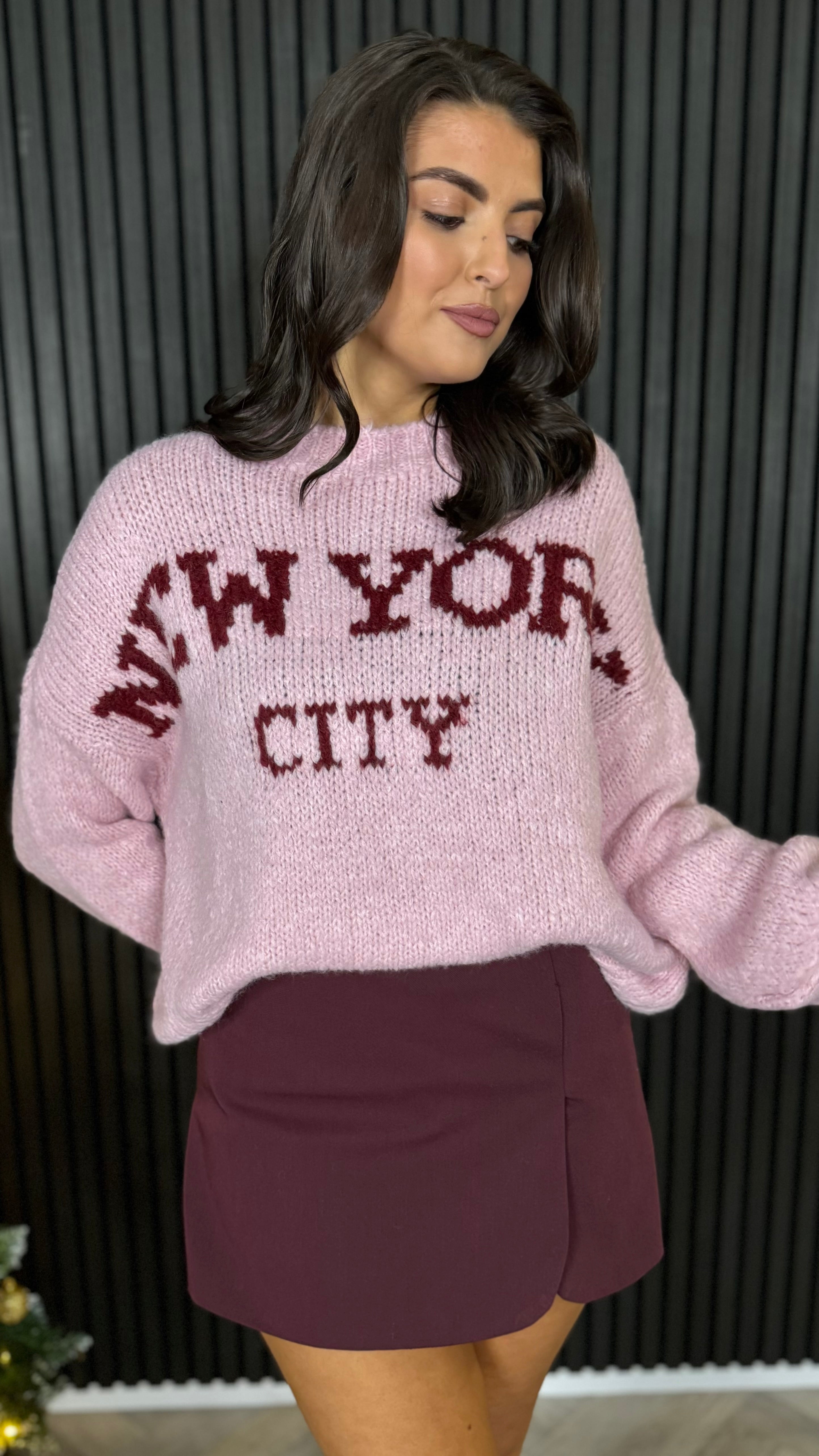 Wrap yourself in big-city vibes with this oversized jumper that's basically a hug in fabric form. The soft, cosy knit features a round ribbed neckline, ribbed cuffs, and ribbed hem that keep everything snug while the relaxed fit lets you lounge in style. Perfect for those days when you want to feel effortlessly cool without trying too hard. Available in a gorgeous pink and burgundy colourway that screams New York attitude.