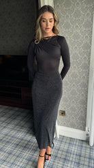 Embrace chic comfort with the Deedee Black Bodysuit, featuring charming ruched detail and a soft, slinky fabric that moves with you. Long sleeves add a touch of elegance, while the playful gold buckle clasp fastening brings just the right amount of sparkle to your look.