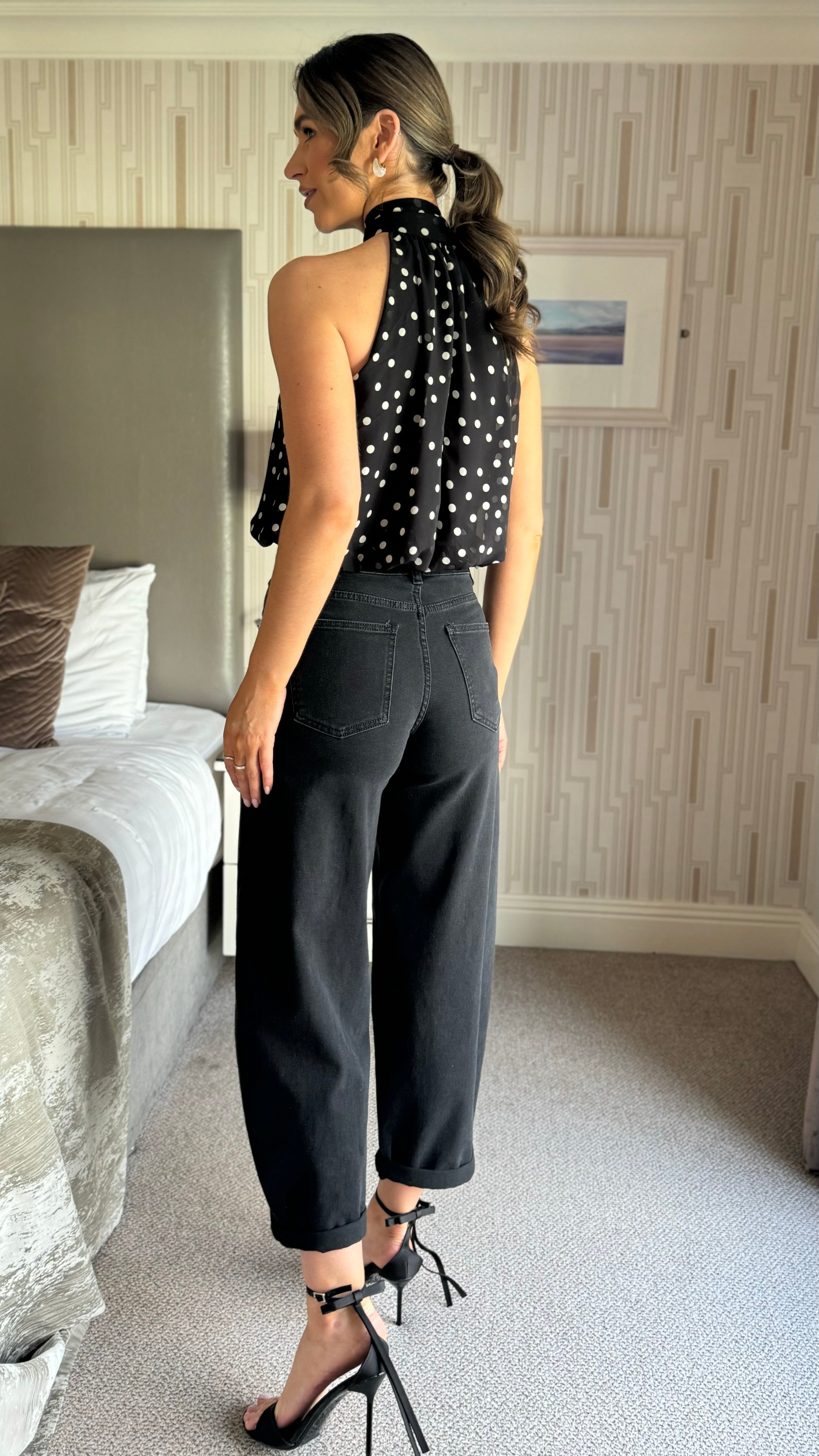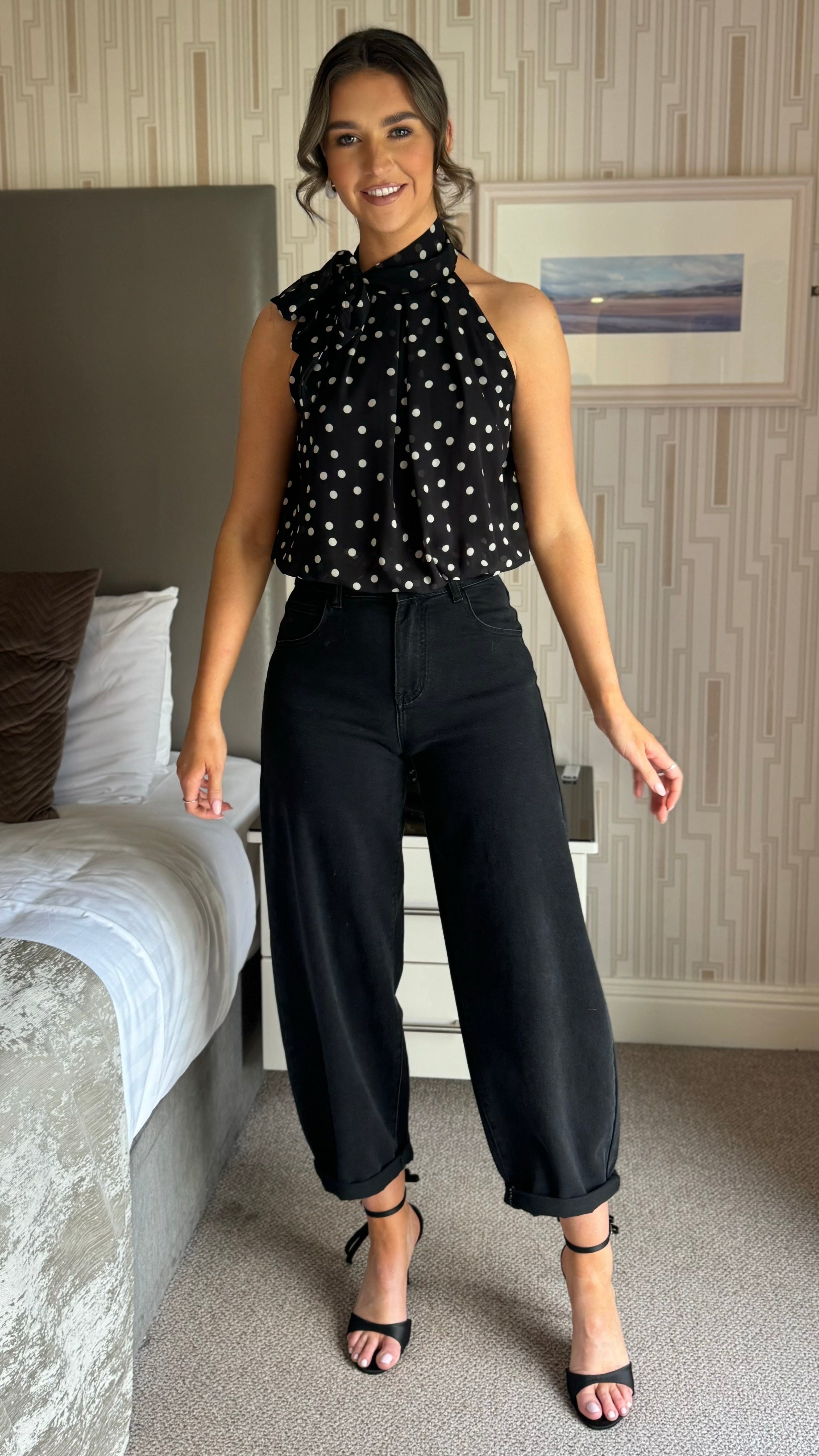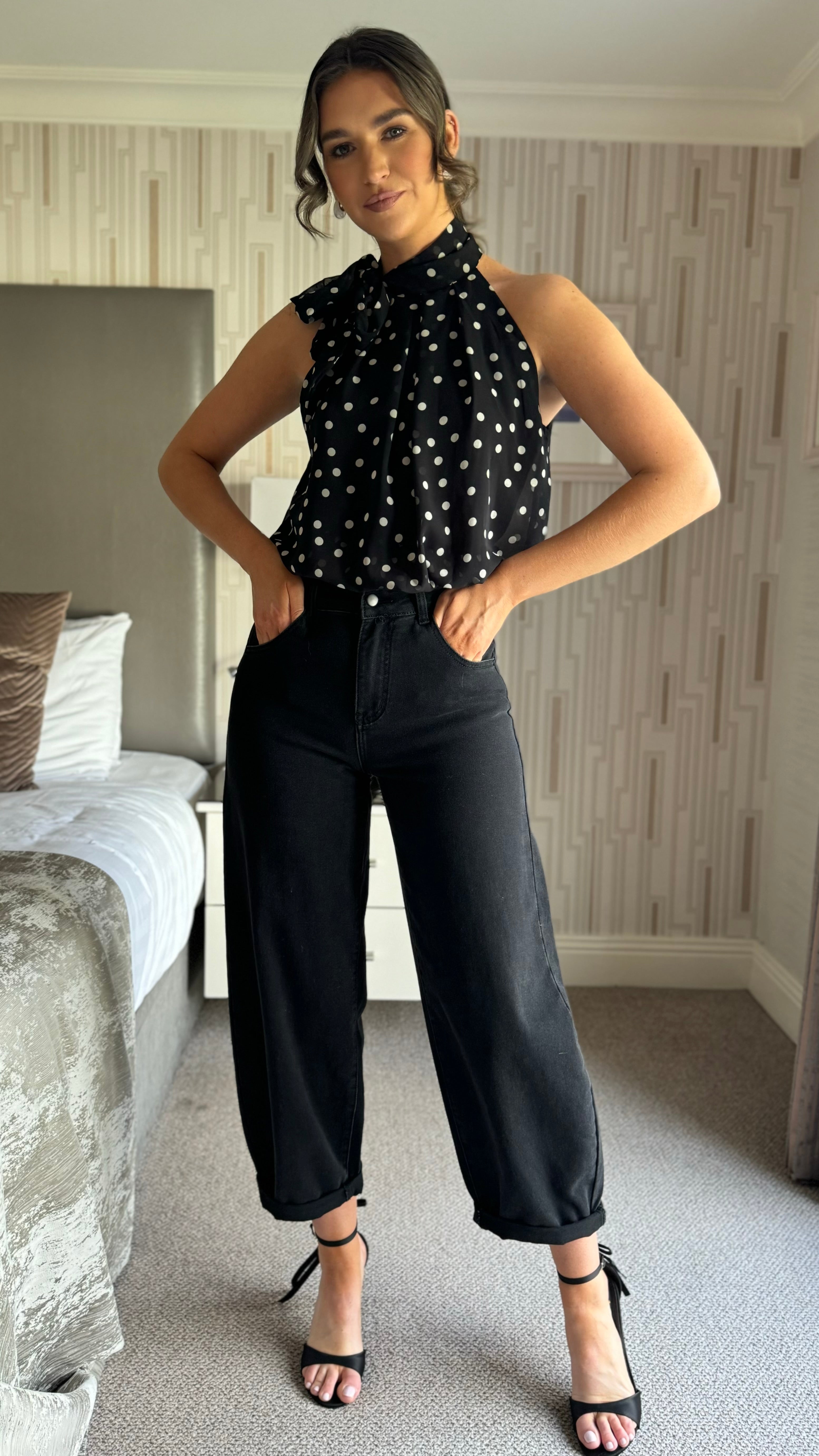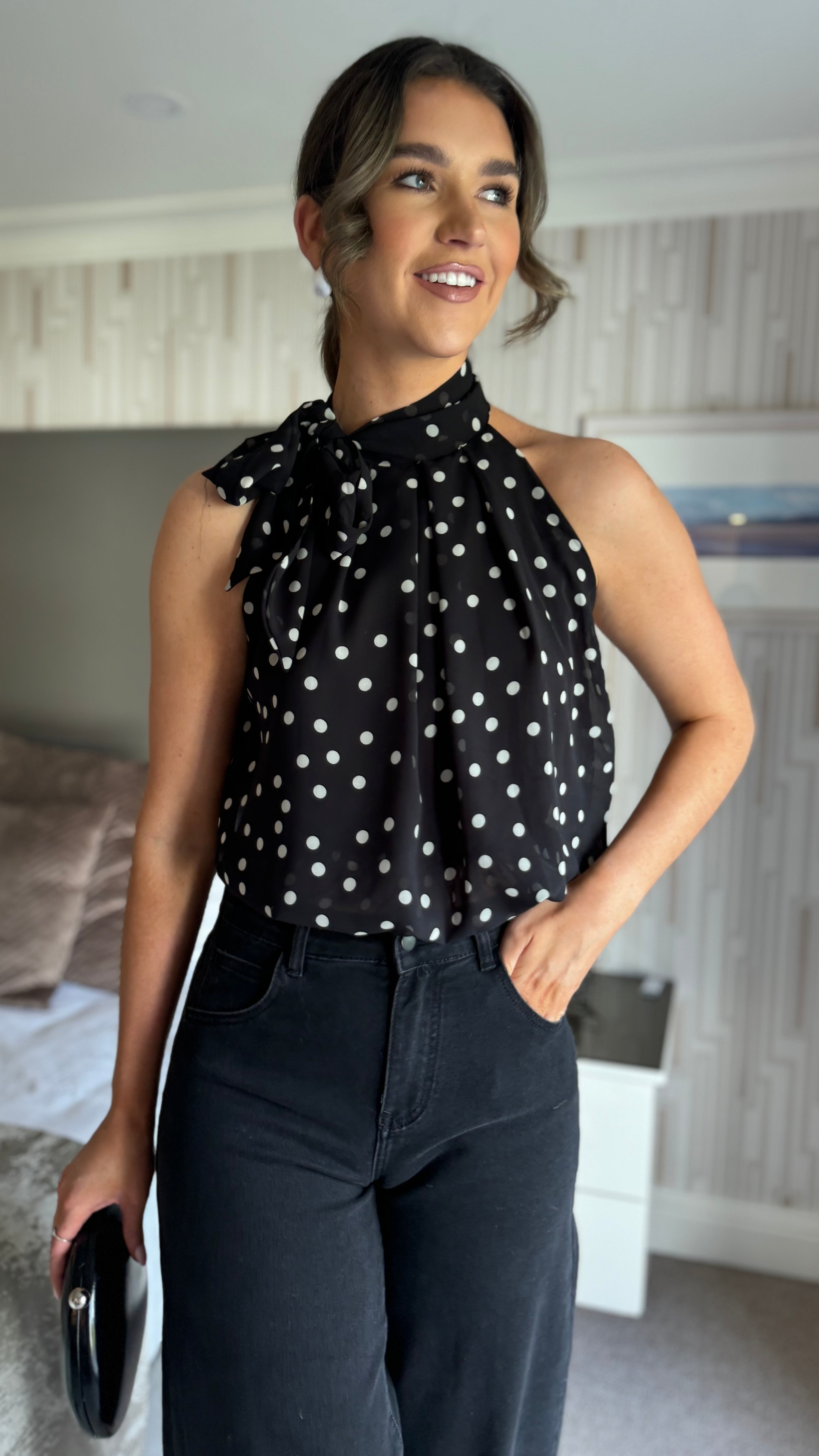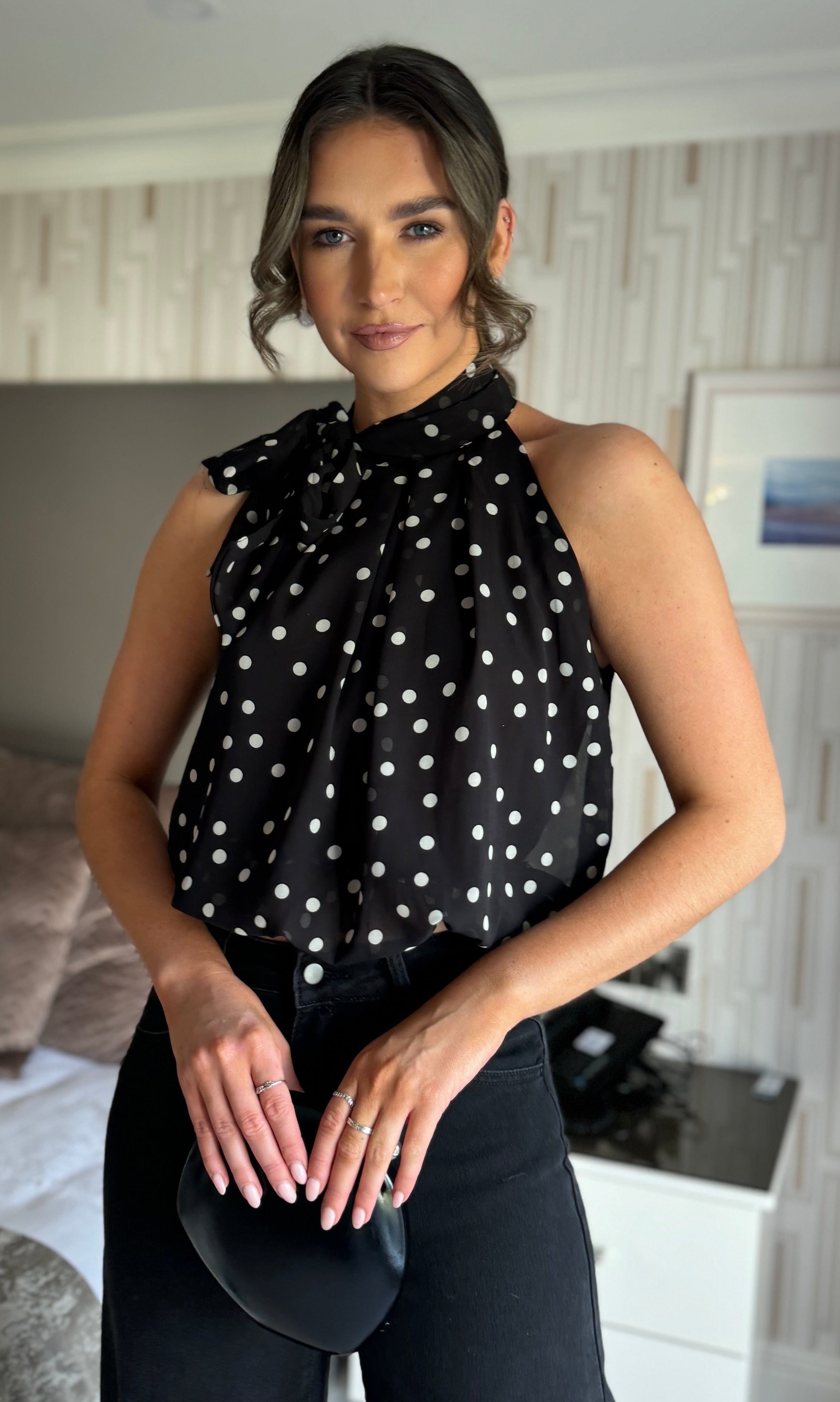Effortlessly chic and undeniably fun, the Ensley Polka Dot Tie Detail Top brings a playful edge to your everyday wardrobe. Crafted from lightweight chiffon with a flattering puffball silhouette, this crop top features a charming tie detail at the neckline and an elasticated hem for a polished finish. Fully lined for comfort and confidence, it's the perfect piece for layering or styling solo. Dress it up or down—this versatile top delivers instant personality to any look.