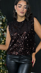 Flynn Brown Sequin Round Neck Top