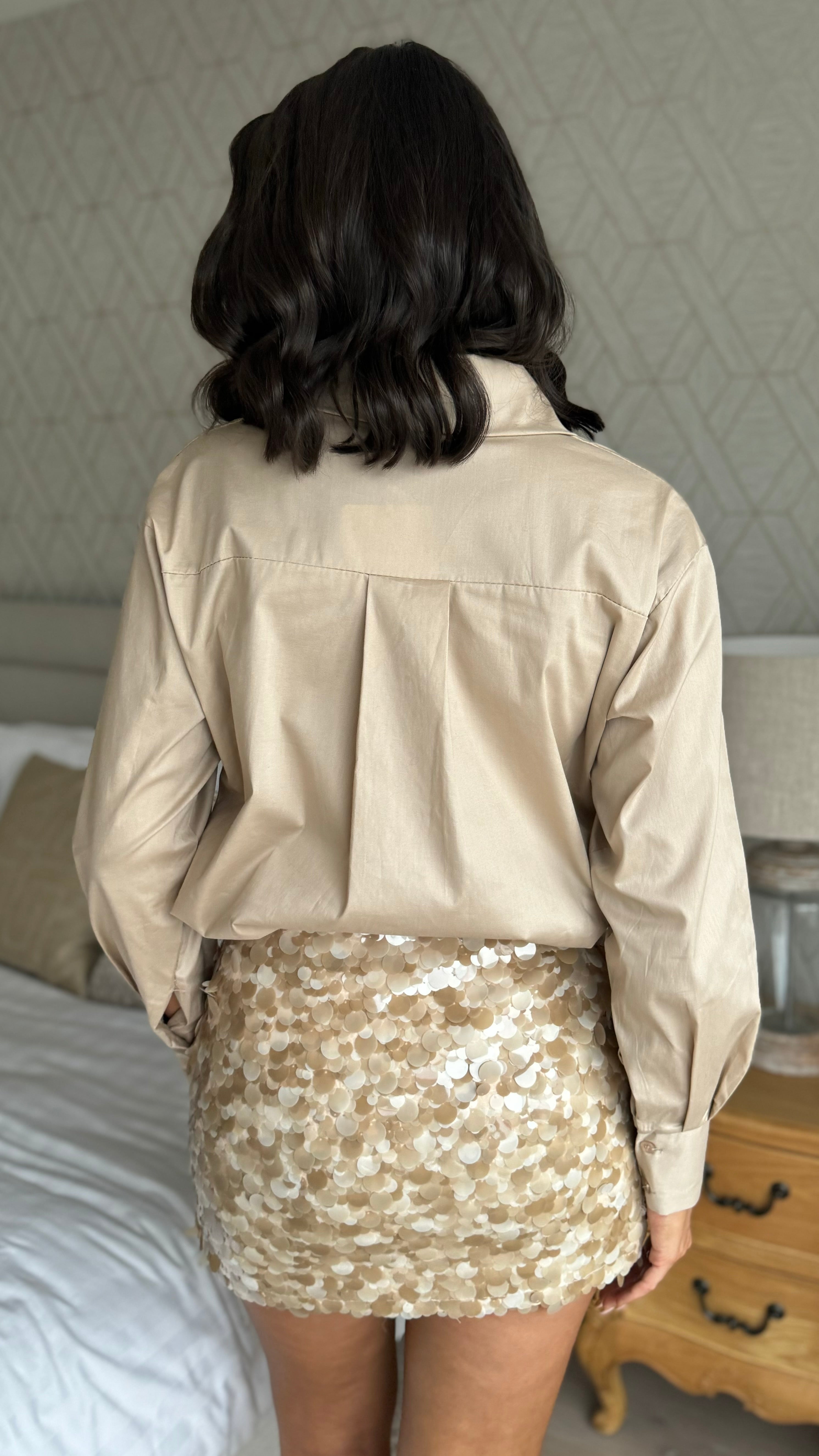 Introducing the Gabrielle Beige Cotton Shirt – your new go-to for effortless style! This classic button-down features a charming collar detail that frames your face beautifully, while long sleeves keep you cozy and polished. The fitted cuffs hug your wrists just right, creating a flattering silhouette that works equally well tucked in or left loose. Crafted from soft cotton, it's the versatile piece that transitions seamlessly from casual coffee dates to weekend adventures. Dress it up or down – this shirt does it all with understated charm.